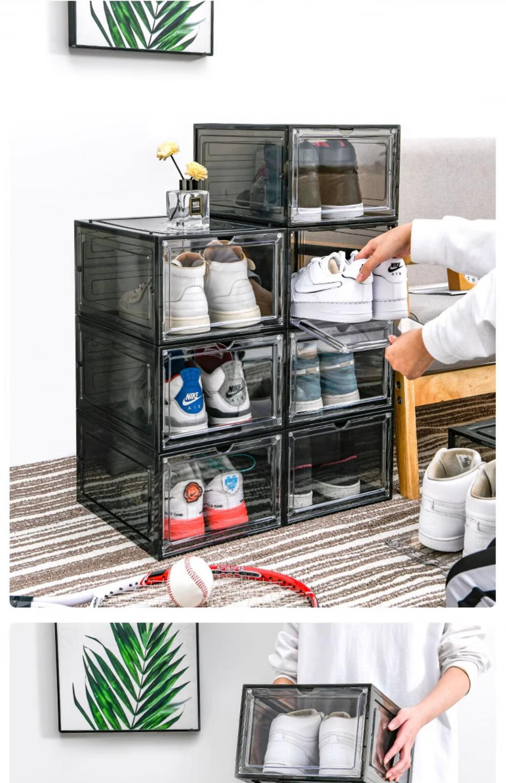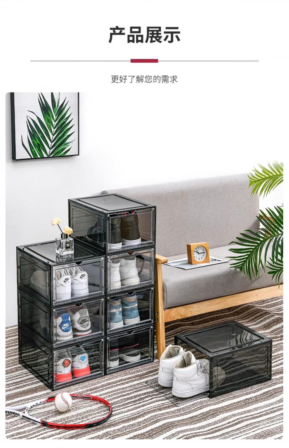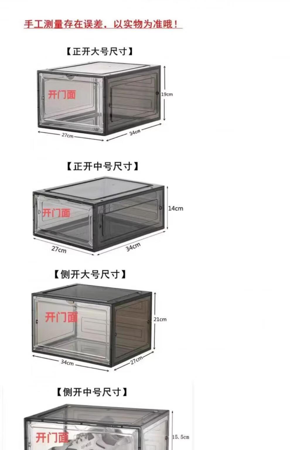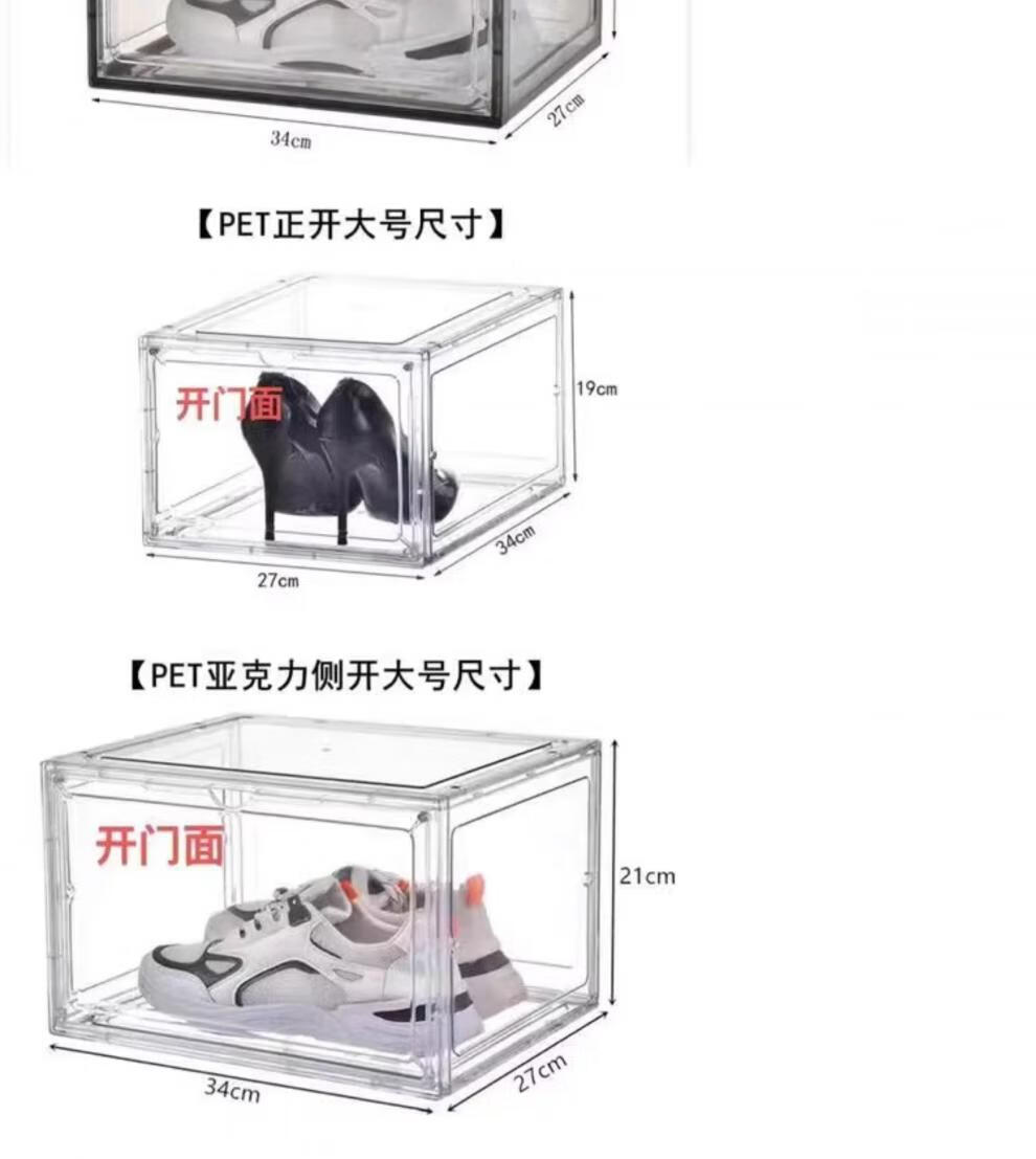 Shoe storage box shoe box transparent storage thickened magnetic acrylic simple hard plastic dormitory side opening space side opening large magnetic suction 46 size high-top shoes high transparent ten pack 0x0x0cm
