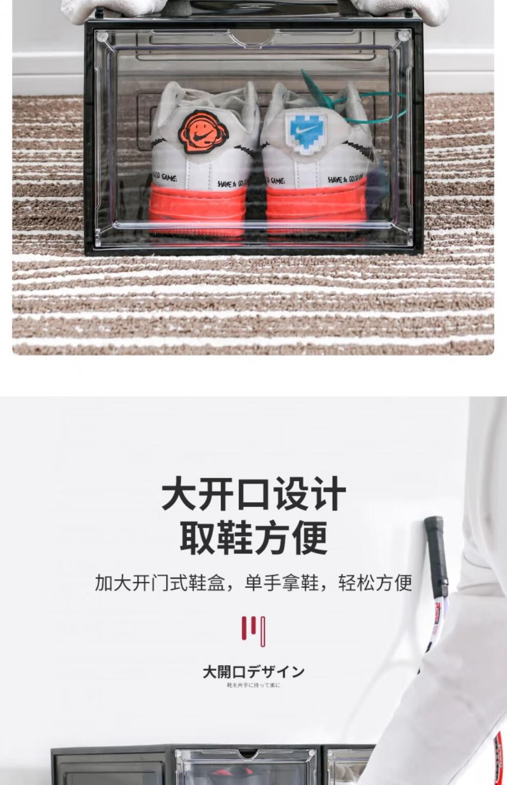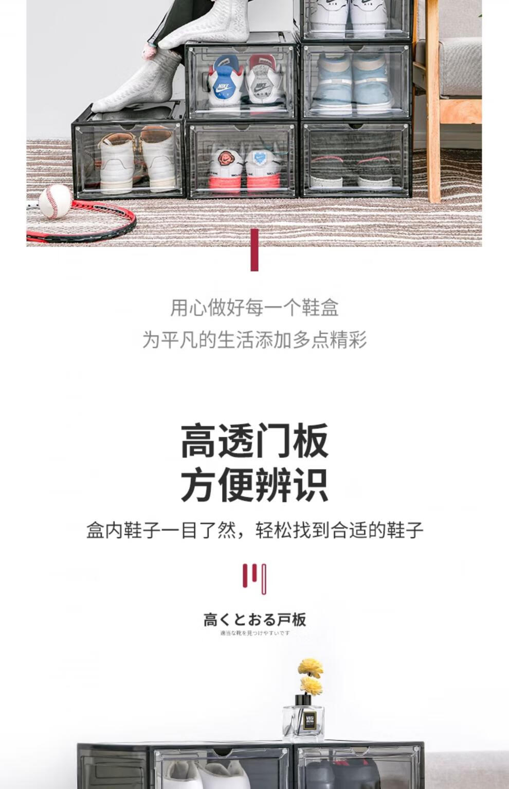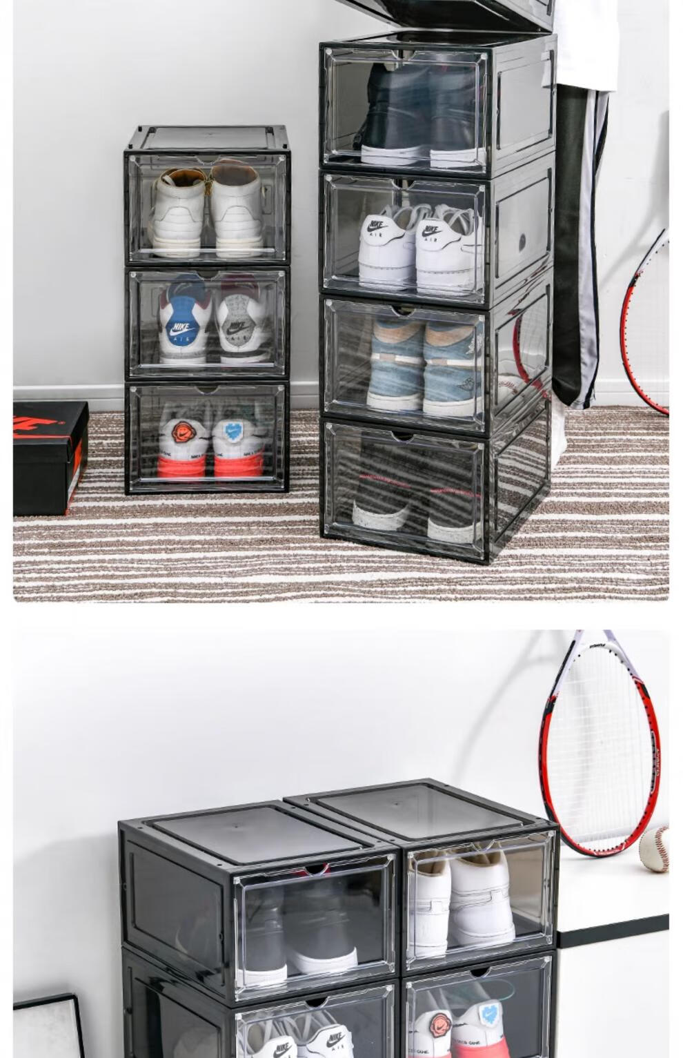 Shoe storage box shoe box transparent storage thickened magnetic acrylic simple hard plastic dormitory side opening space side opening large magnetic suction 46 size high-top shoes high transparent ten pack 0x0x0cm