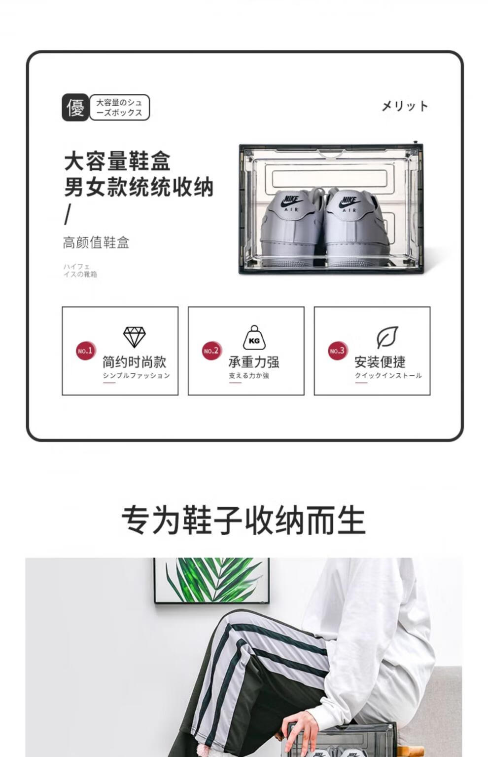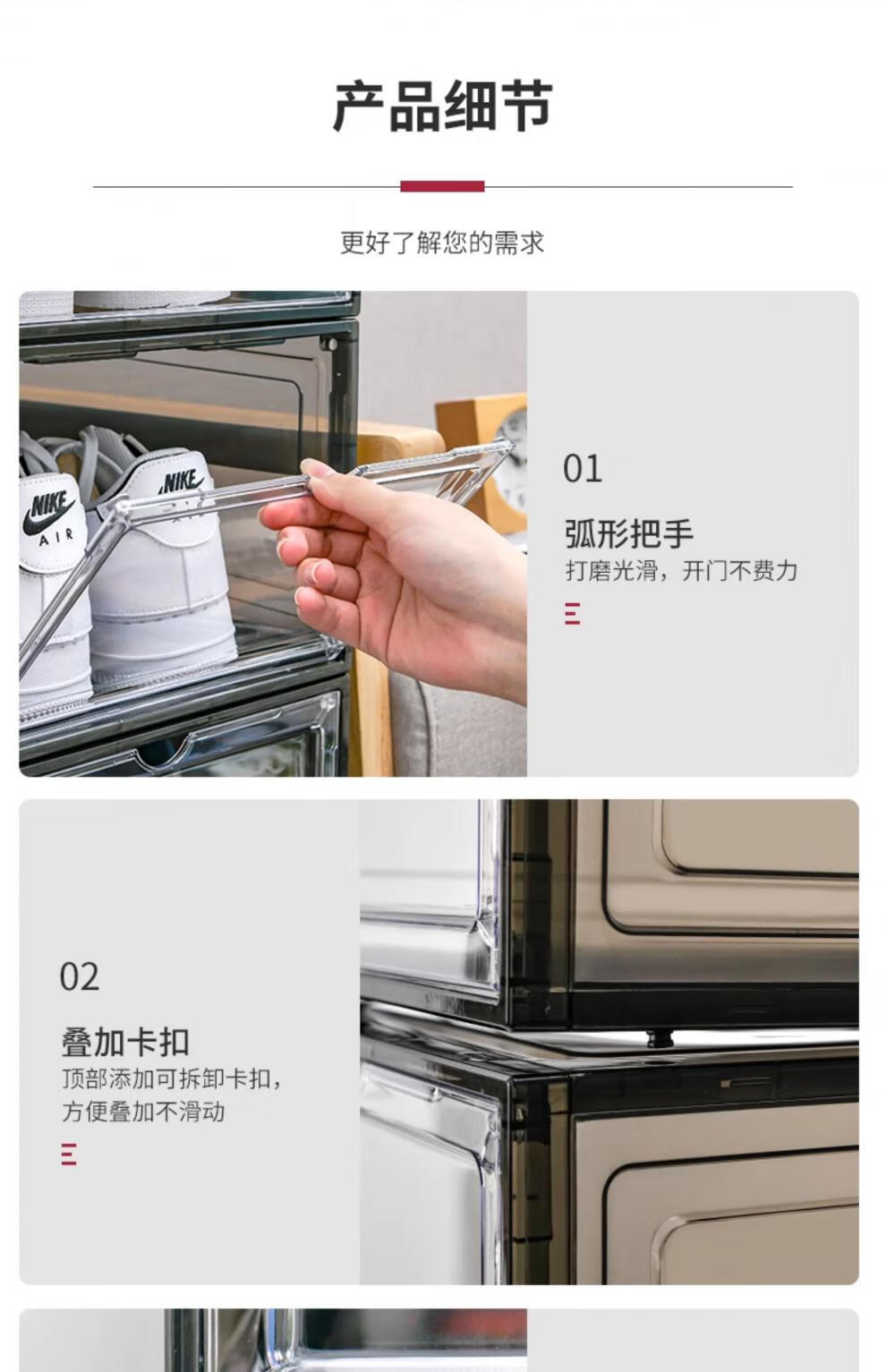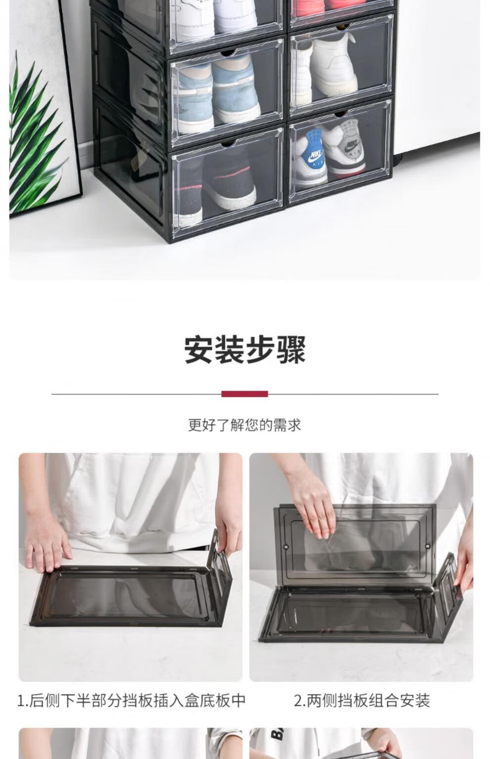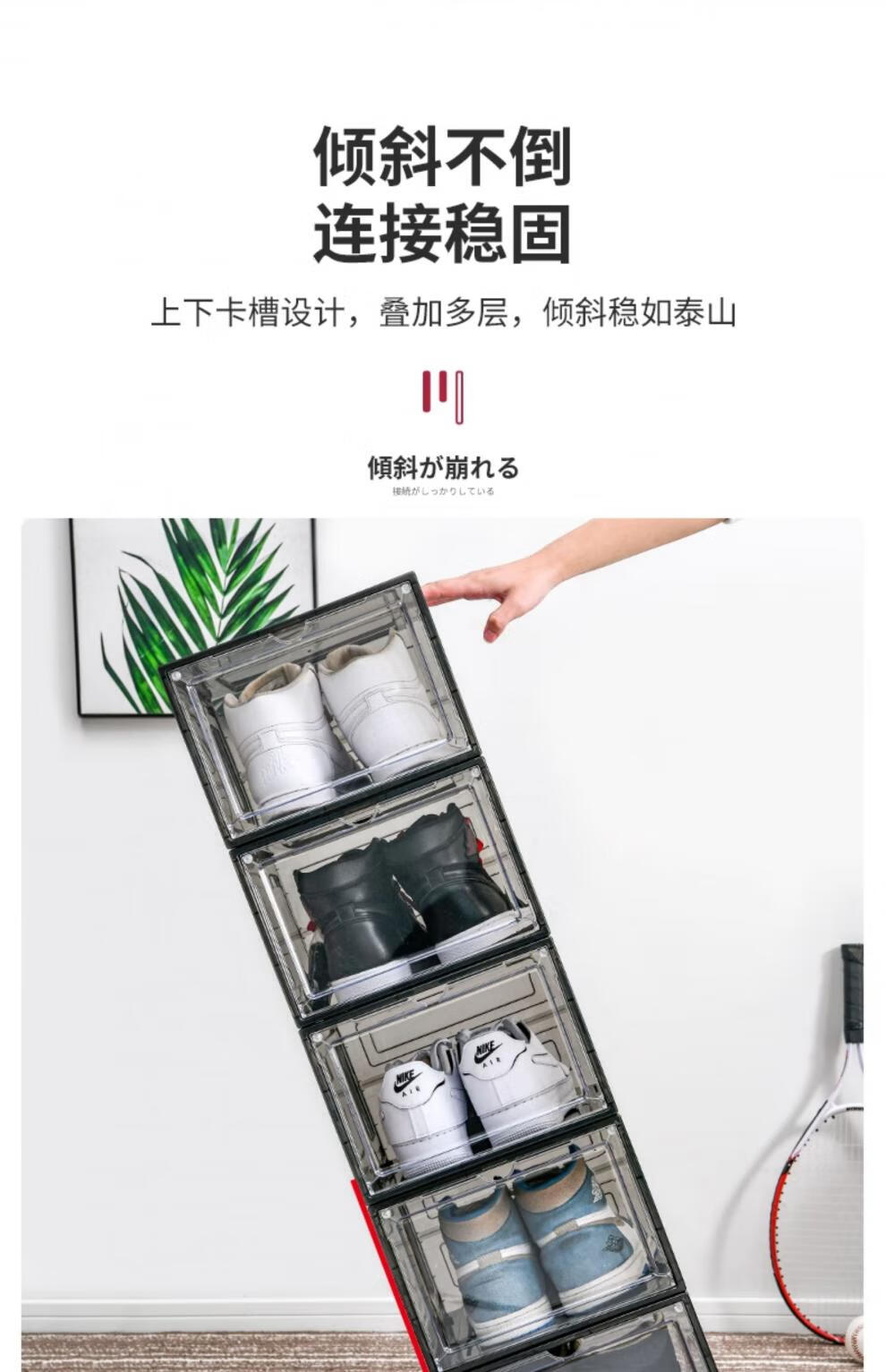 Shoe storage box shoe box transparent storage thickened magnetic acrylic simple hard plastic dormitory side opening space side opening large magnetic suction 46 size high-top shoes high transparent ten pack 0x0x0cm