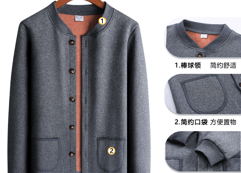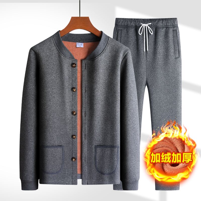 Playboy (PLAYBOY) men's autumn and winter thickened velvet fashion suit new middle-aged and elderly father's clothing lamb velvet casual sportswear official flagship dark gray can be worn outside pants - super soft velvet L Recommendation 135-155Jin Jin equals 0.5 kg