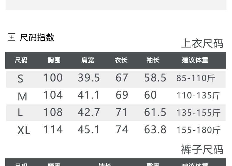 China (cm) 165 / 88-90 170 / 96-98 175 / 108-110 180 / 118-122 185 / 126-130