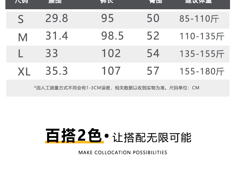 Outseam (cm) 99 cm 101.5 cm 104 cm 106.5 cm 109 cm