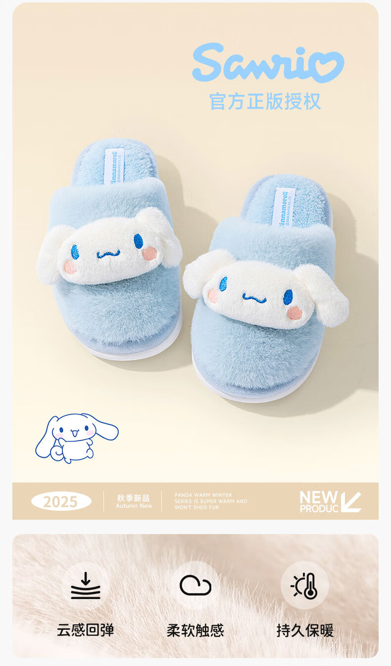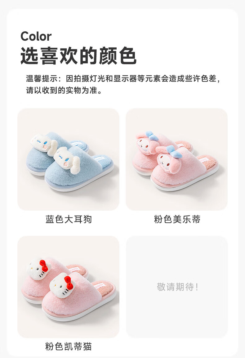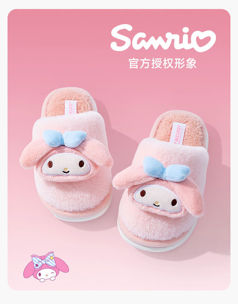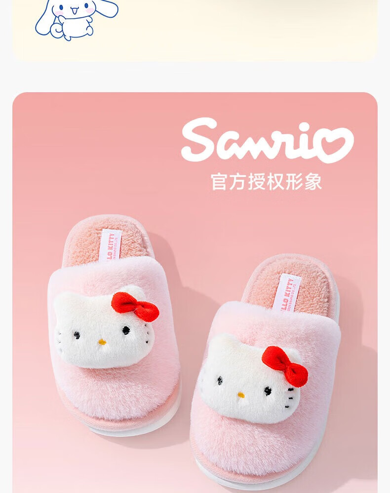 Pig Daddy Sanrio Children's Cotton Slippers Girls Autumn and Winter Home Indoor Non-Slip Melody Fur Slippers for Middle and Large Children Girls Pink Hello Kitty 23 Inner Length 21CM Suitable for Foot Length 20CM