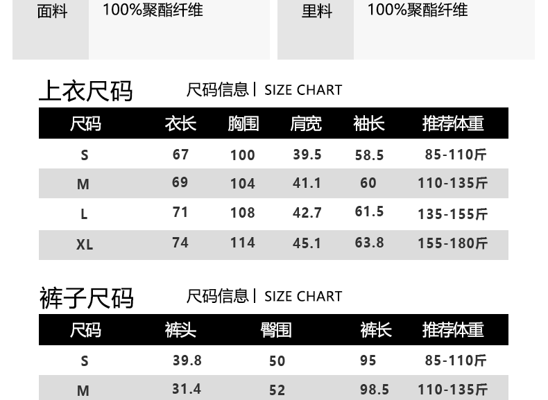 China (cm) 160-165/84-86 165-170 / 88-90 167-172 / 92-96 168-173 / 98-102 170-176 / 106-110