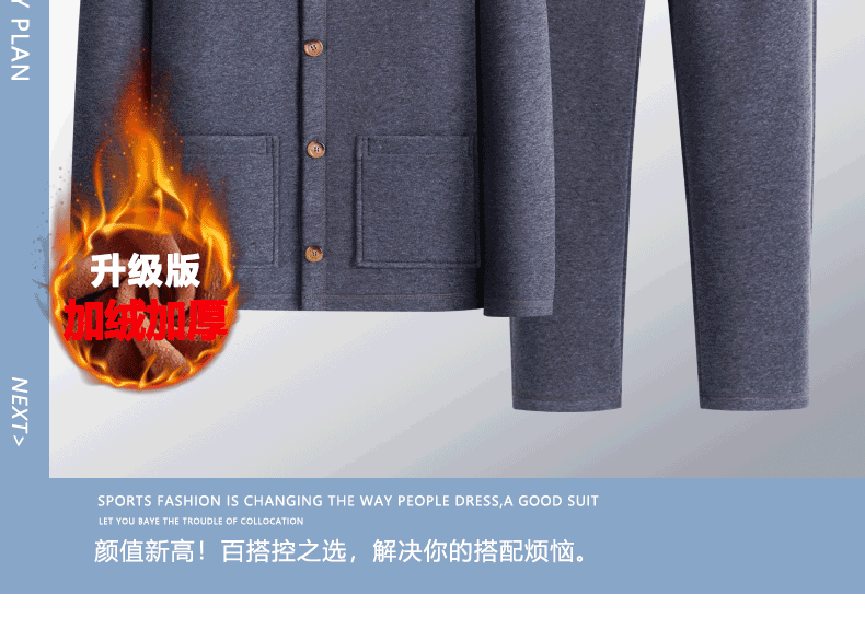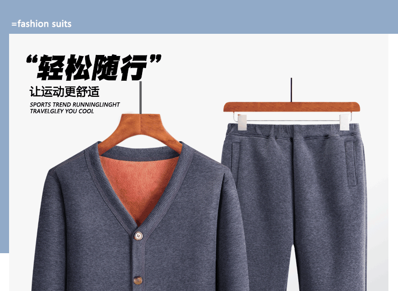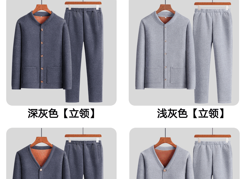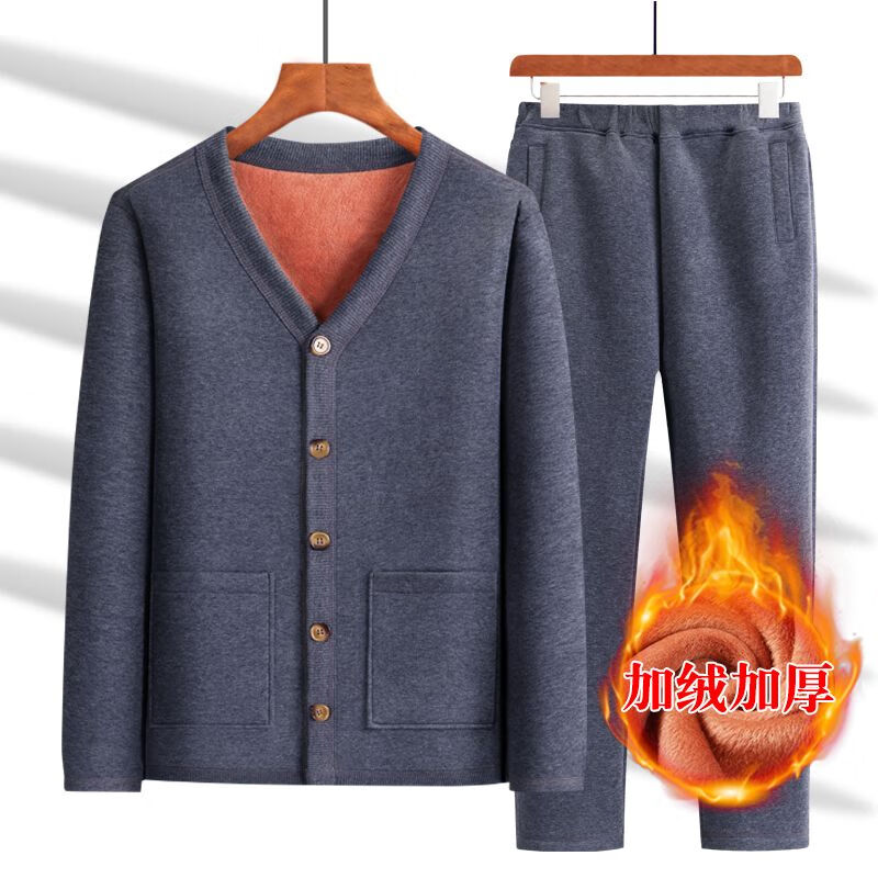 Playboy (PLAYBOY) Dad's Autumn and Winter Clothes Velvet Thickened Cardigan Sports Suit Middle-aged and Elderly Warm Clothes Casual Jacket Grandpa Cotton Clothes Official Flagship Light Gray V-Neck Suit - Extra Thick Version XL Recommendation 155-180 Jin Jin equals 0.5 kg