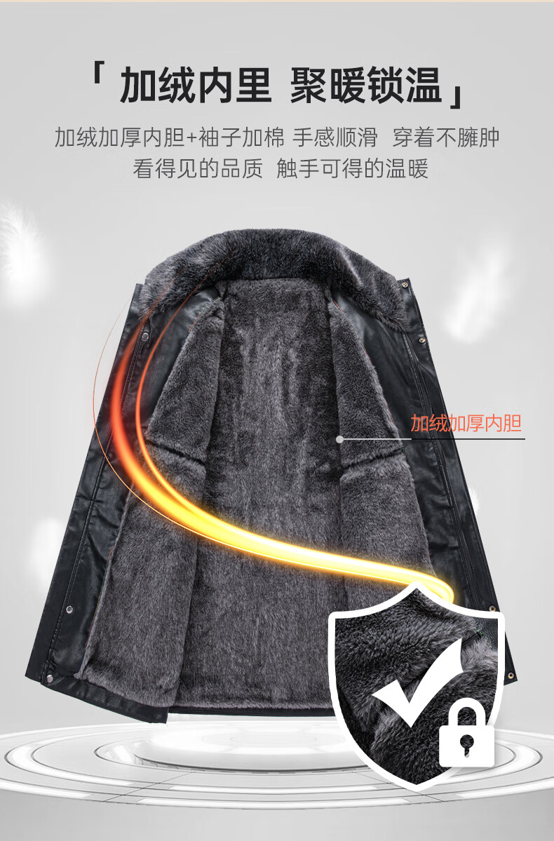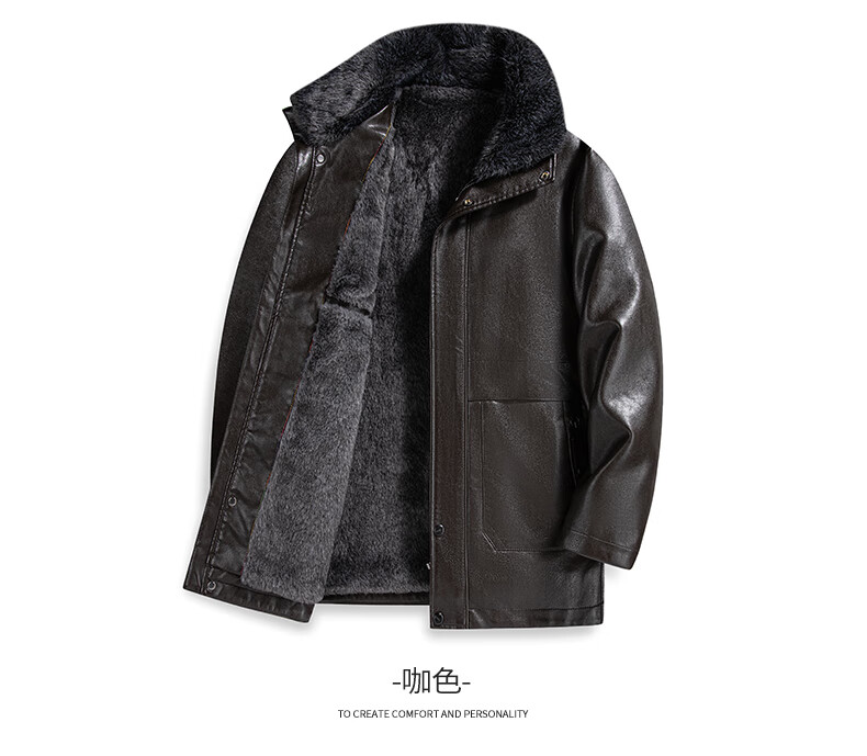 SHANSHAN Shanshan Chaqueta de cuero PU para hombre 2025 invierno cálido casual a prueba de viento e impermeable chaqueta de manga larga con cuello de piel de fácil cuidado para hombre color café 4XL /195