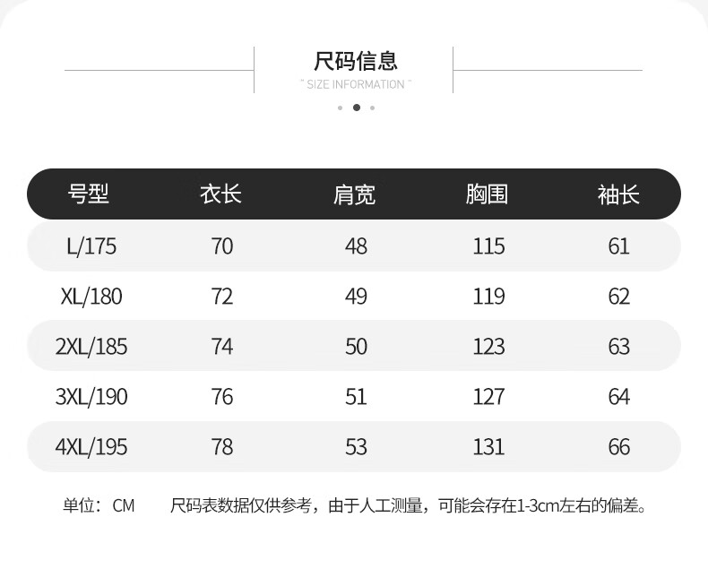 China (cm) 165 / 88-90 170 / 96-98 175 / 108-110 180 / 118-122 185 / 126-130
