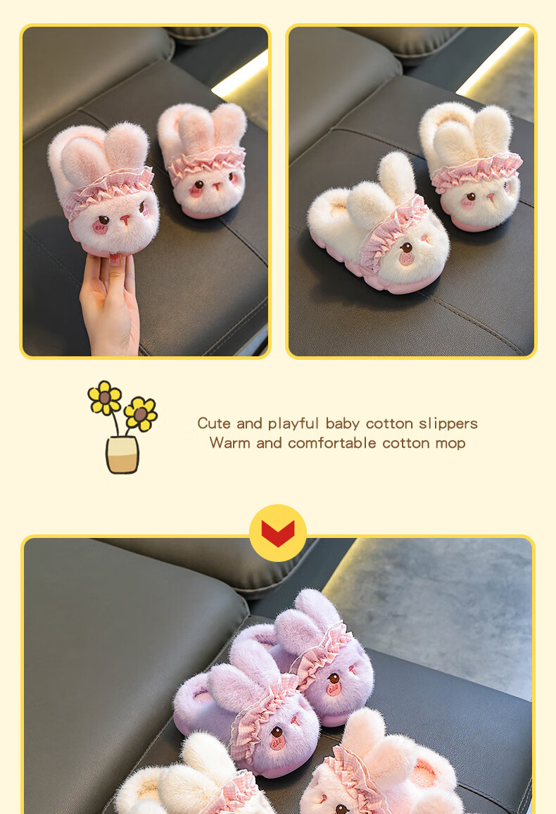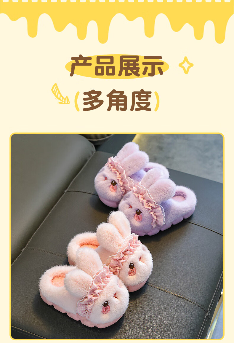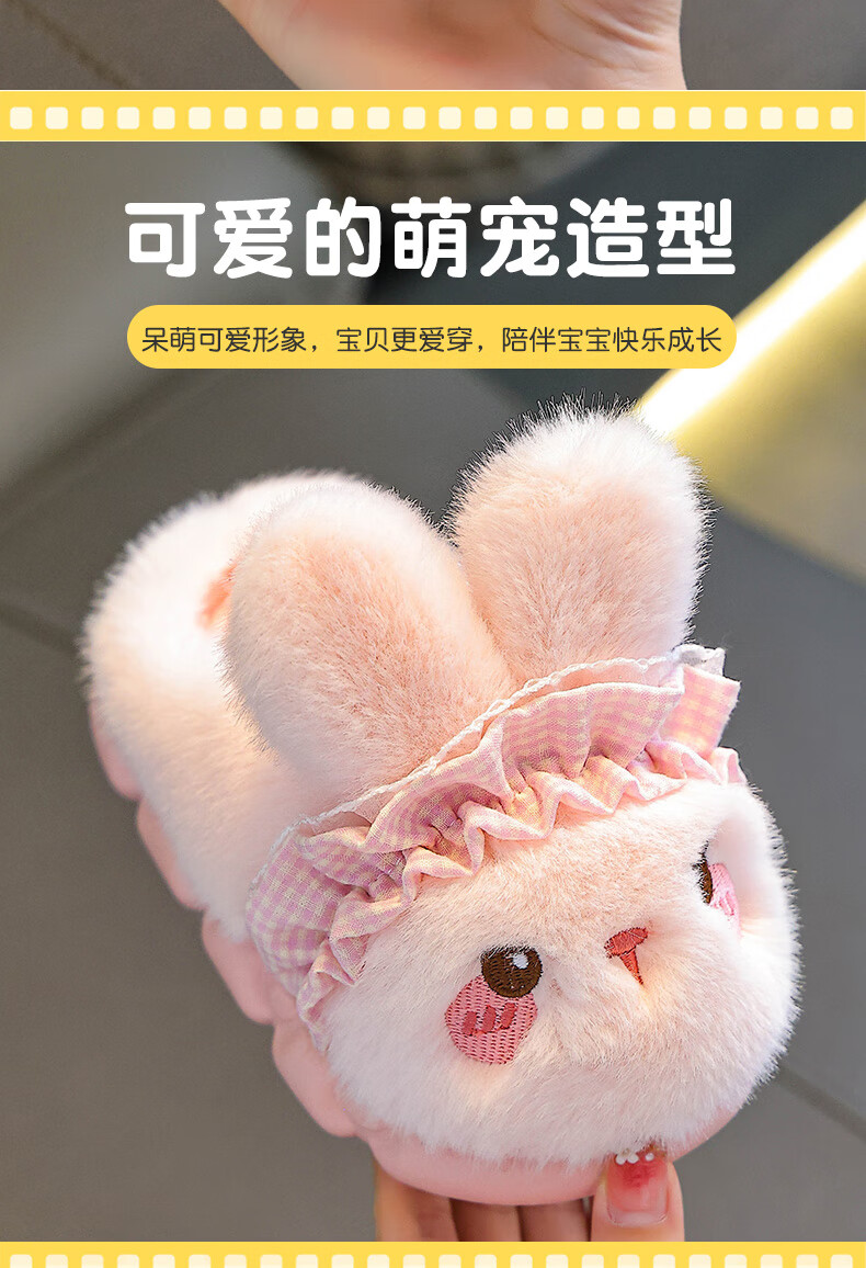 Rabbit Children's Cotton Slippers for Boys Winter Cartoon Cute Non-Slip Indoor Bath Soft Soled Baby Slippers Upgraded Environmentally Friendly Material Pink Slippers Size 12 36/37 (Suitable for 35/36 Feet)
