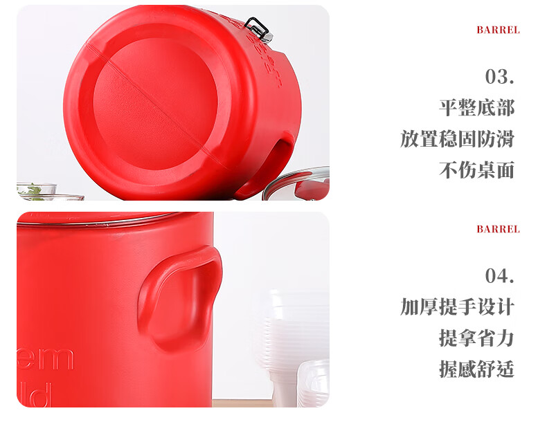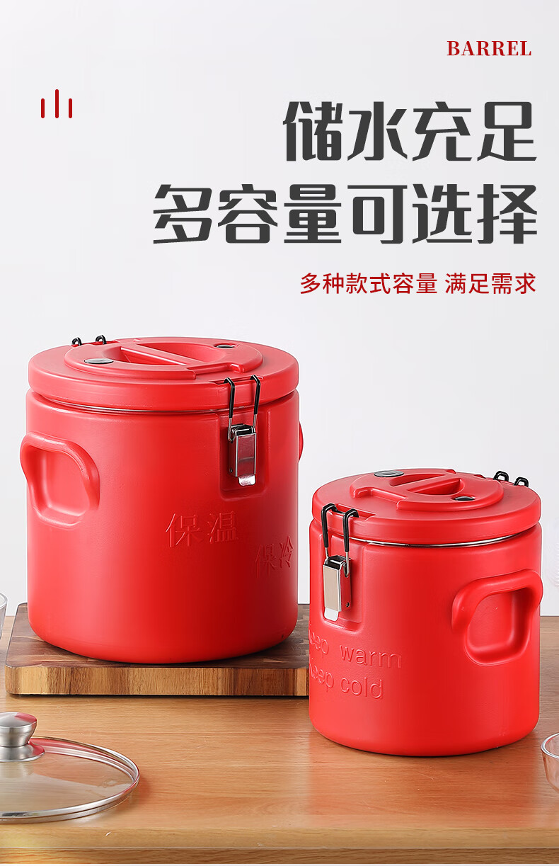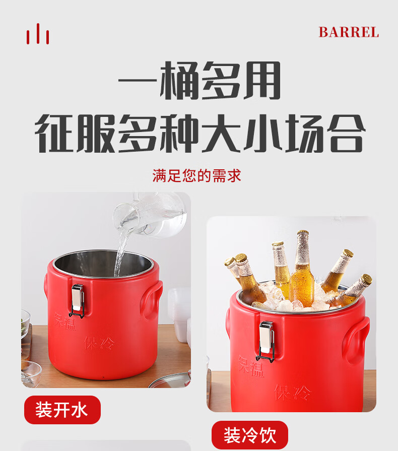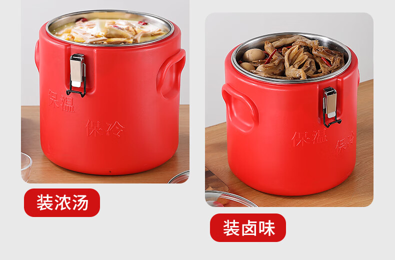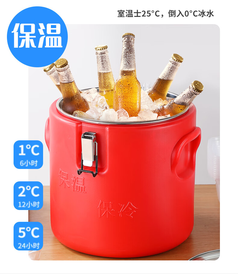 Stainless steel insulation barrel red temperature lock barrel commercial canteen restaurant soup barrel hot braised rice soy milk barrel ice powder stall 15 no faucet insulating barrel capacity about 12 Jin Jin equals 0.5 kg