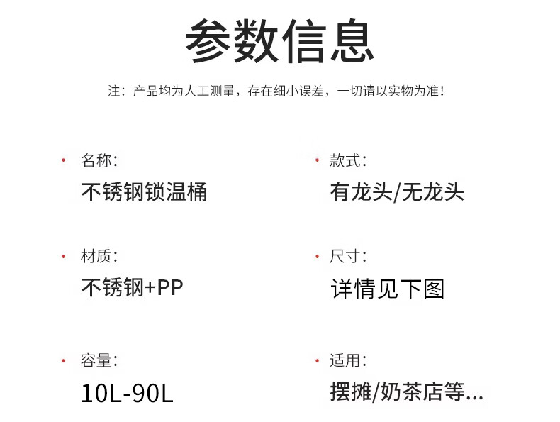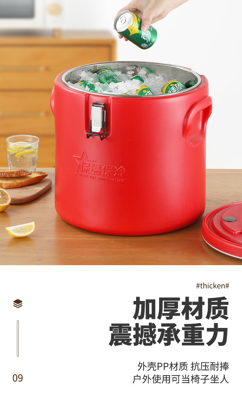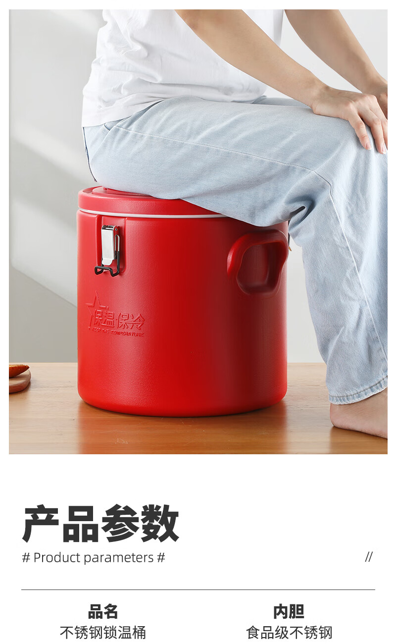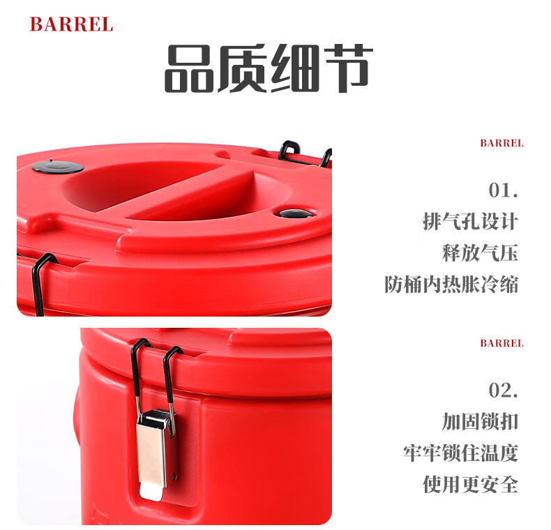 Stainless steel insulation barrel red temperature lock barrel commercial canteen restaurant soup barrel hot braised rice soy milk barrel ice powder stall 15 no faucet insulating barrel capacity about 12 Jin Jin equals 0.5 kg