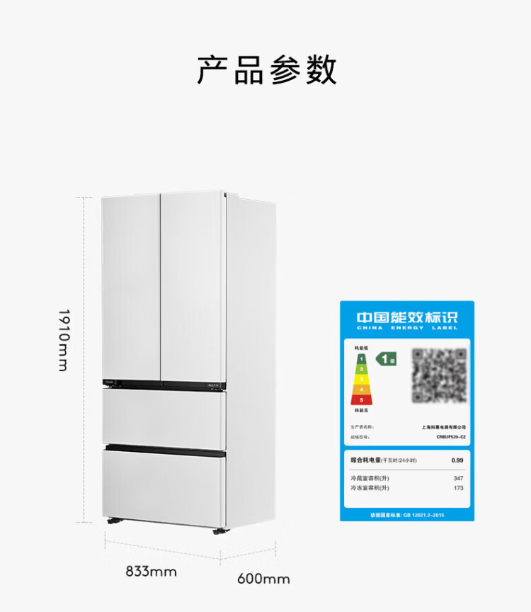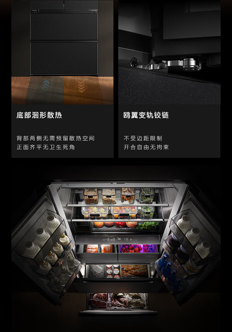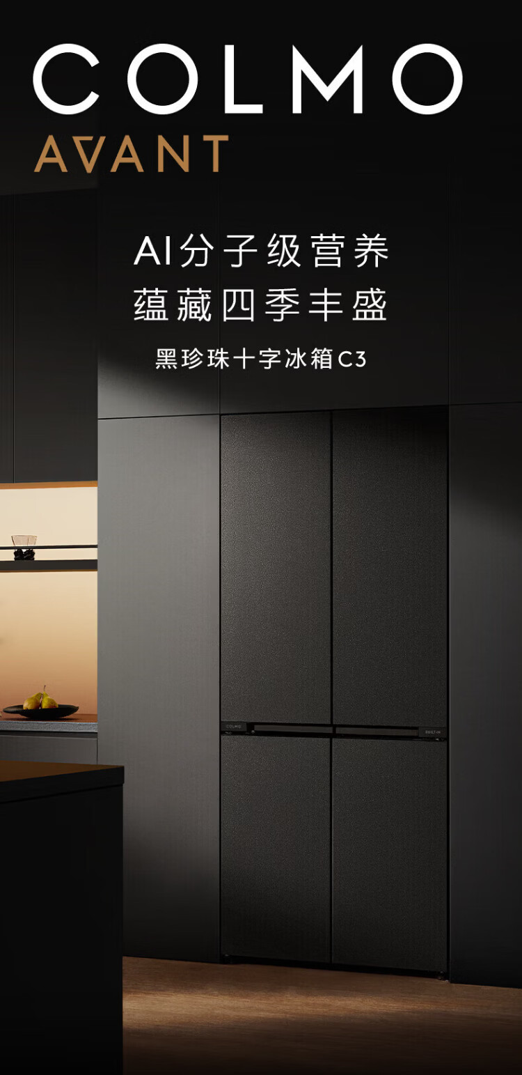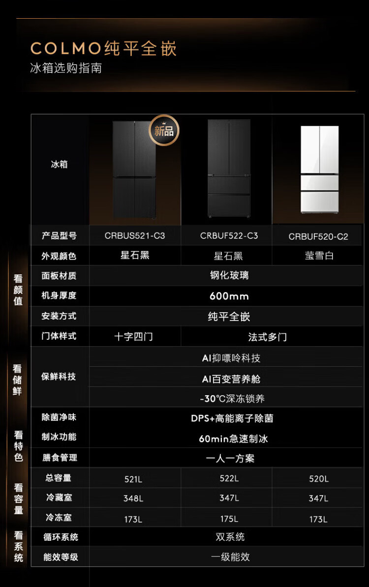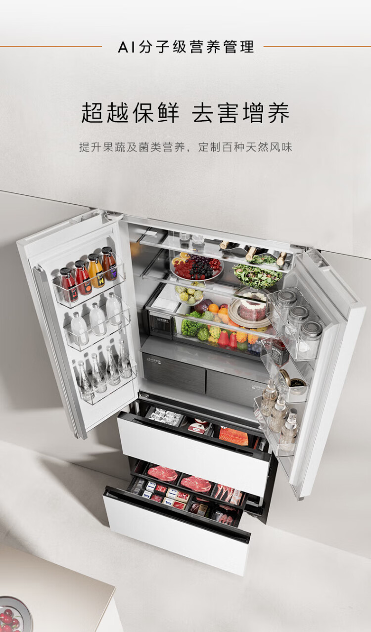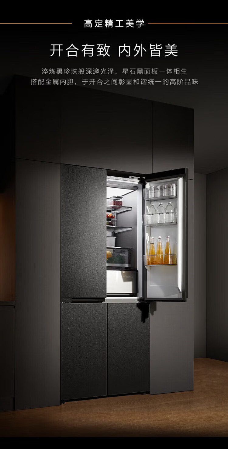 COLMO Black Pearl C3 Kühlschrank 520 French/521 Cross 522 Polaris C2 French Multi-Door Flat Full Embedded AI Nutrition Cabin Automatische Eiszubereitung Level 1 Energieeffizienz Dual System C2 French Multi-Door Kühlschrank 520L-Yingxue White
