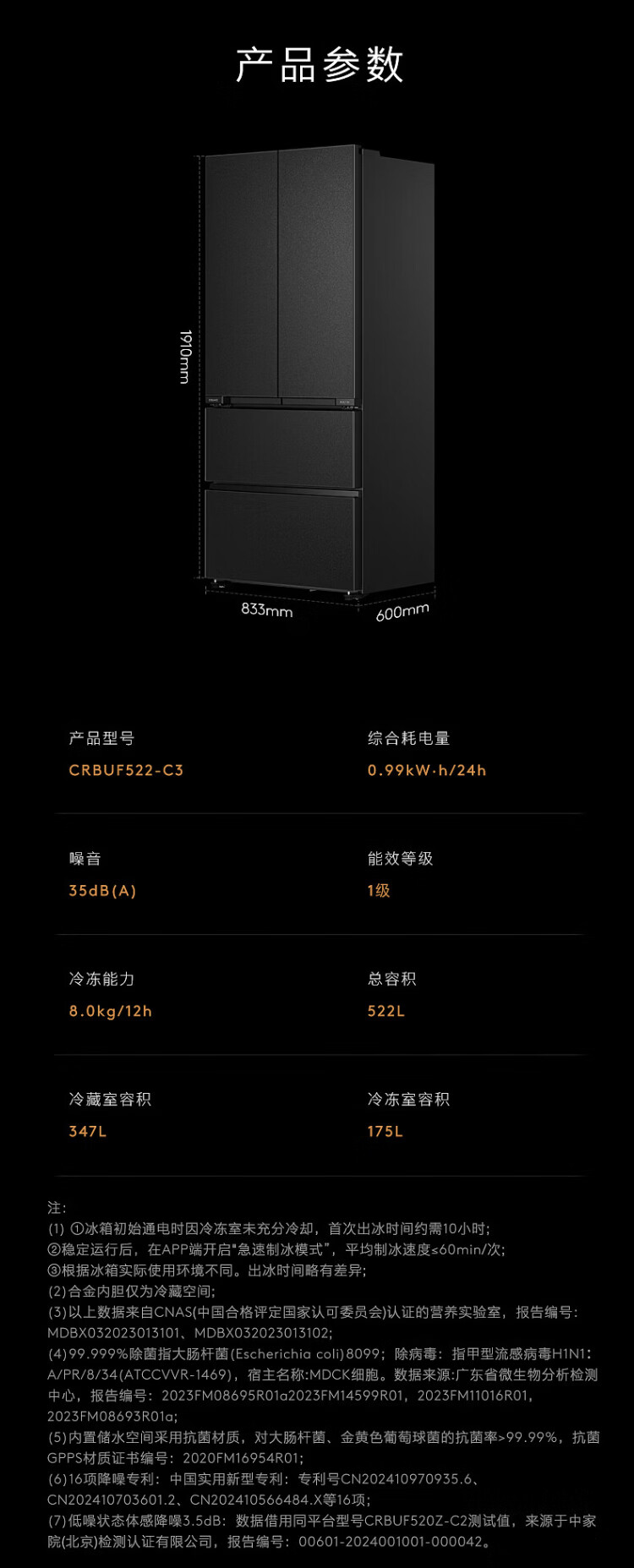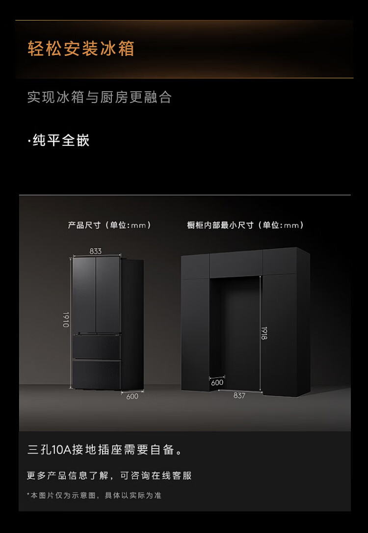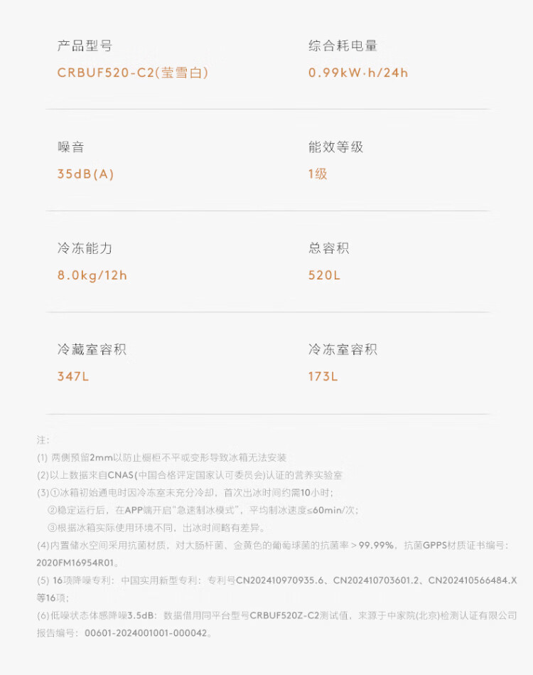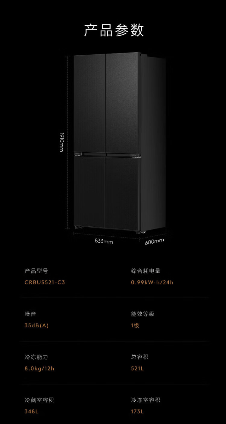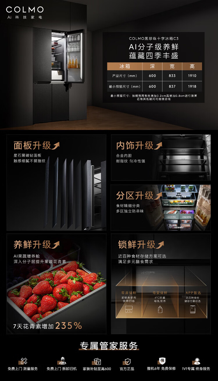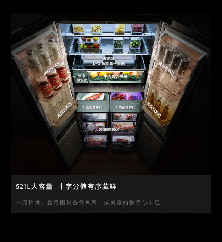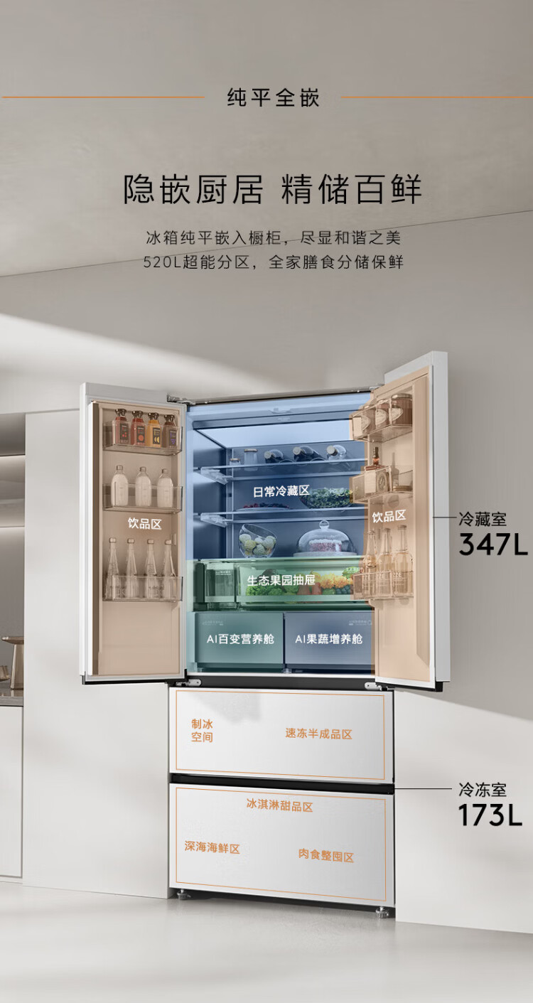 COLMO Black Pearl C3 Kühlschrank 520 French/521 Cross 522 Polaris C2 French Multi-Door Flat Full Embedded AI Nutrition Cabin Automatische Eiszubereitung Level 1 Energieeffizienz Dual System C2 French Multi-Door Kühlschrank 520L-Yingxue White