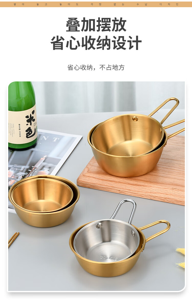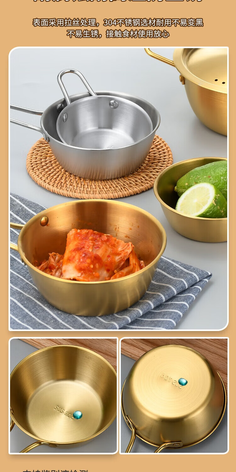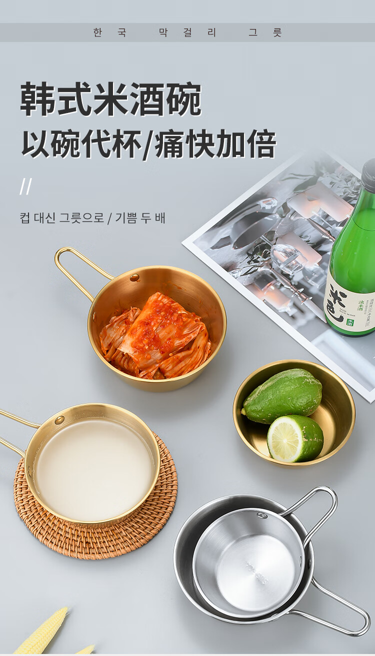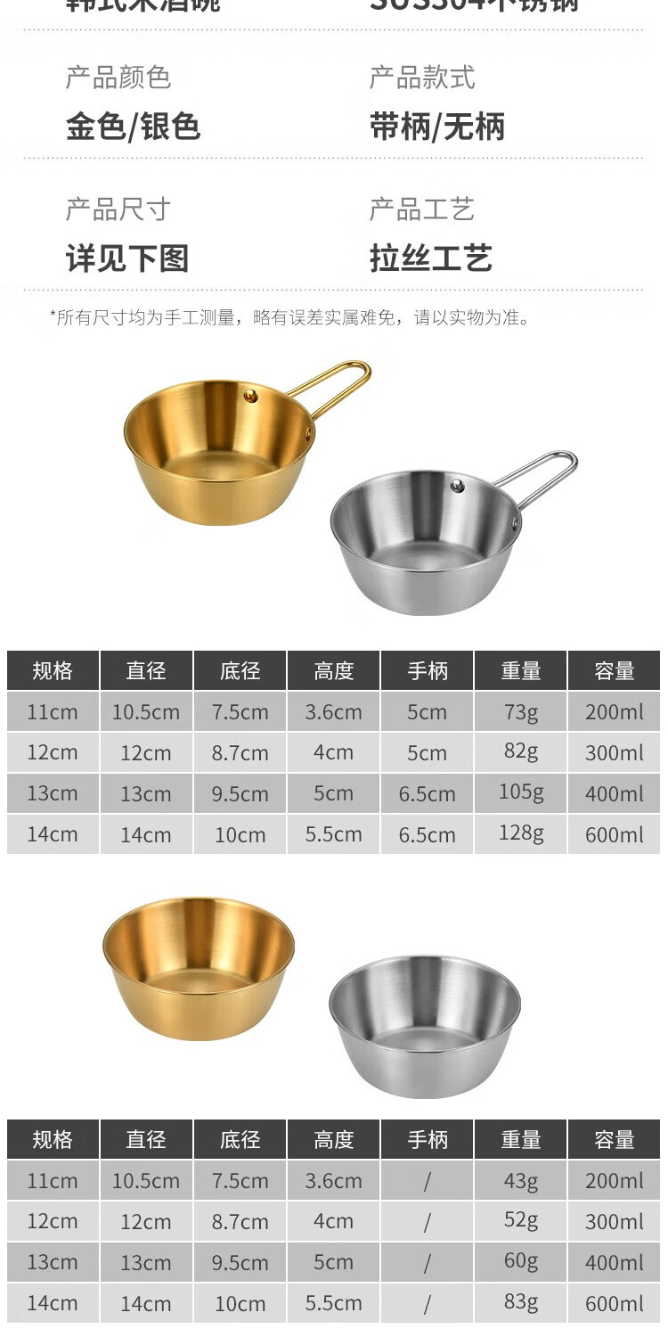 304 stainless steel Korean rice wine bowl, rice bowl, rice wine bowl with handle, special hot and cold wine bowl for restaurants, cooking bowl 304 rice wine bowl - with single handle - natural color 16.5CM
