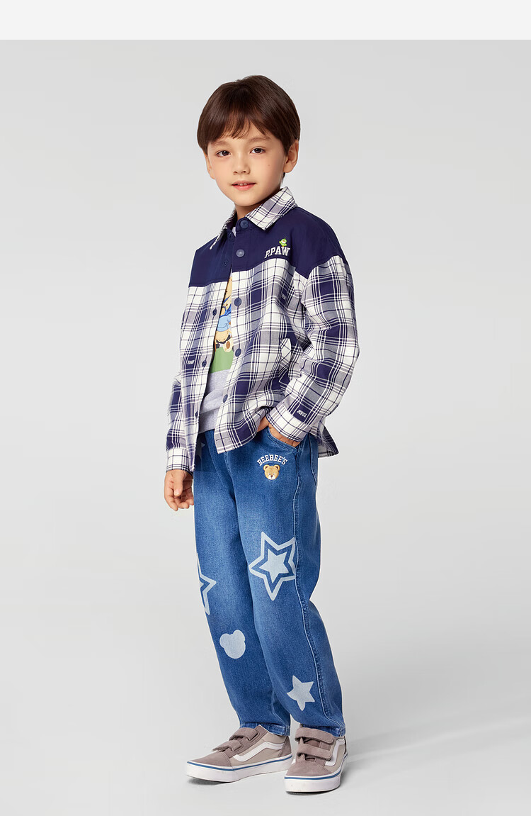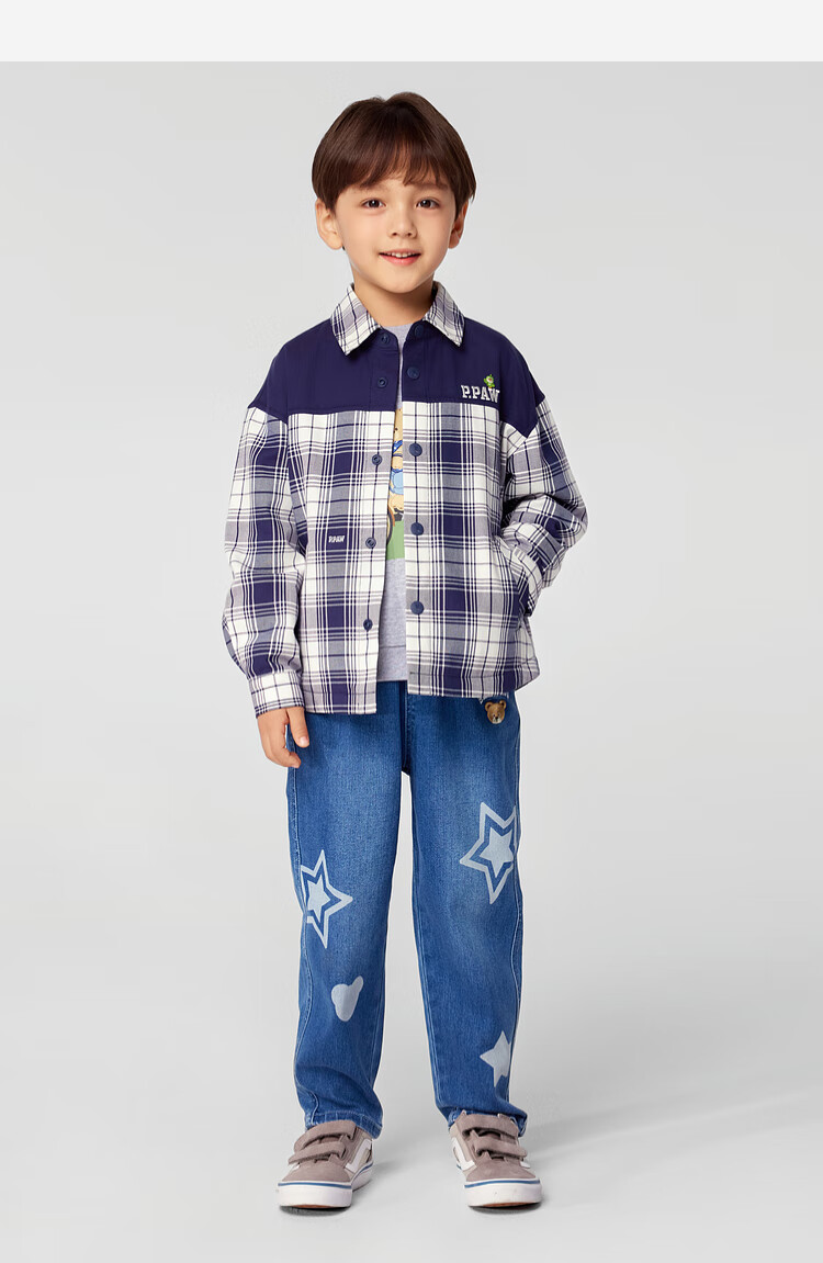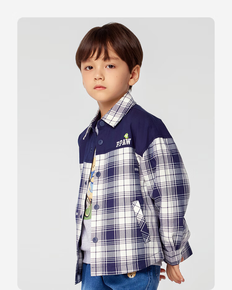 PawinPaw Cartoon Bear Children's Clothing 25th Spring Boys' Plaid Long-Sleeved Shirt PCYAF1213M Mixed Color 120