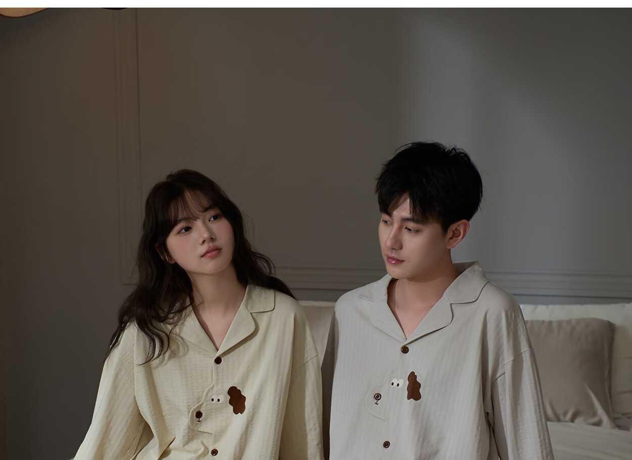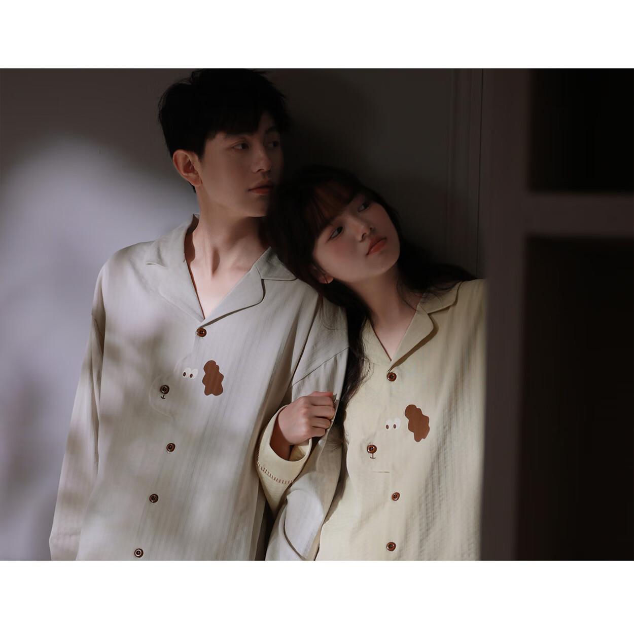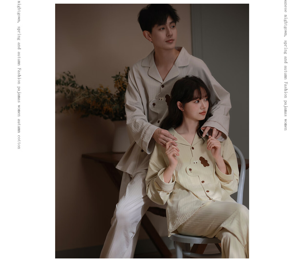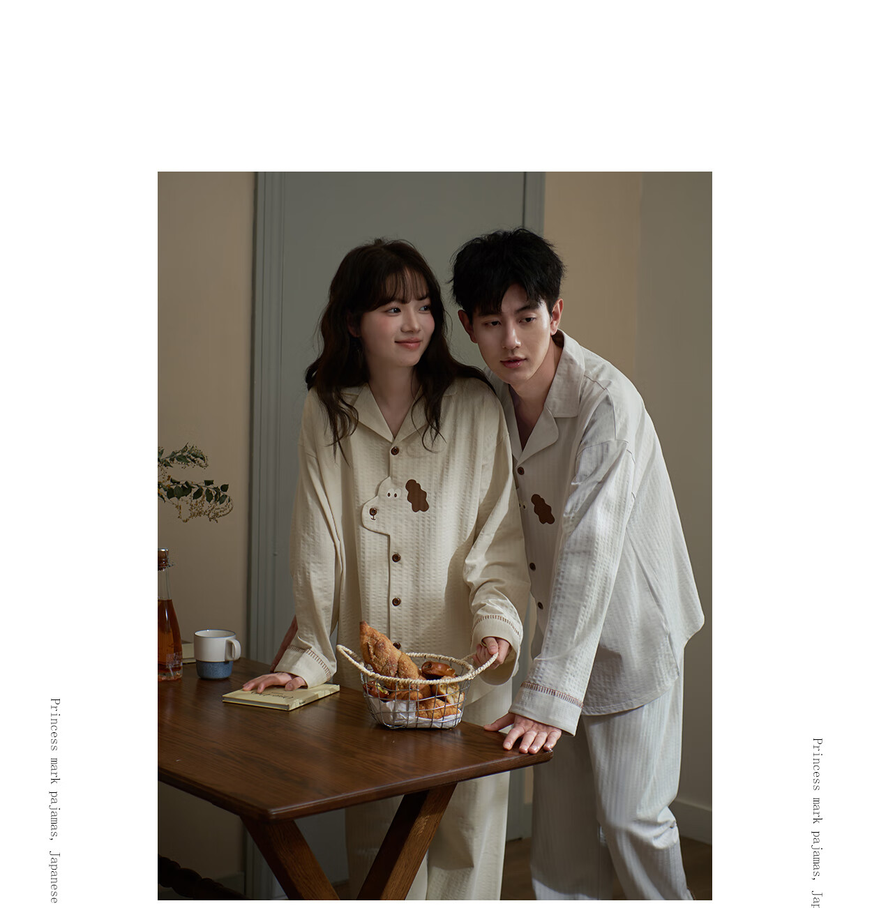 Princess Mark Spring and Autumn Couple Pajamas 2025 Super Hot Cartoon Puppy Long Sleeve Long Pants Boys and Girls Pure Cotton Home Clothing HZ2912-Puppy Shape Couple Women's XL