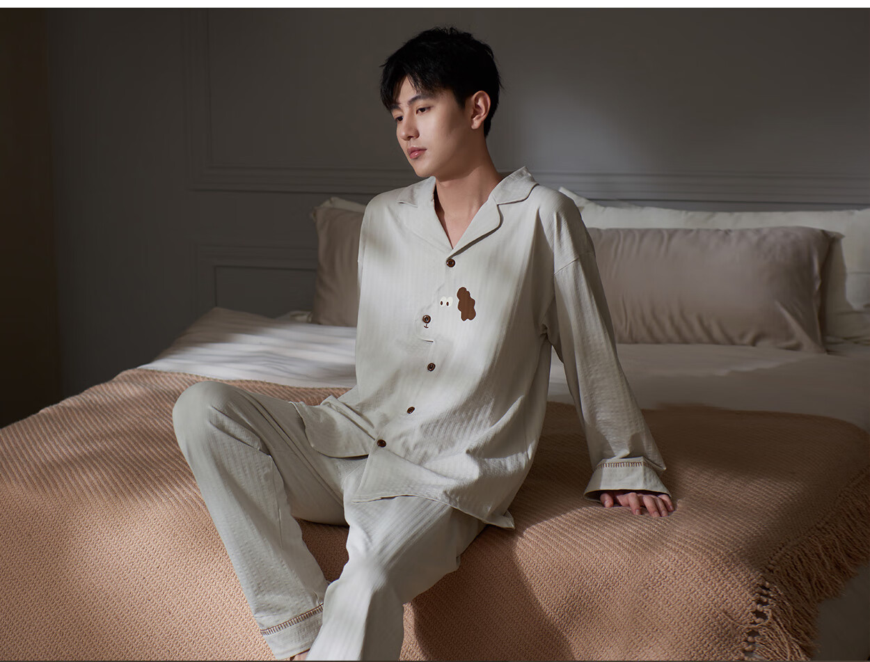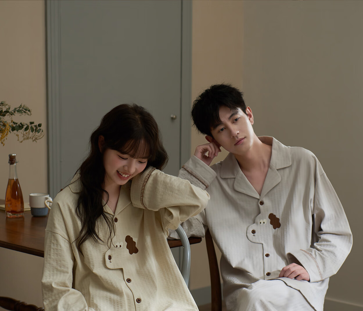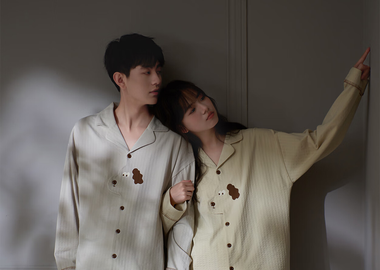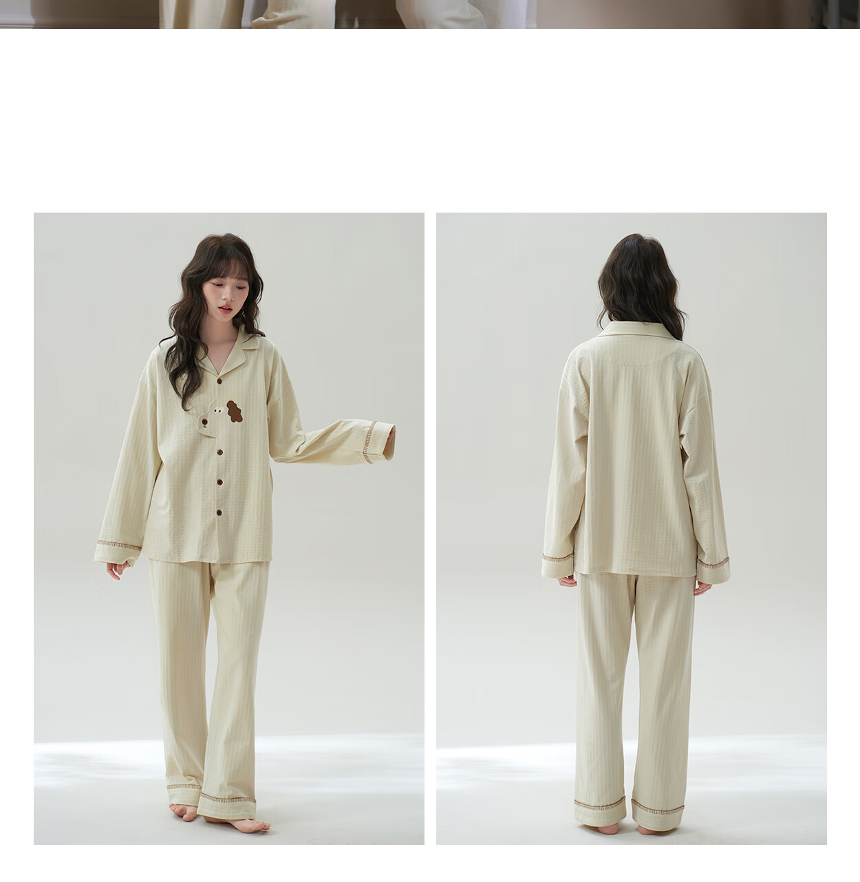 Princess Mark Spring and Autumn Couple Pajamas 2025 Super Hot Cartoon Puppy Long Sleeve Long Pants Boys and Girls Pure Cotton Home Clothing HZ2912-Puppy Shape Couple Women's XL