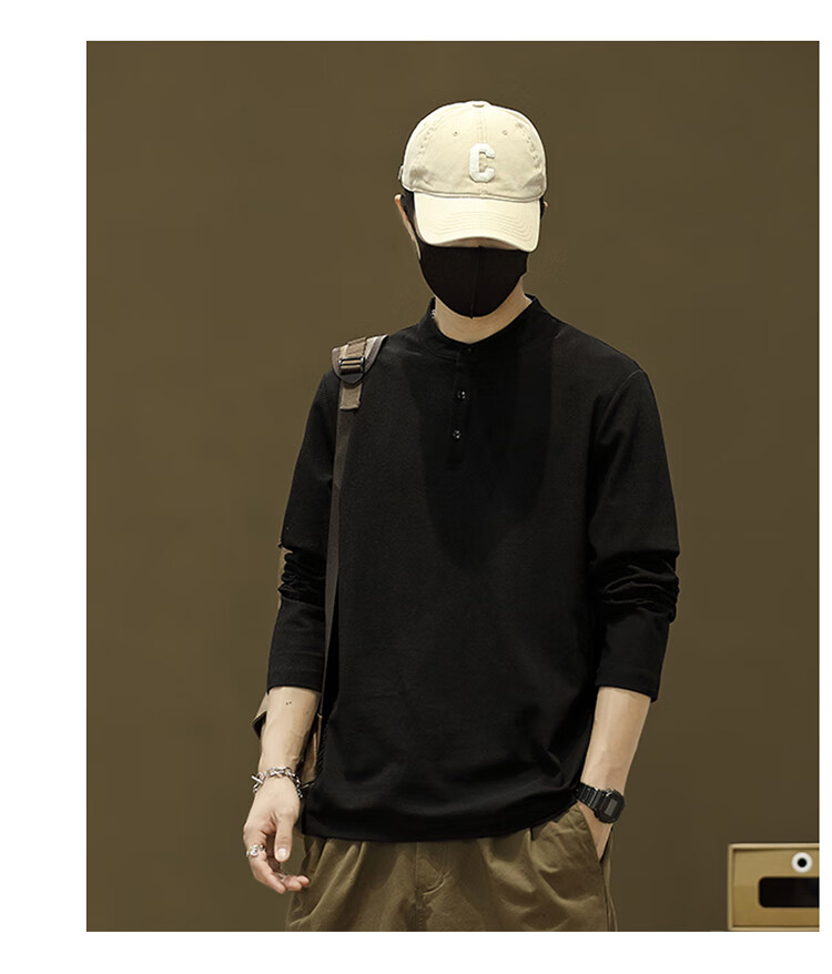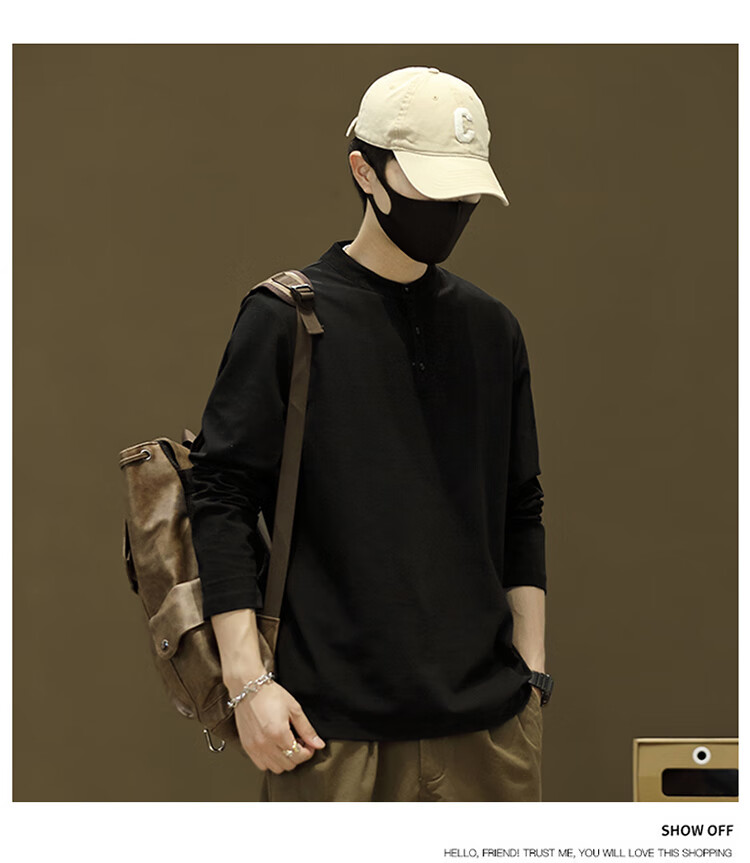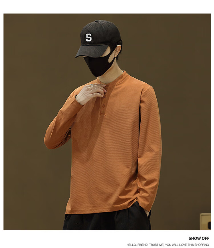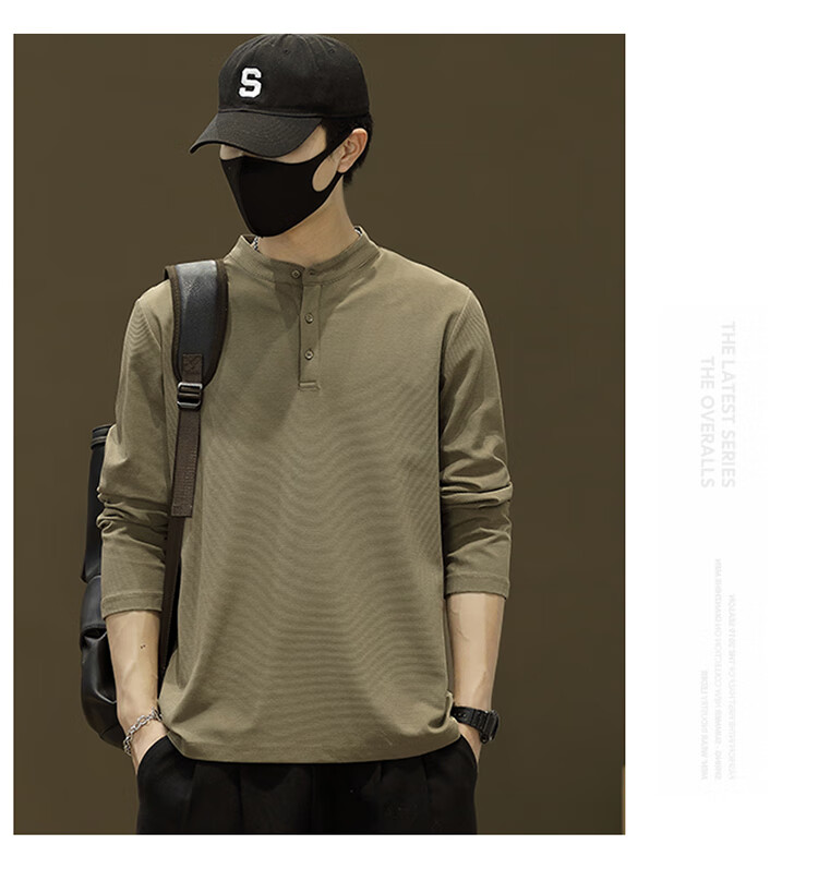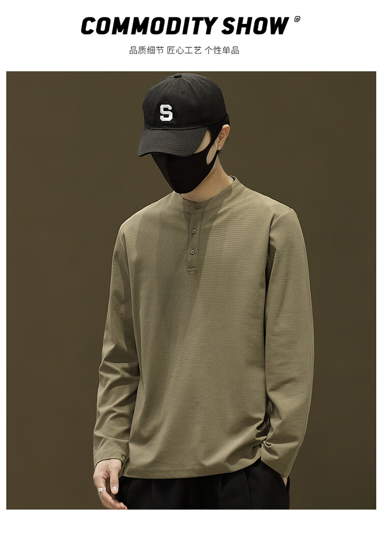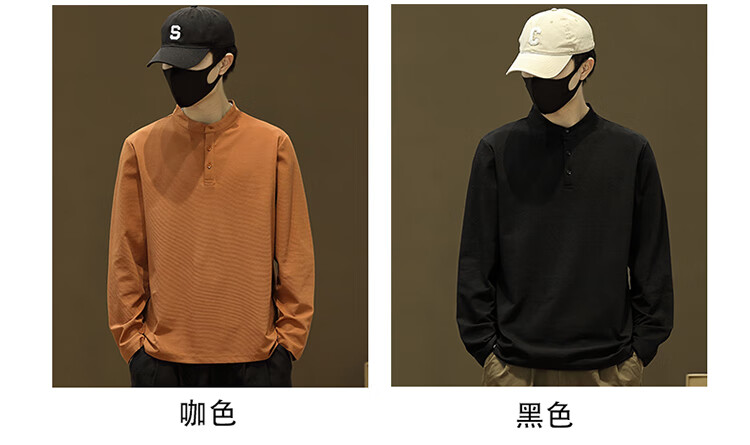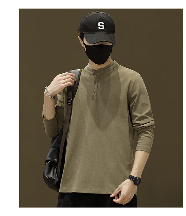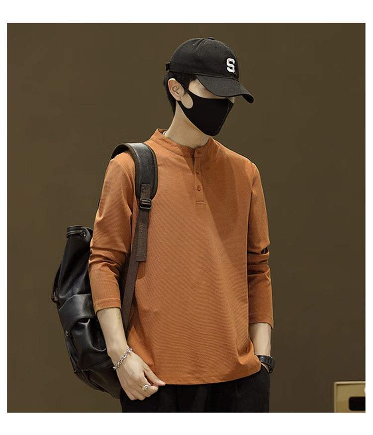 Playboy (PLAYBOY) Henry collar long-sleeved T-shirt for men in spring and autumn solid color retro simple bottoming shirt loose trendy brand versatile stand-up collar sweatshirt Khaki 56119 long sleeve 4XL (about 170-190Jin Jin is equal to 0.5 kg can be worn)