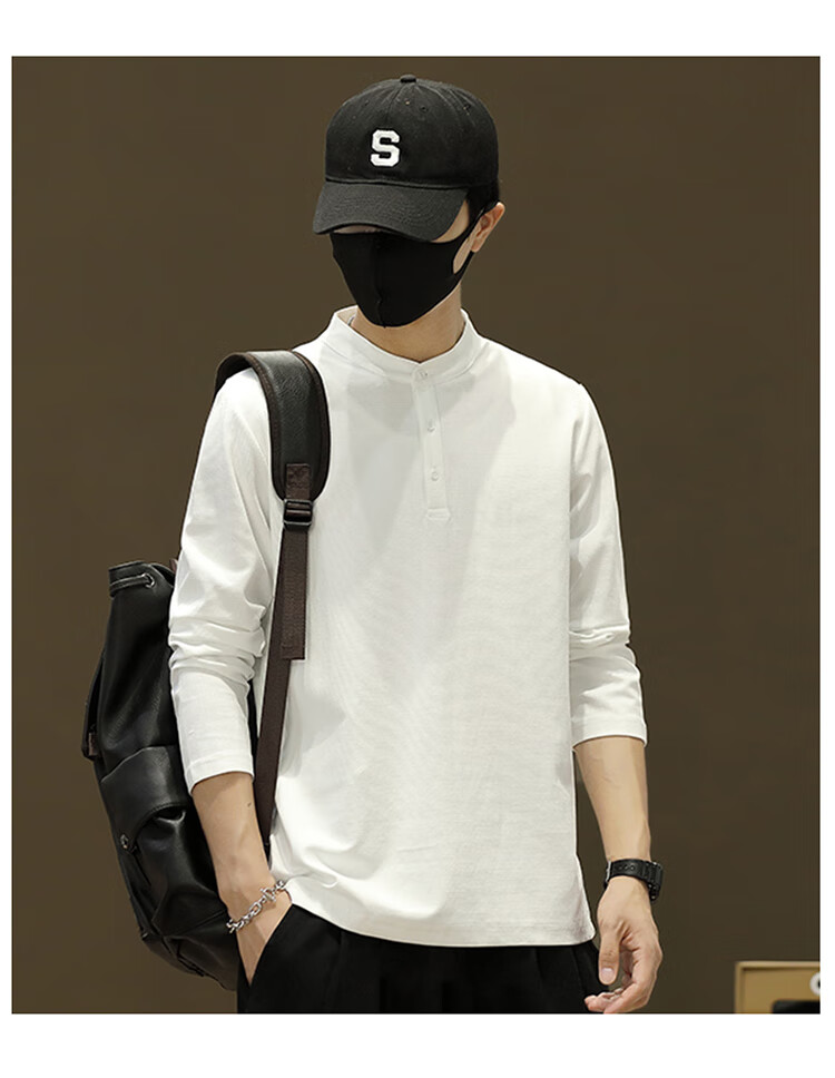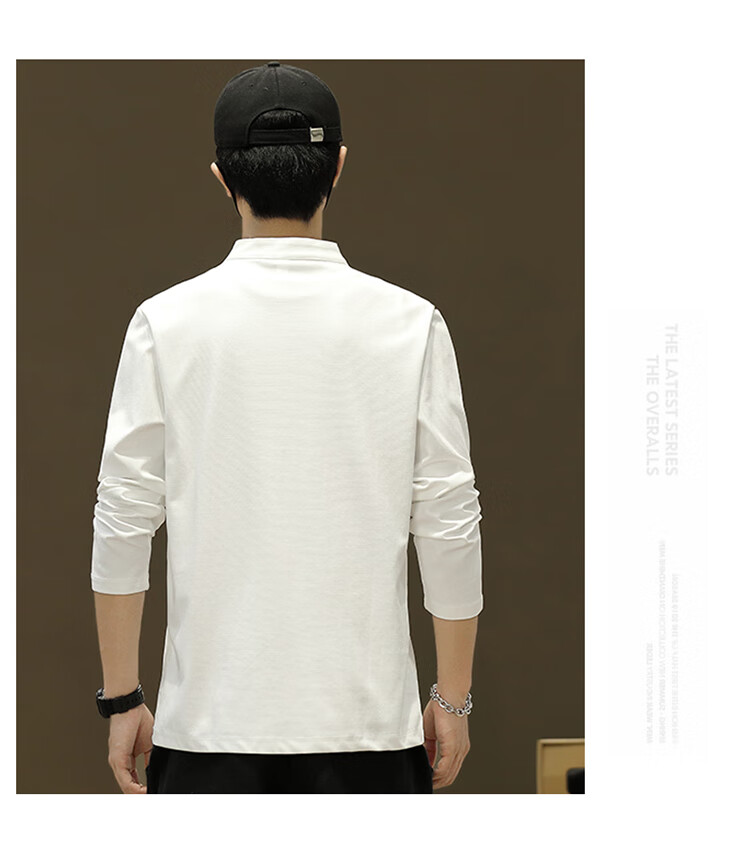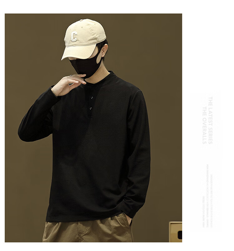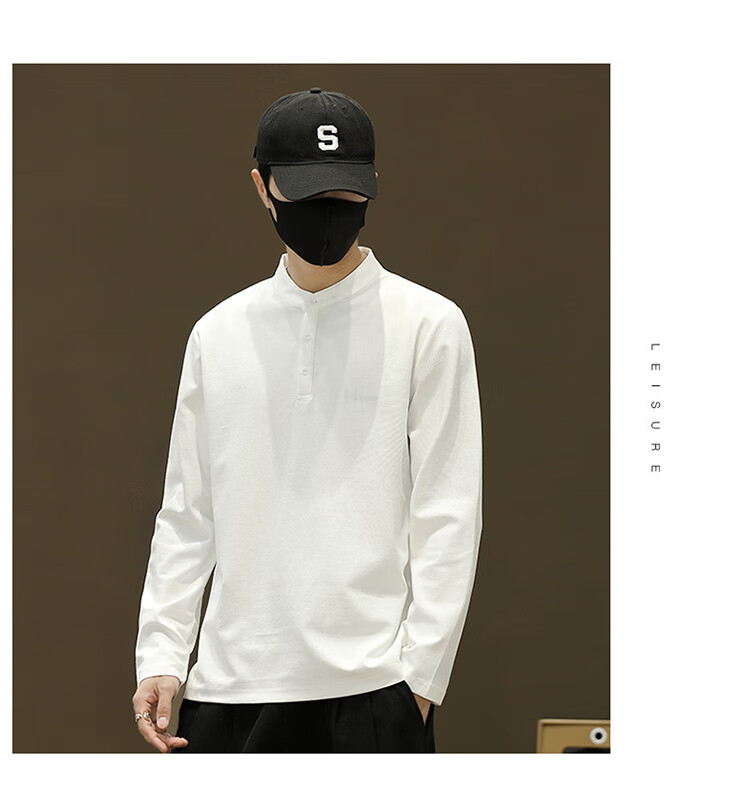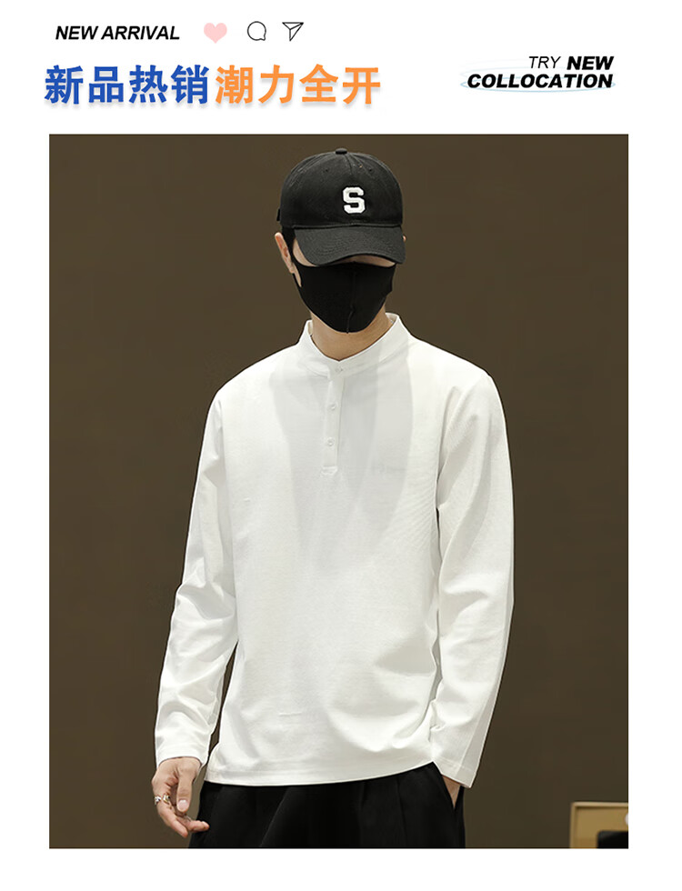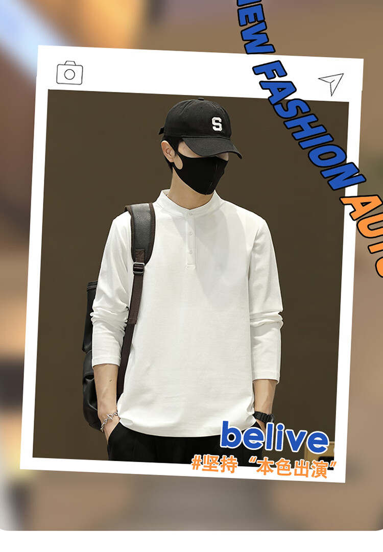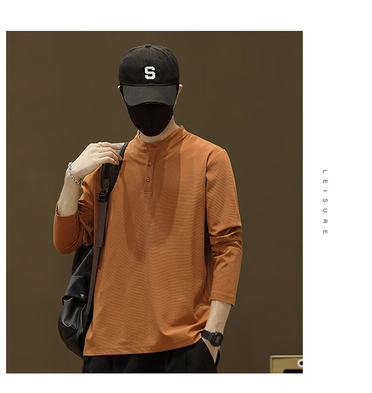 Playboy (PLAYBOY) Henry collar long-sleeved T-shirt for men in spring and autumn solid color retro simple bottoming shirt loose trendy brand versatile stand-up collar sweatshirt Khaki 56119 long sleeve 4XL (about 170-190Jin Jin is equal to 0.5 kg can be worn)
