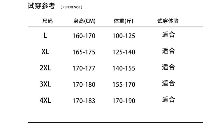 China (cm) 165 / 88-90 170 / 96-98 175 / 108-110 180 / 118-122 185 / 126-130