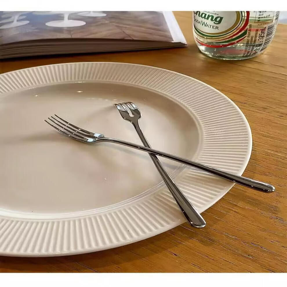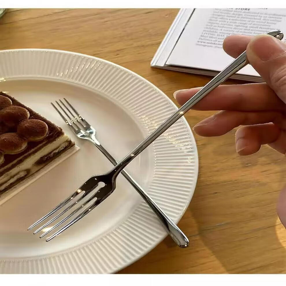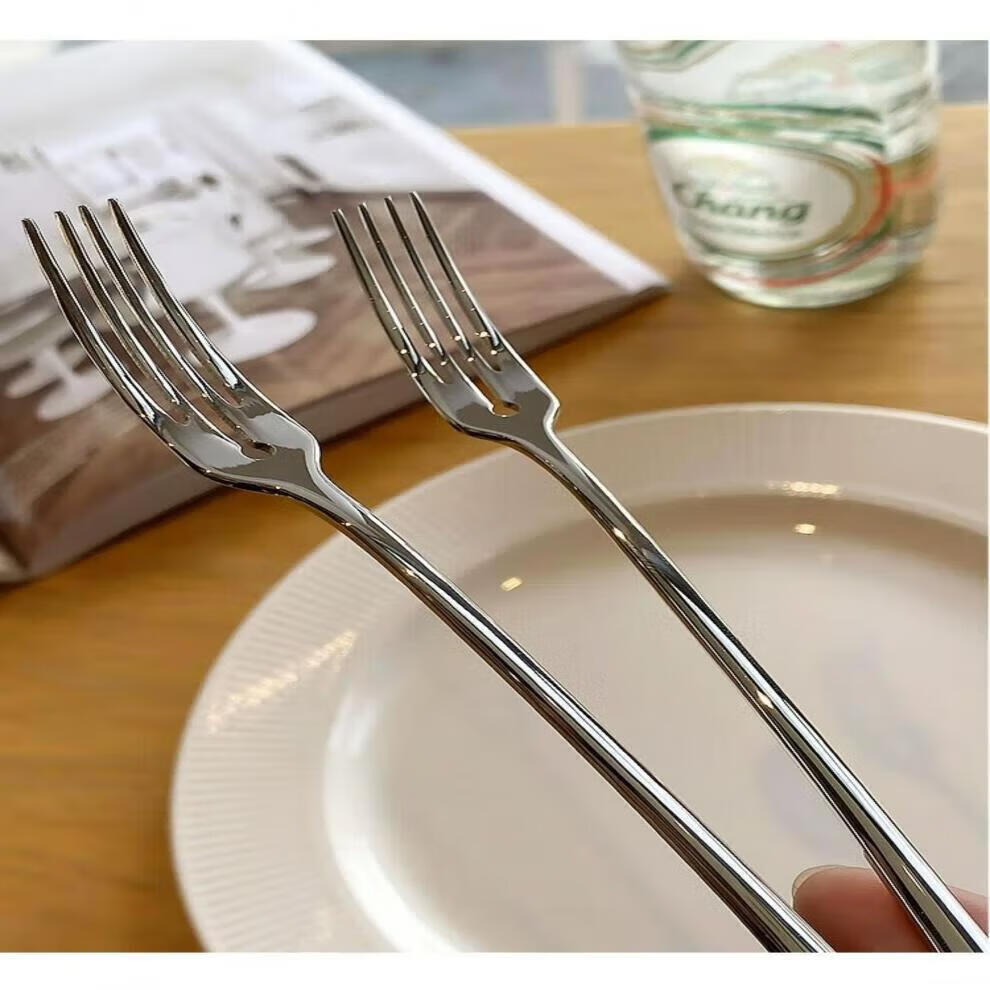 Fat Donglai Fat Donglai purchasing 304 stainless steel fruit fork, cake fork, creative mooncake fork, dessert fork, fruit pick, fruit fork, bright version 1 piece (about 15.5*1 in length)