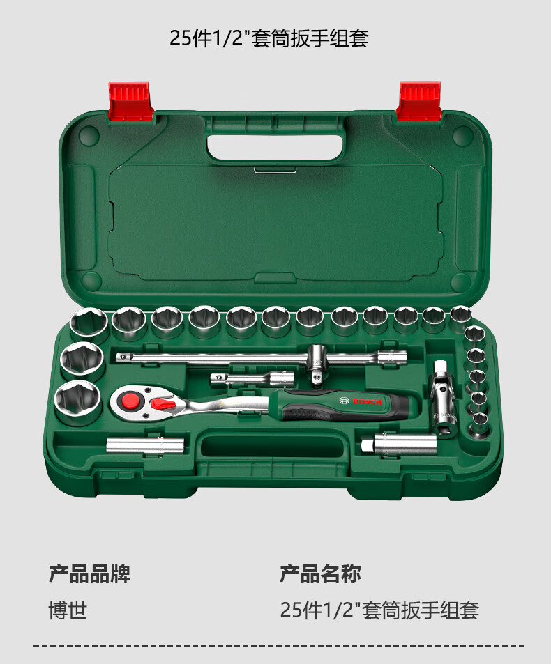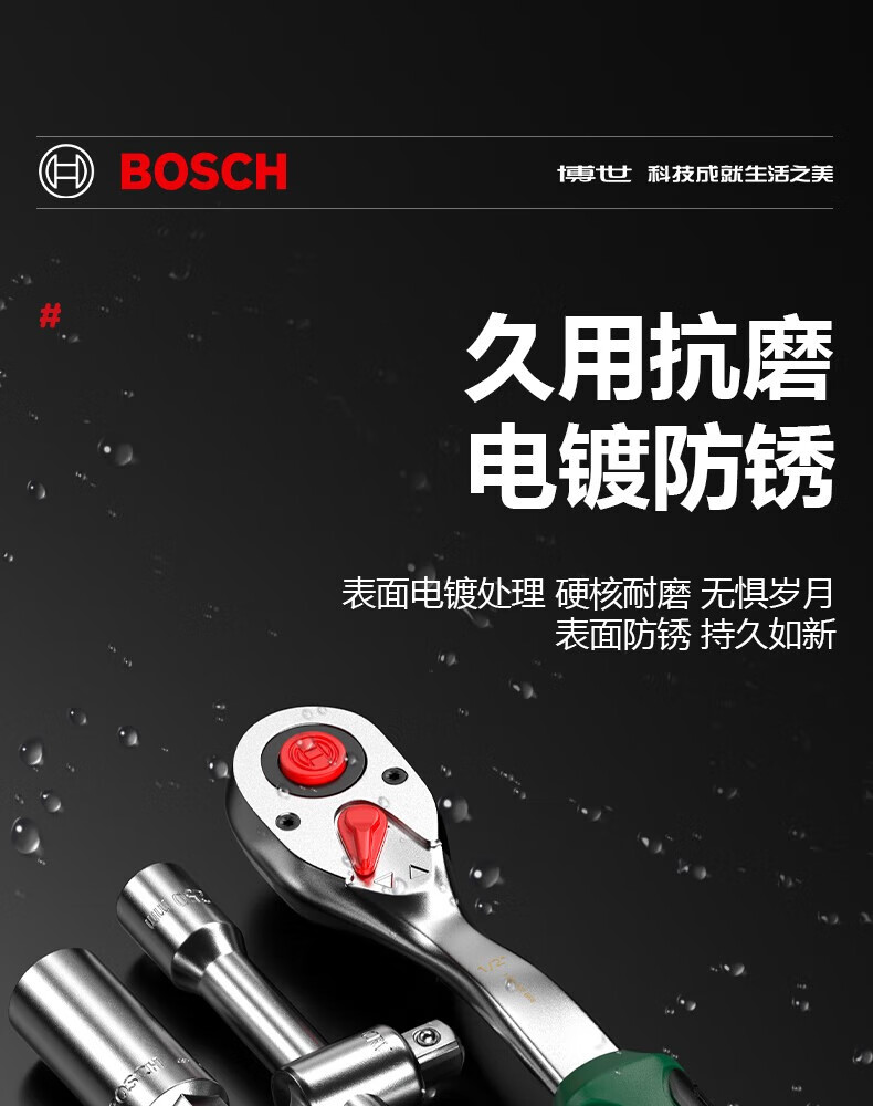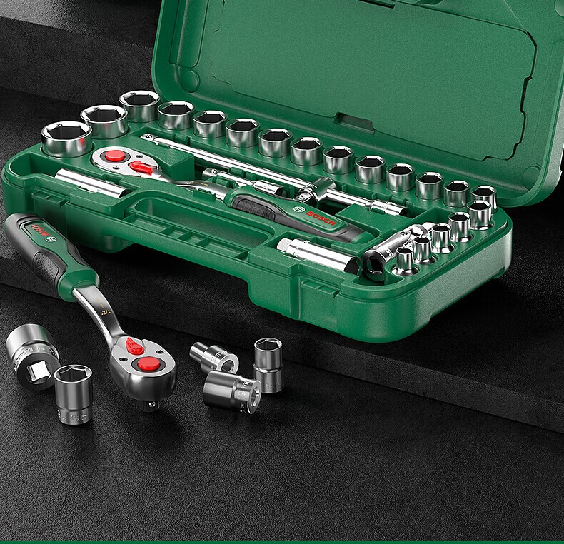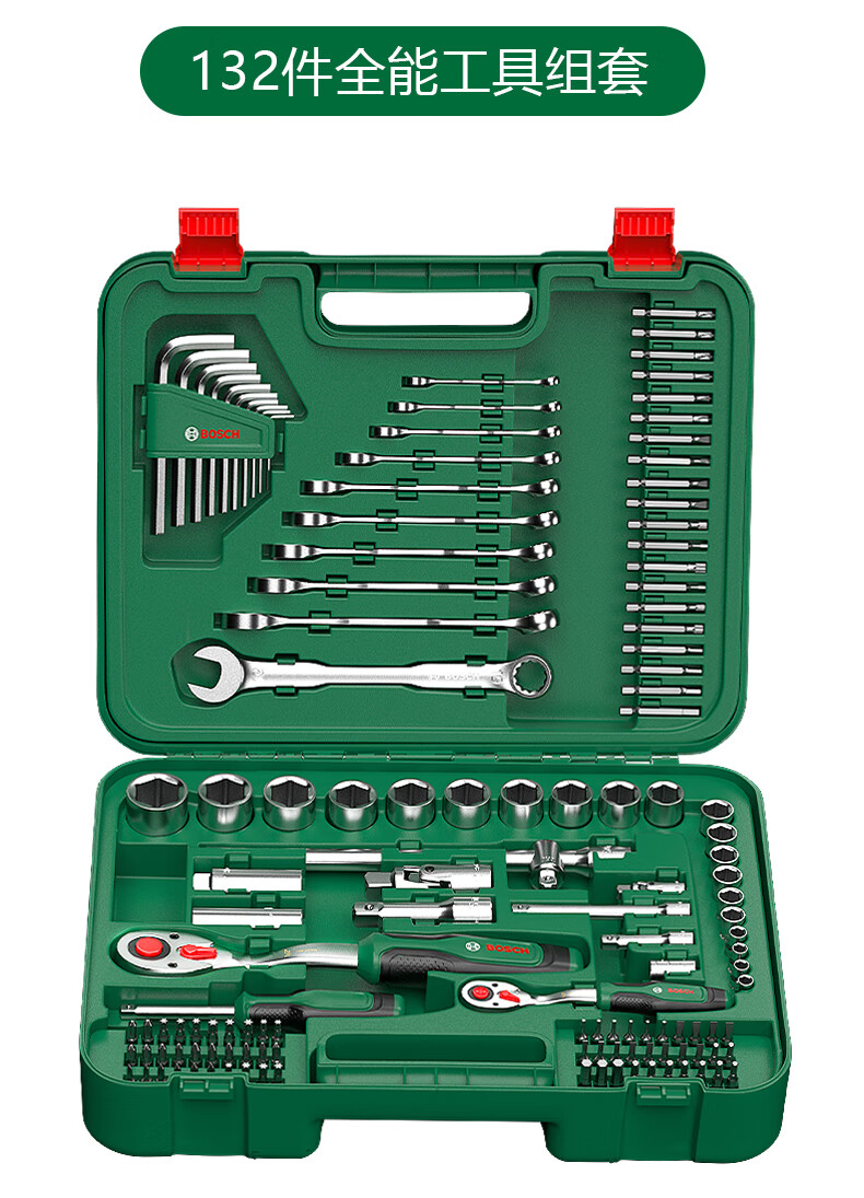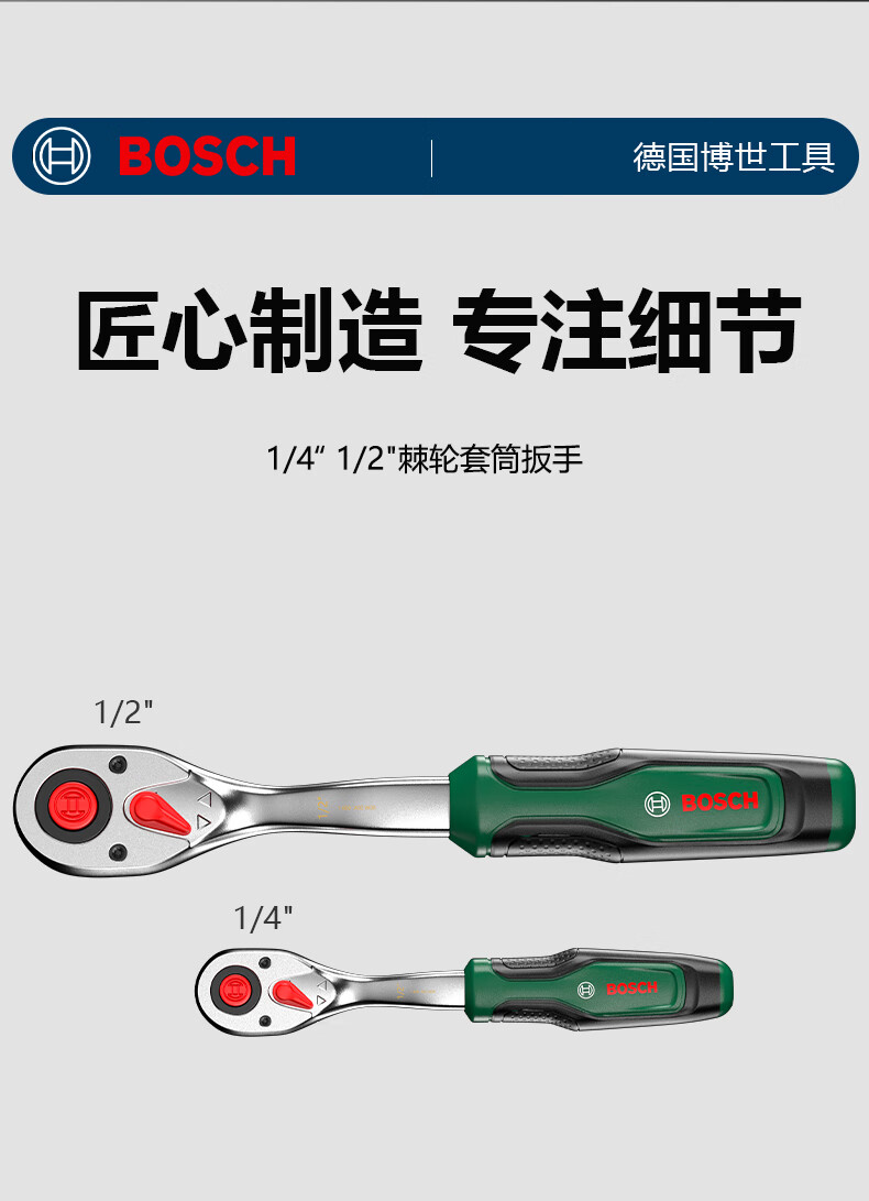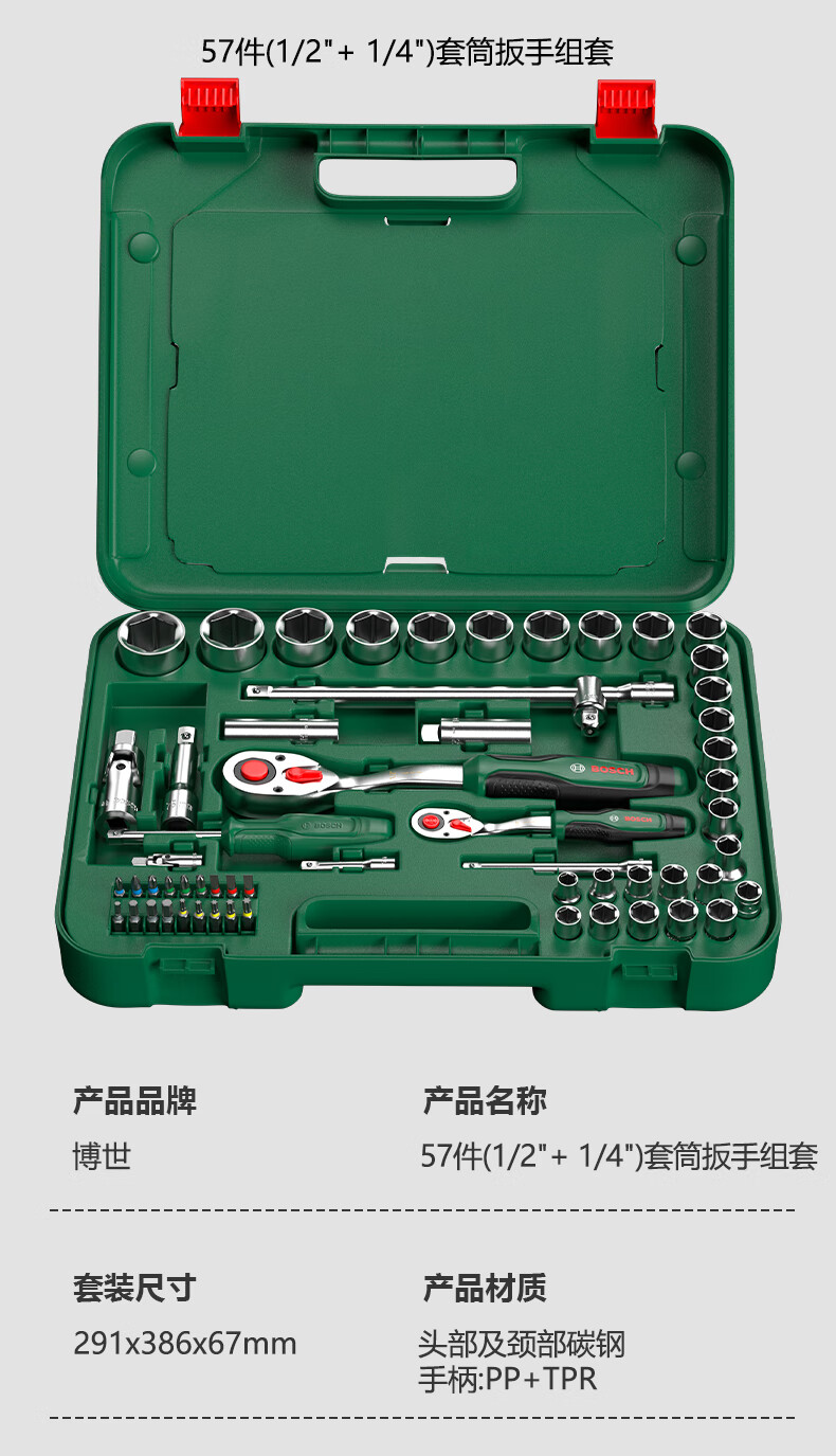 Bosch (BOSCH) Auto Repair Set Ratchet Socket Wrench Set Flying Wrench Small Flying Wrench Large Flying Wrench Ratchet Set Multi-Function Wrench 57 Pieces (1/4 + 1/2) Socket Wrench Set
