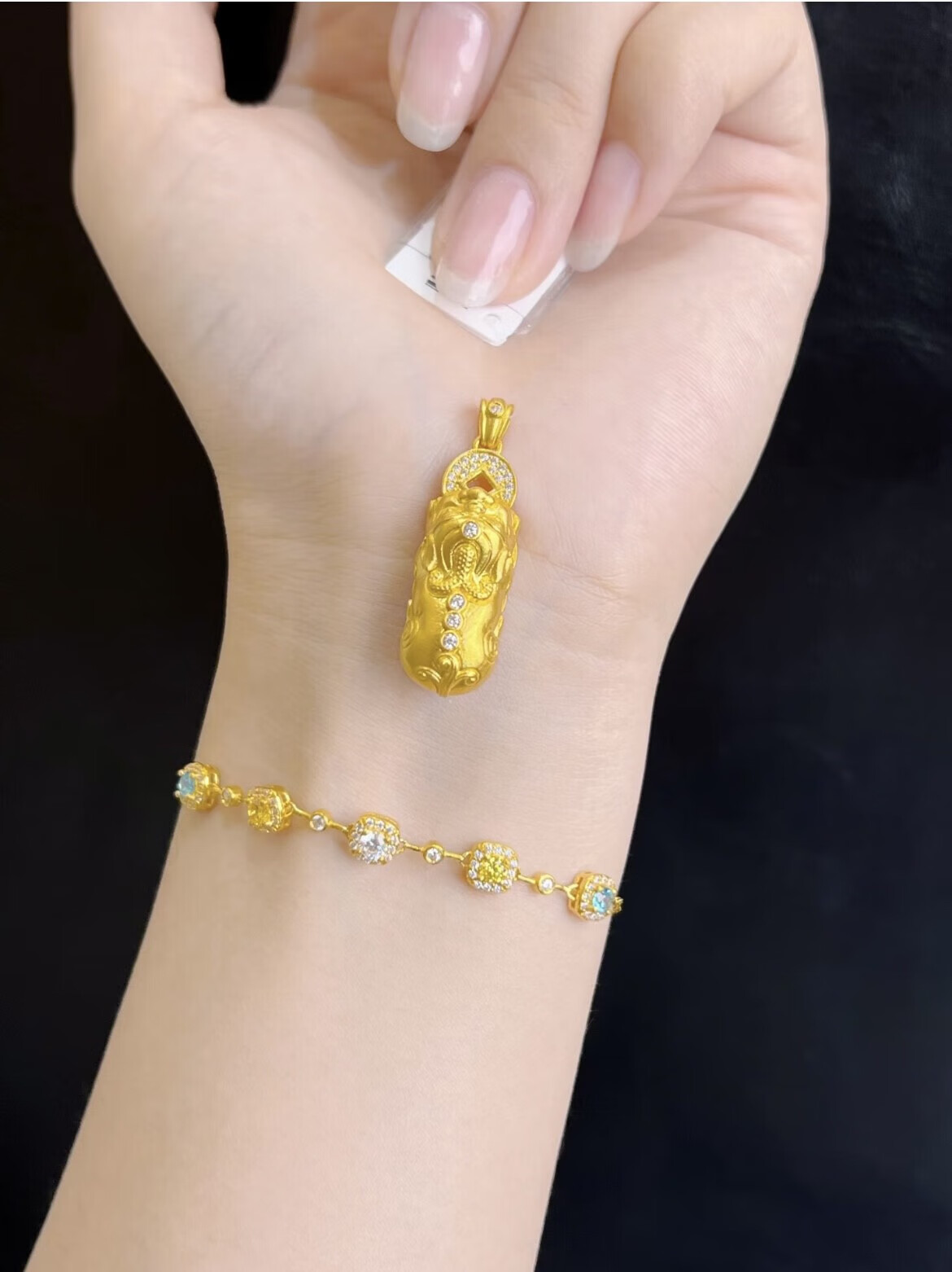 MHFDO treasure girl four-leaf clover pendant for women, niche sense, light luxury, 18k gold color blessing pendant, little fat blessing (gift box)