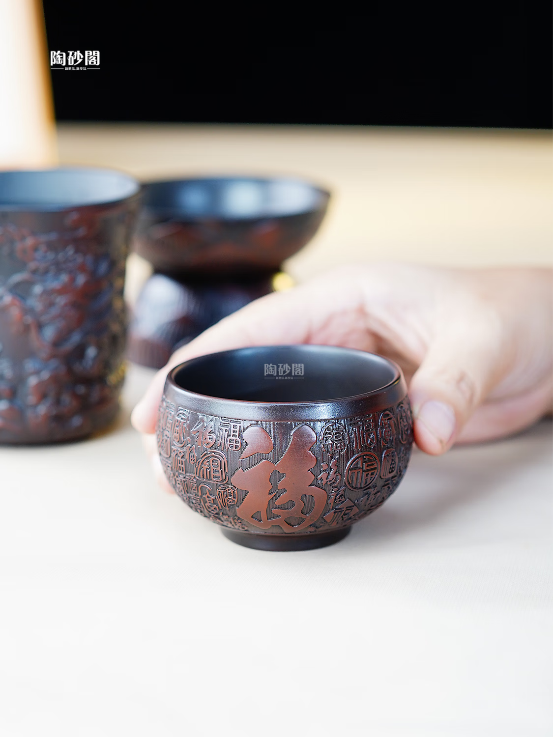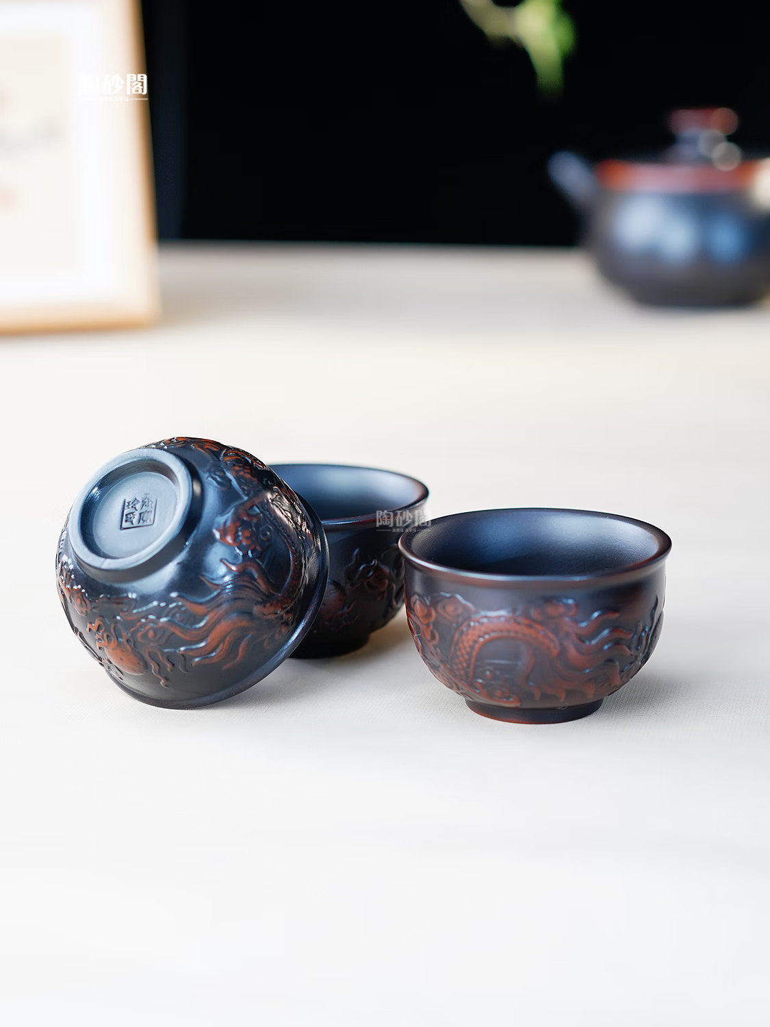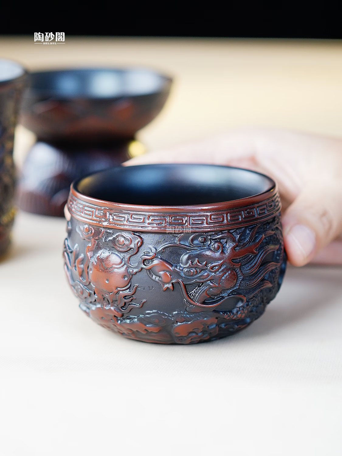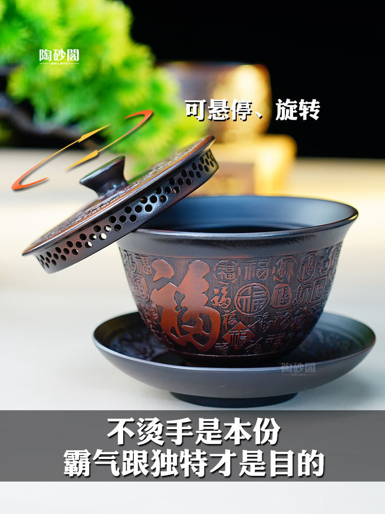 Purple pottery three-cai bowl tea set, non-hot, high-end three-piece tea set, high-end light luxury purple sand tea set, Pfaff genuine purple pottery three-cai bowl 1 piece