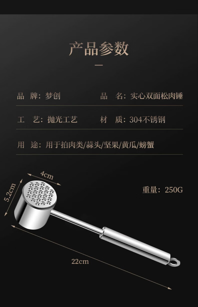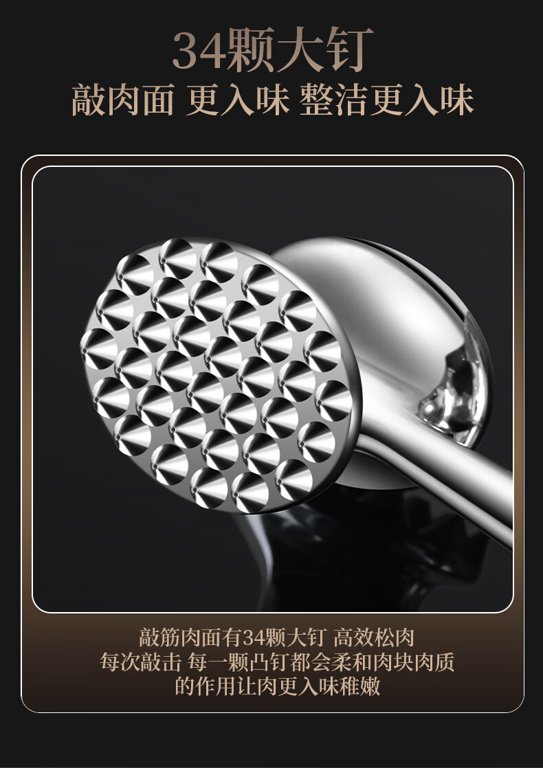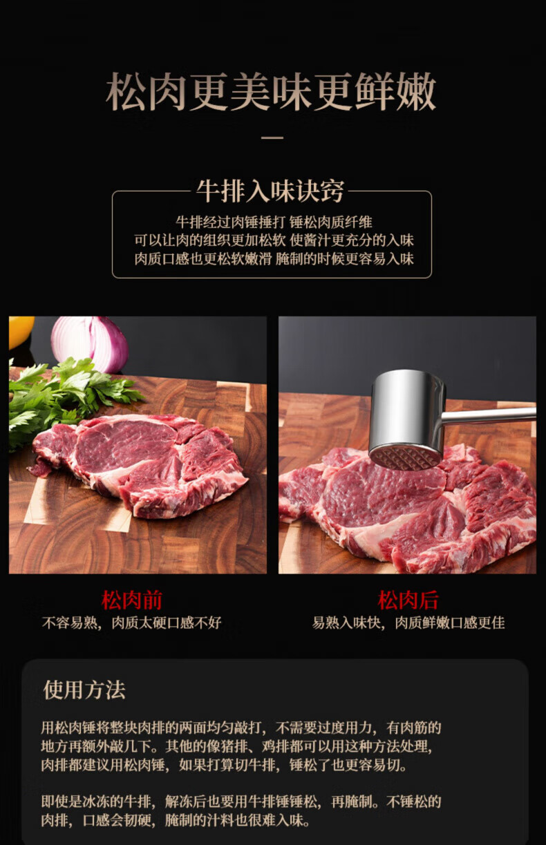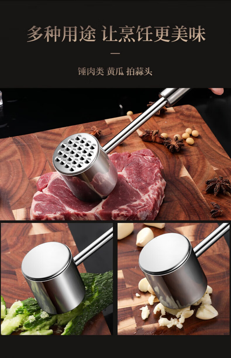 双立人德国品质304不锈钢松肉锤厨房家用拍牛排锤子嫩肉断筋器工具敲打 【椭圆款】双面松肉锤_【送挂钩+小油刷】