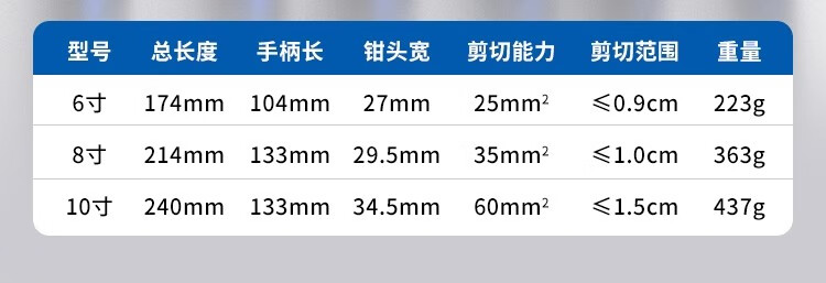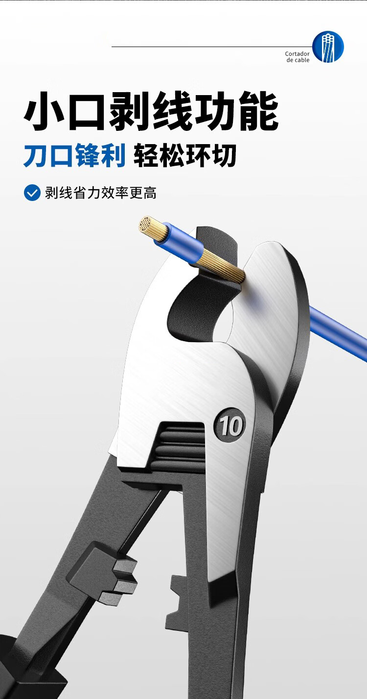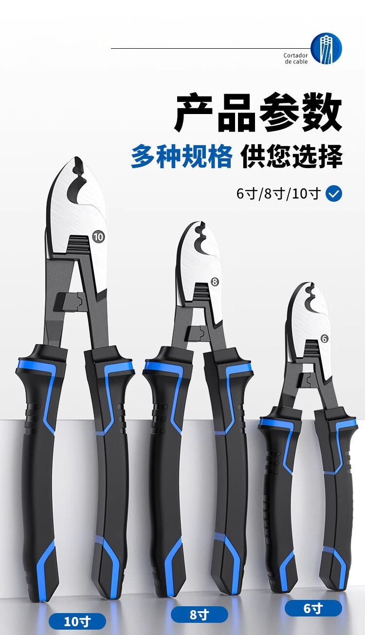 Cable cutter, wire cutter, wire cutter, electrician's manual wire stripper, wire cutter, 6 8 10 inch special scissors, powerful industrial grade, multifunctional cable cutter 6 inches