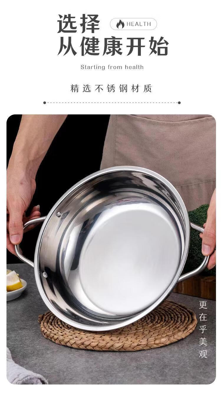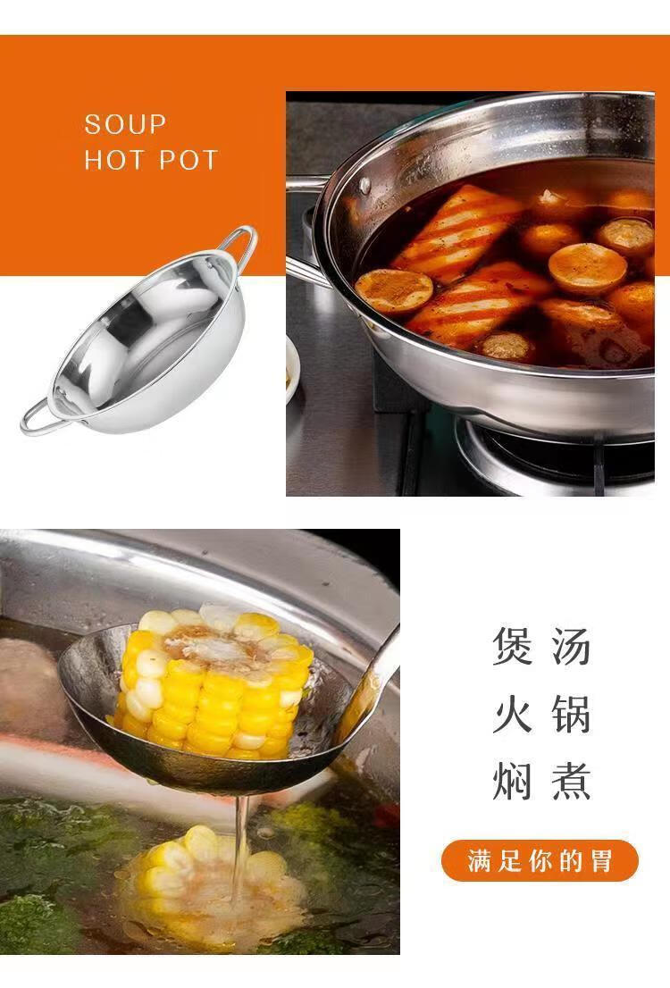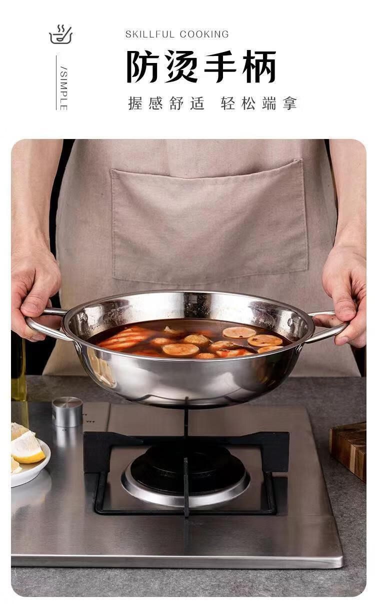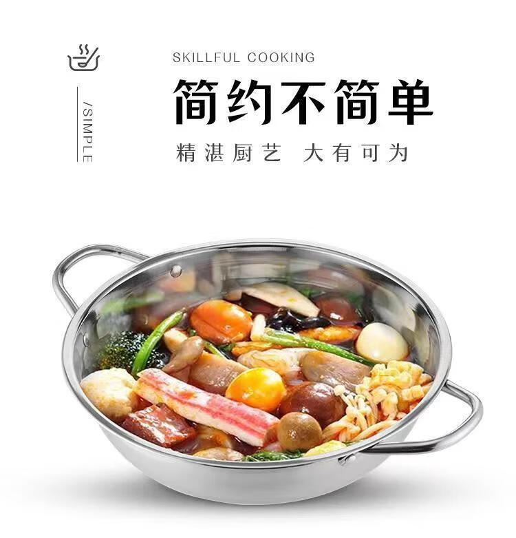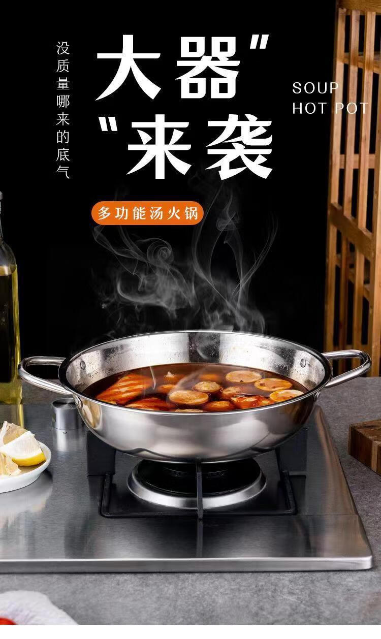 Olla de sopa transparente de acero inoxidable engrosada para cocina de inducción, especial para hotel Cuenca de olla caliente Little Sheep, shabu-shabu de gran capacidad para el hogar, tiempo limitado Olla de sopa transparente de 30 cm con colador gratis
