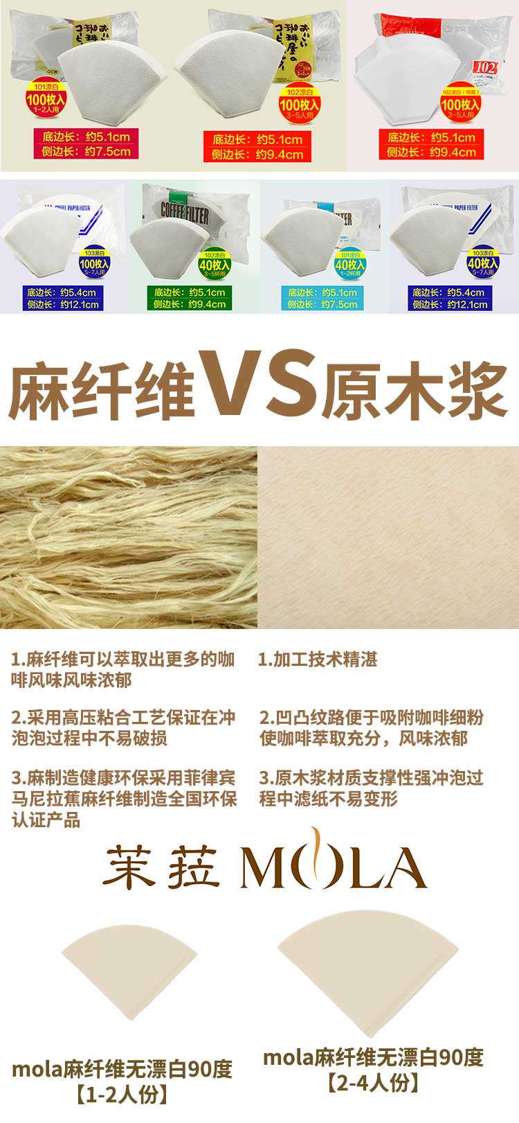 MPPMCK Japanese hemp fiber filter paper mola Sanyo hand-brewed filter paper coffee original wood pulp V60 hanging ear fan-shaped American mola hemp fiber unbleached 40 pieces 4 people 90 degrees