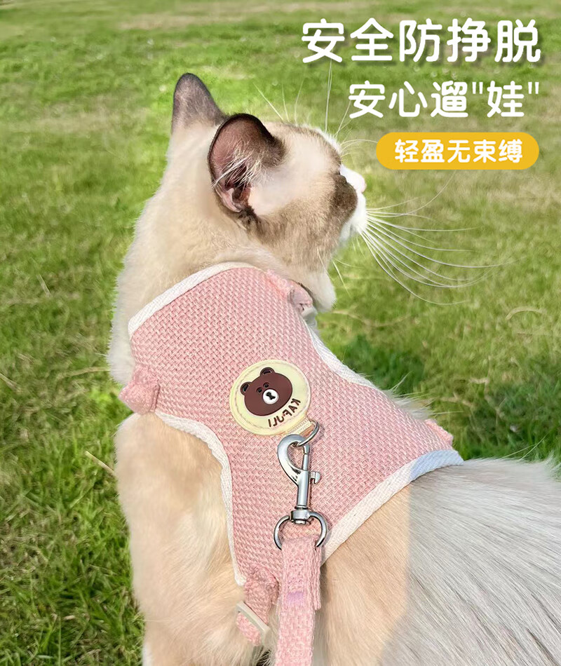 Cat traction rope to prevent break-away, special pet rabbit vest for walking cats, special cat walking chain, cat rope, yellow label bear, M size, recommended 7-14 Jin Jin equals 0.5 kg