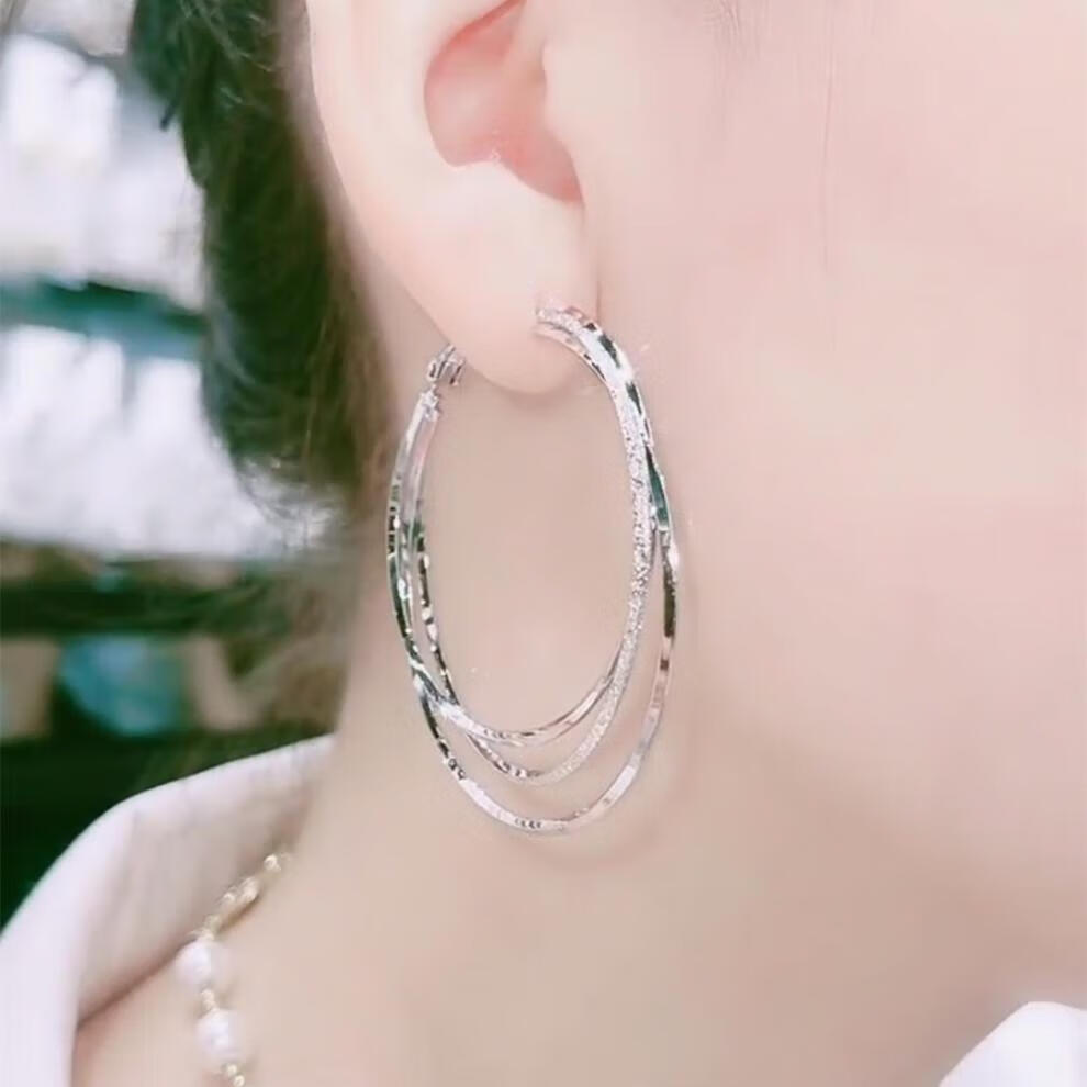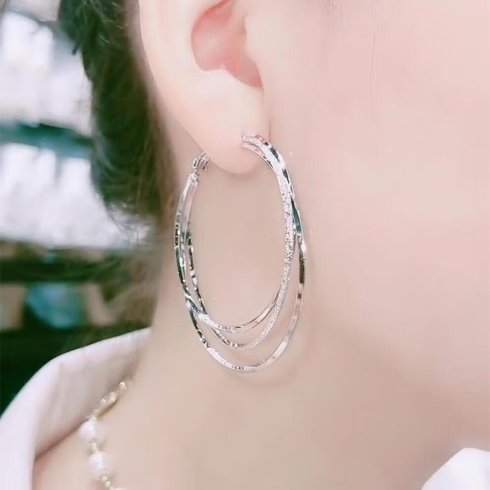 Buhesyt old Phoenix 999 imitation silver pure silver Sansheng III large ear hoop earrings for women and buckle versatile earrings silver diameter 4cm