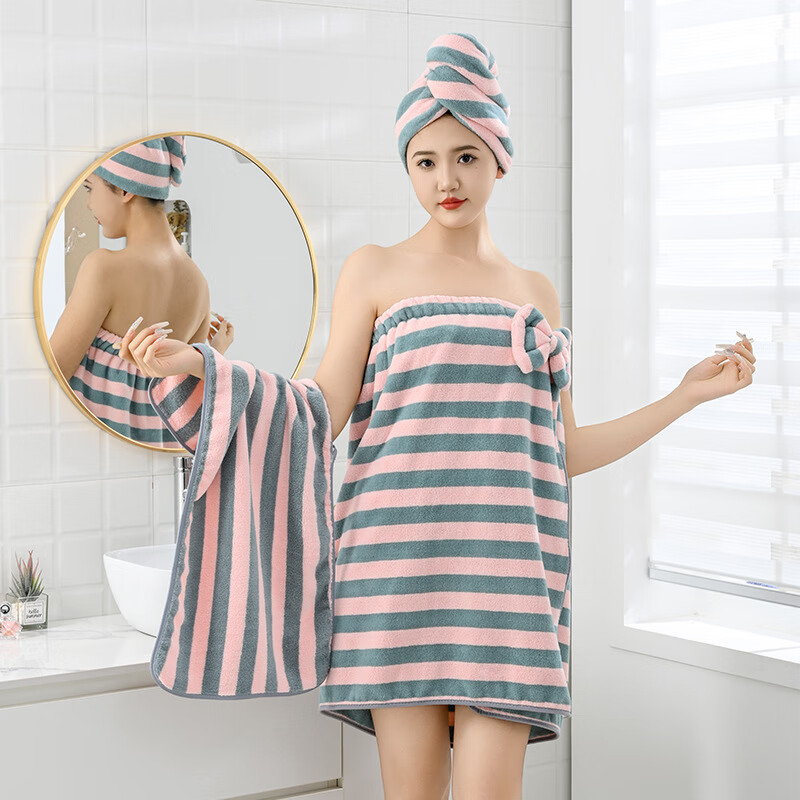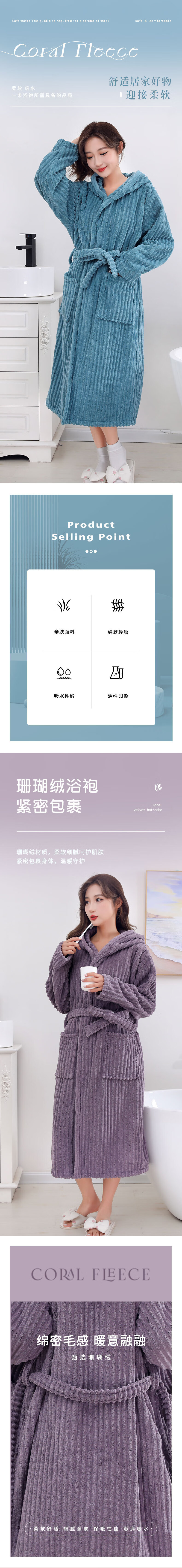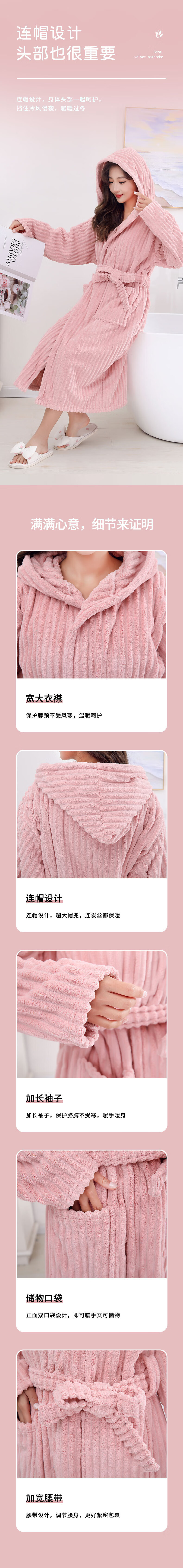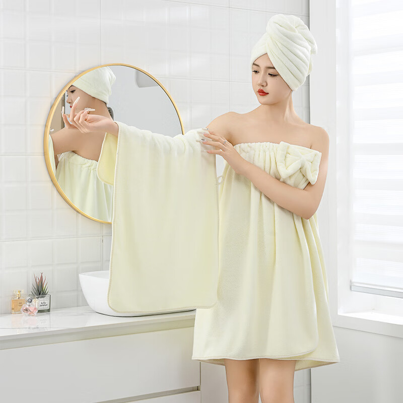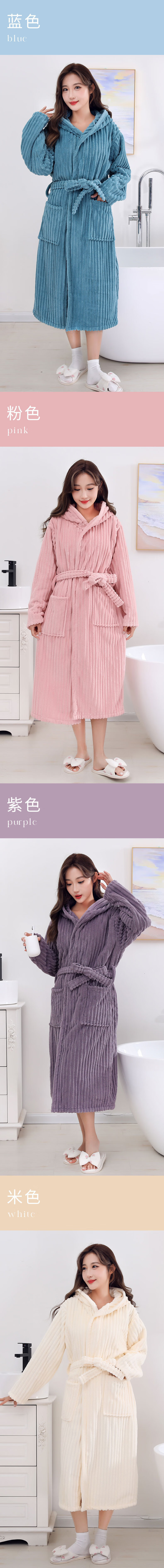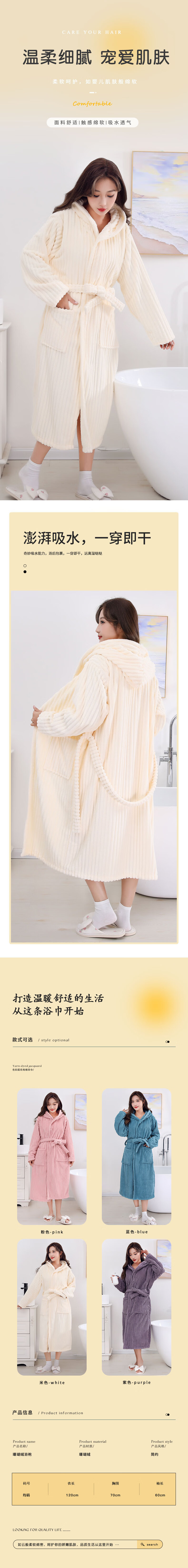 Coral velvet bathrobe is soft and thickened. Adult couple's home pajamas for men and women can wear bathrobes with straps and long-sleeved bath skirts. Cream rice 25*60cm hair drying cap