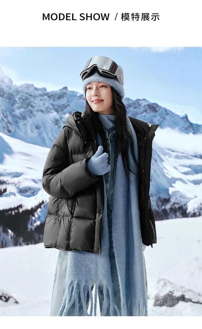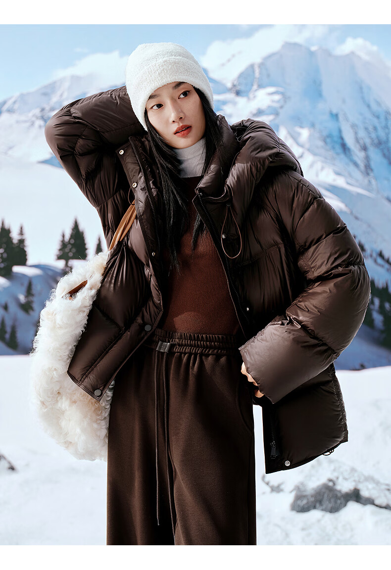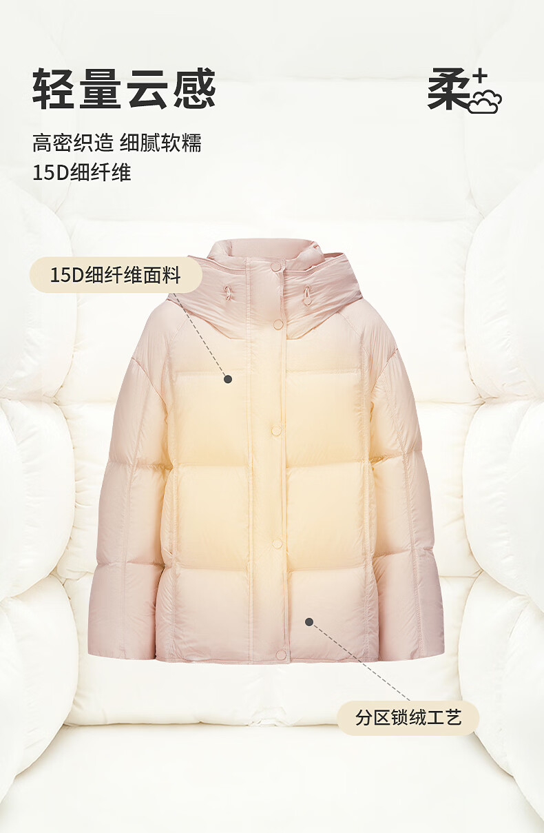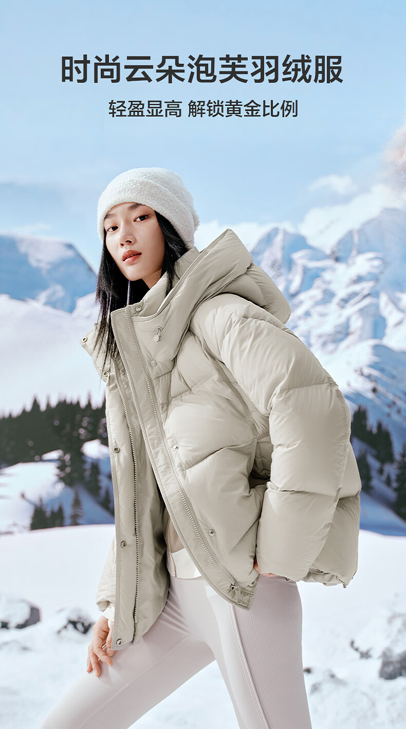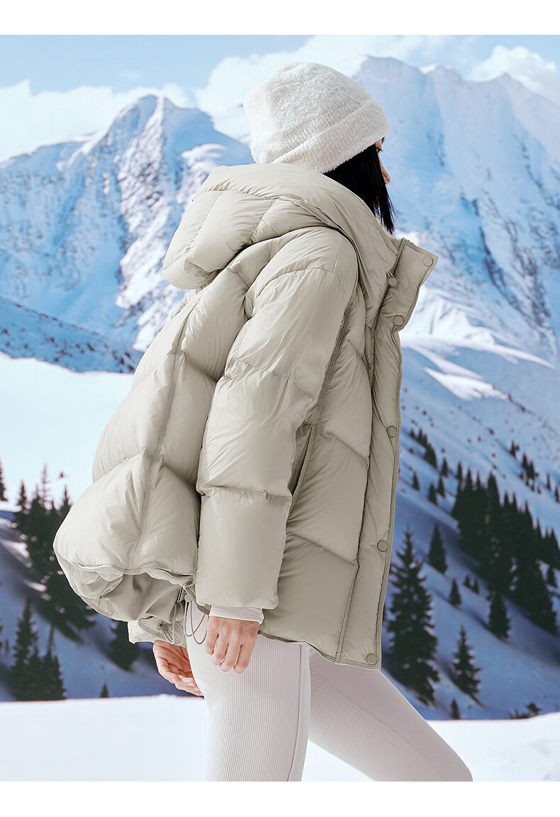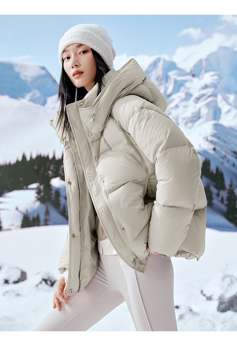 Jiuzi Annako lightweight gall-free waterproof hooded short duck down jacket for women 2025 winter new style light green M