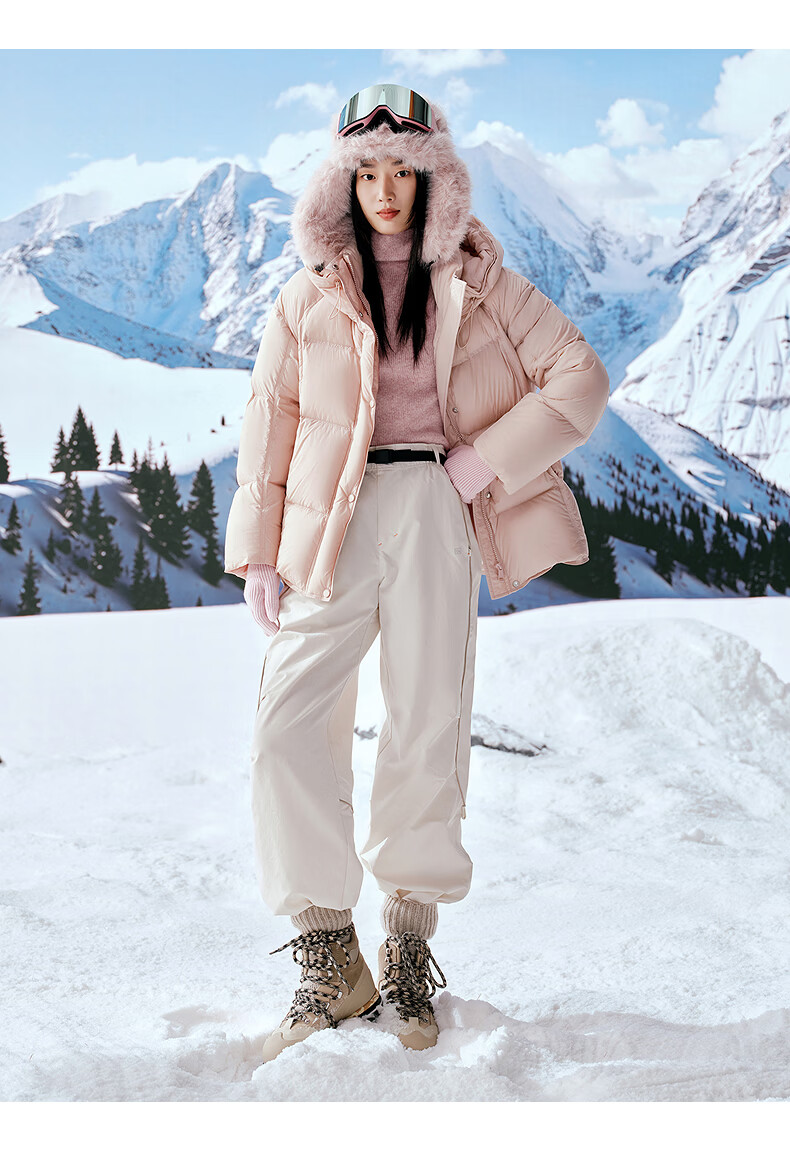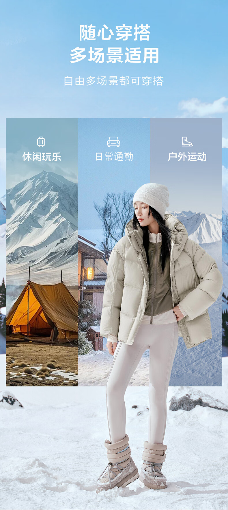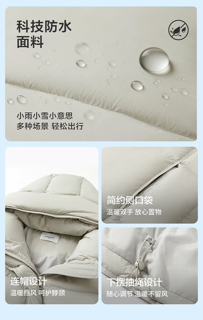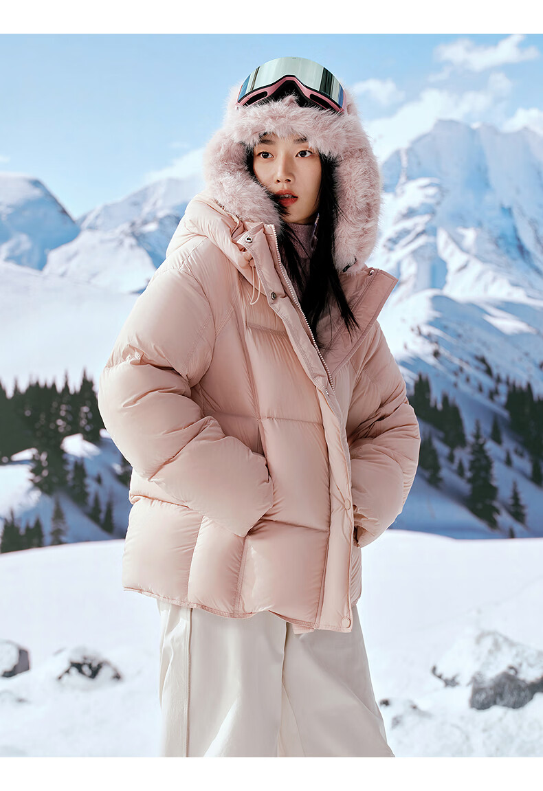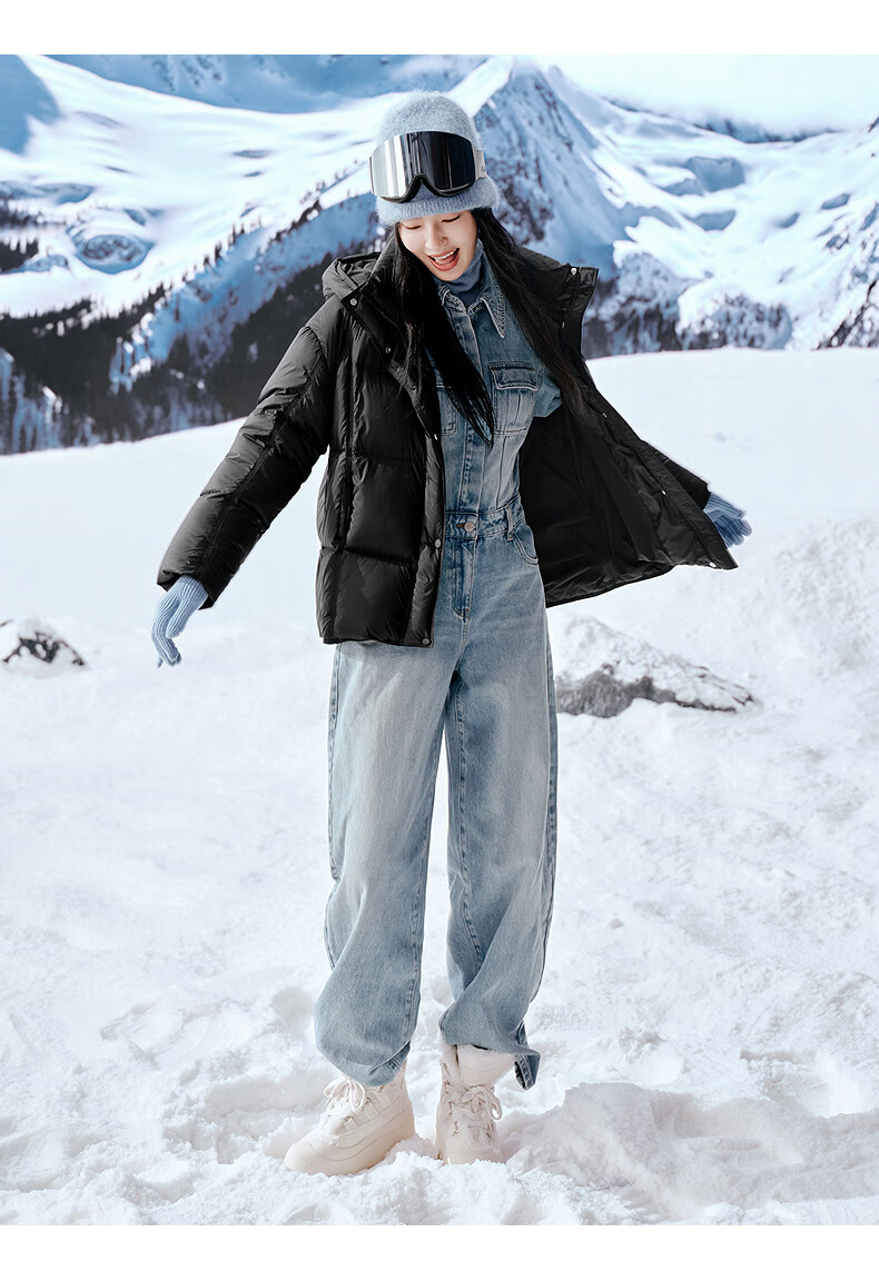 Jiuzi Annako lightweight gall-free waterproof hooded short duck down jacket for women 2025 winter new style light green M