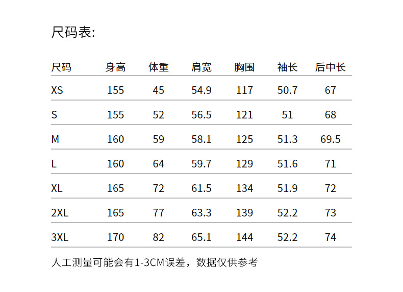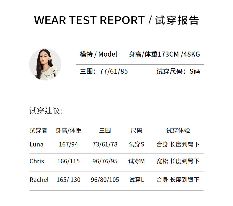 China (cm) 160-165/84-86 165-170 / 88-90 167-172 / 92-96 168-173 / 98-102 170-176 / 106-110