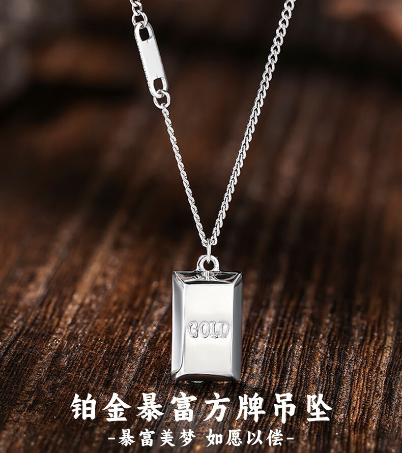 LIU GUI FU JEWELRY platinum pendant women's necklace 2025 new style rich square brand big and thick birthday gift practical for girlfriend 5.51g rich small square brand pendant