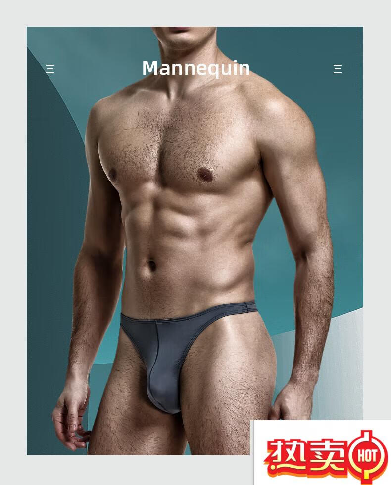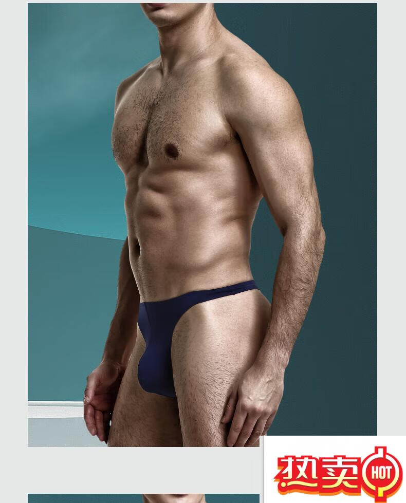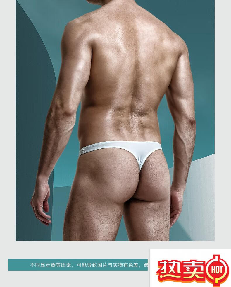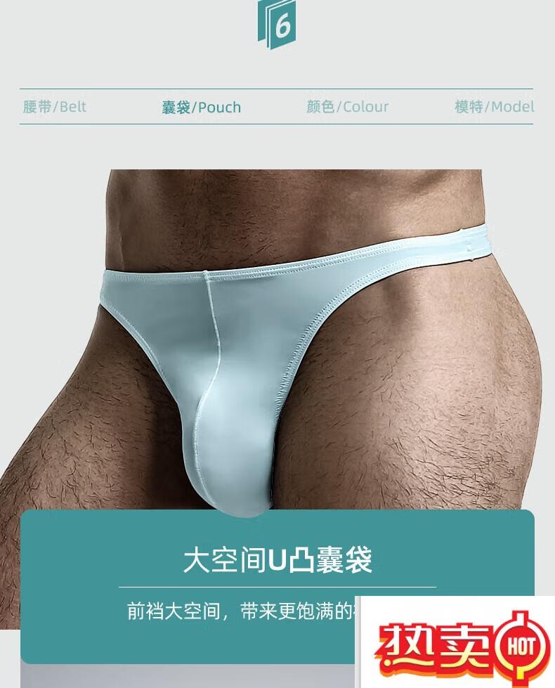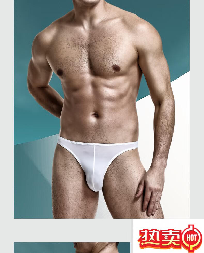 Saishio men's low-waist U-convex elastic ice silk thong black L