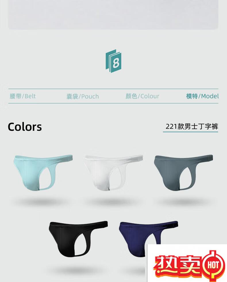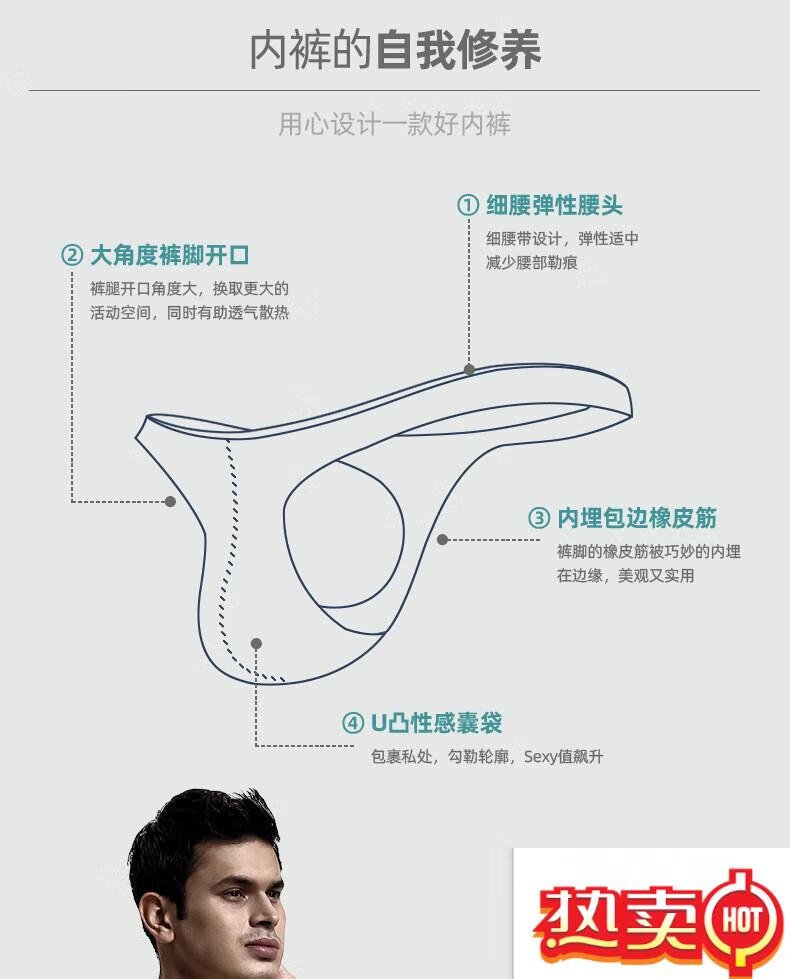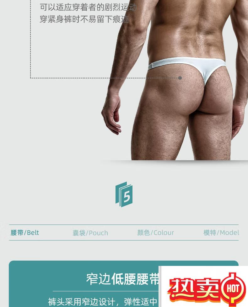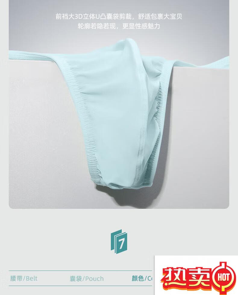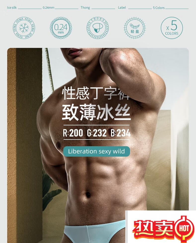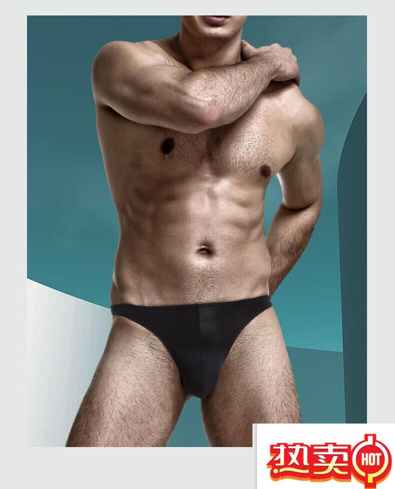Saishio men's low-waist U-convex elastic ice silk thong black L