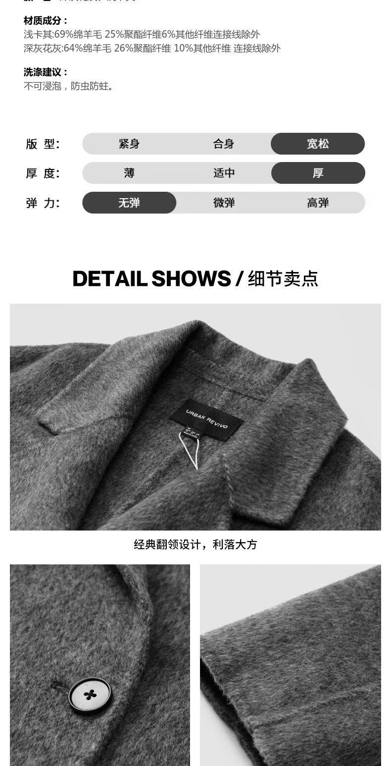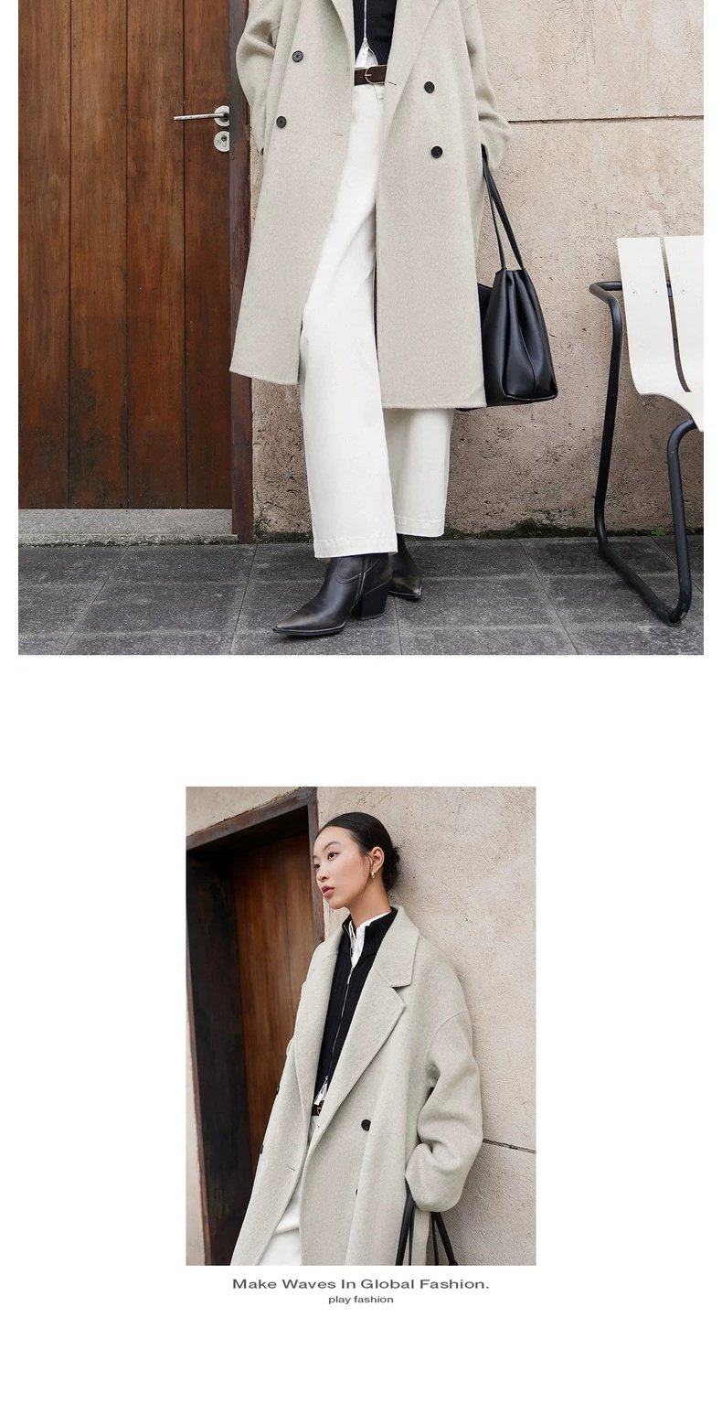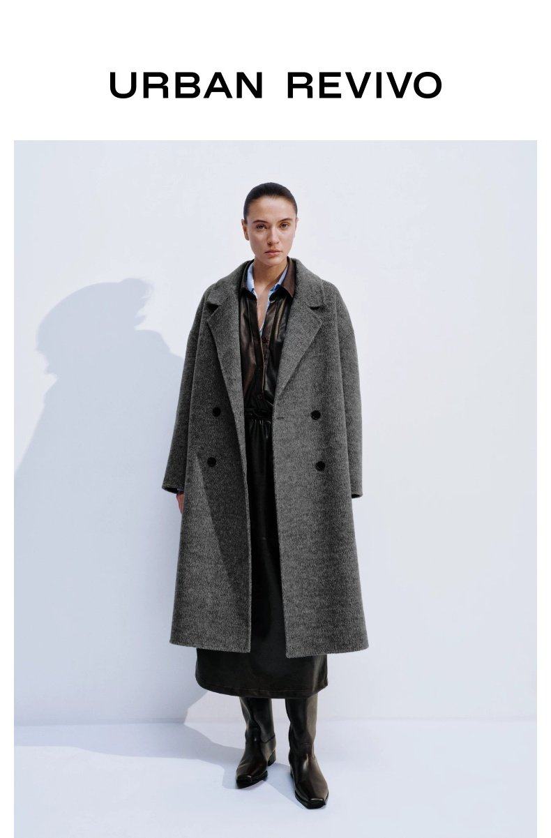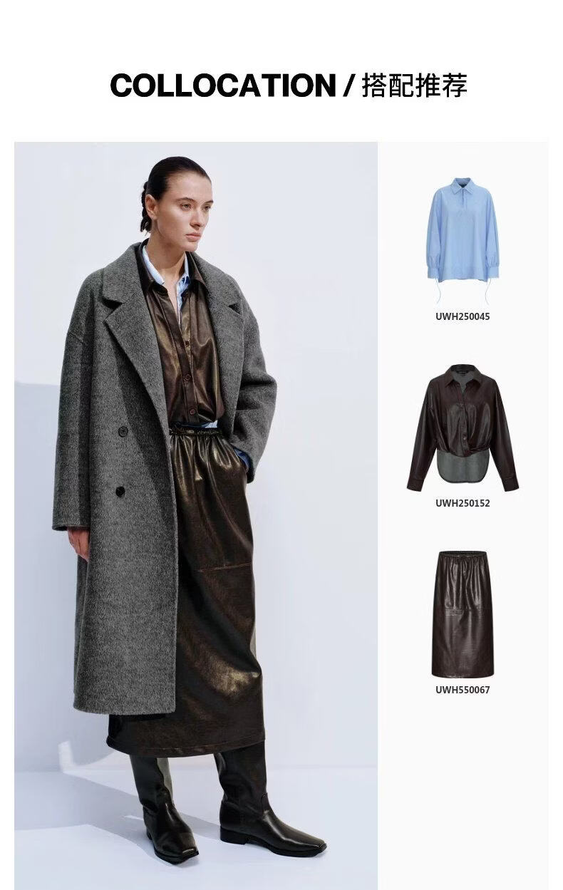 UR2025 new winter women's high-intelligence gray double-breasted coat UWM150069 light khaki S