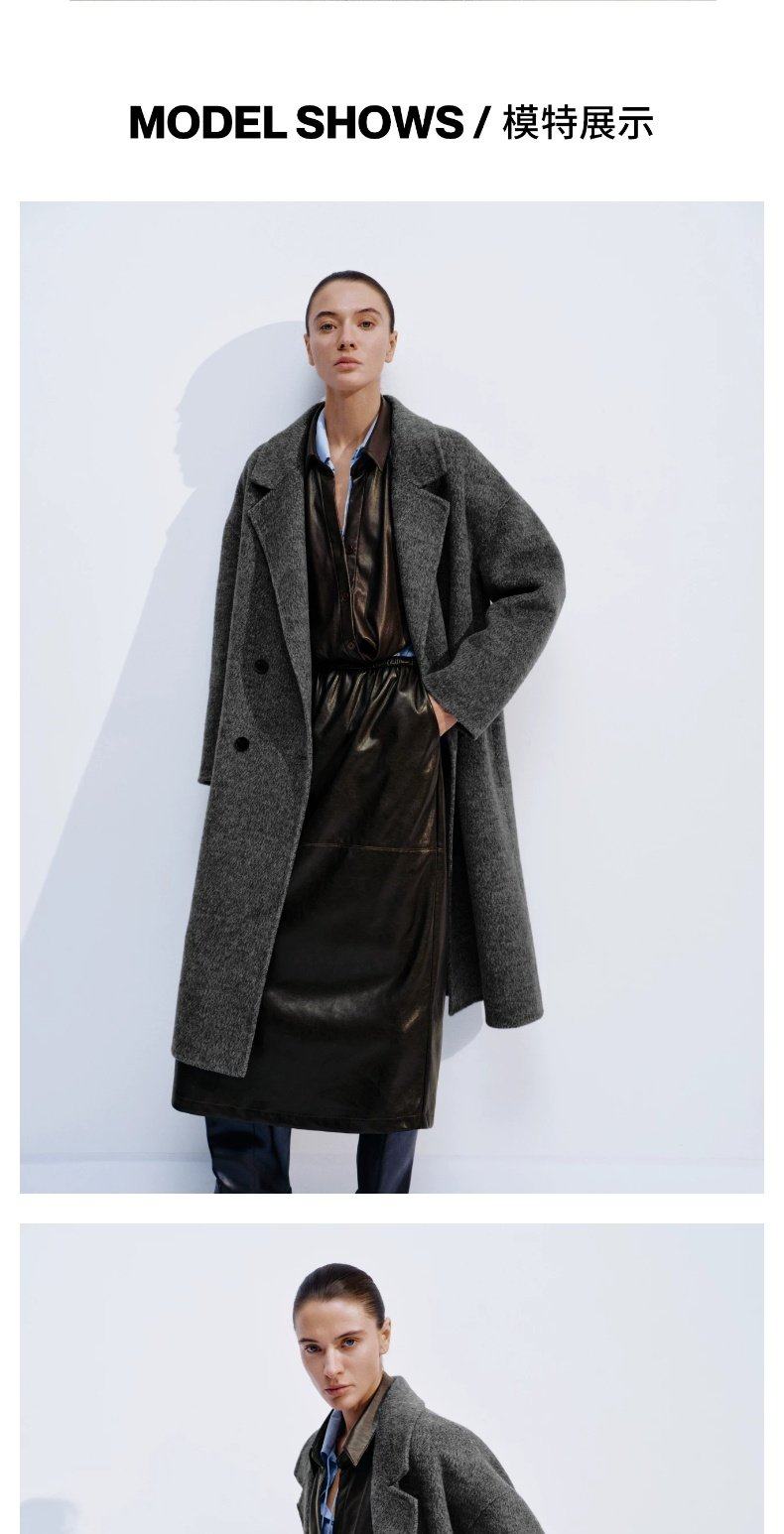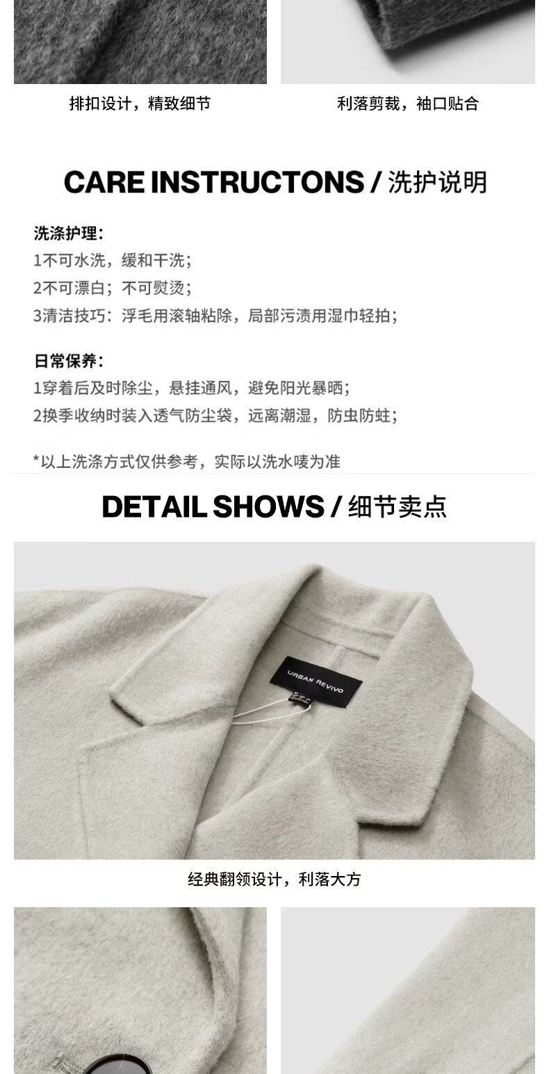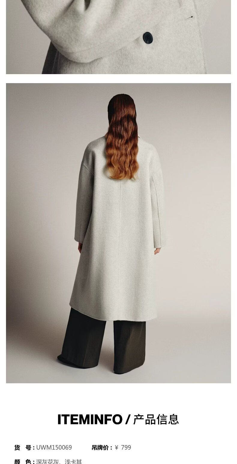UR2025 new winter women's high-intelligence gray double-breasted coat UWM150069 light khaki S