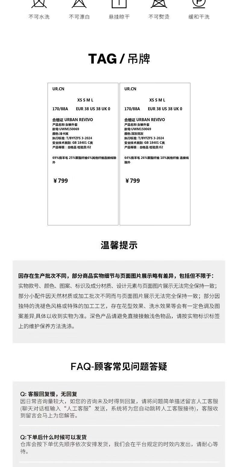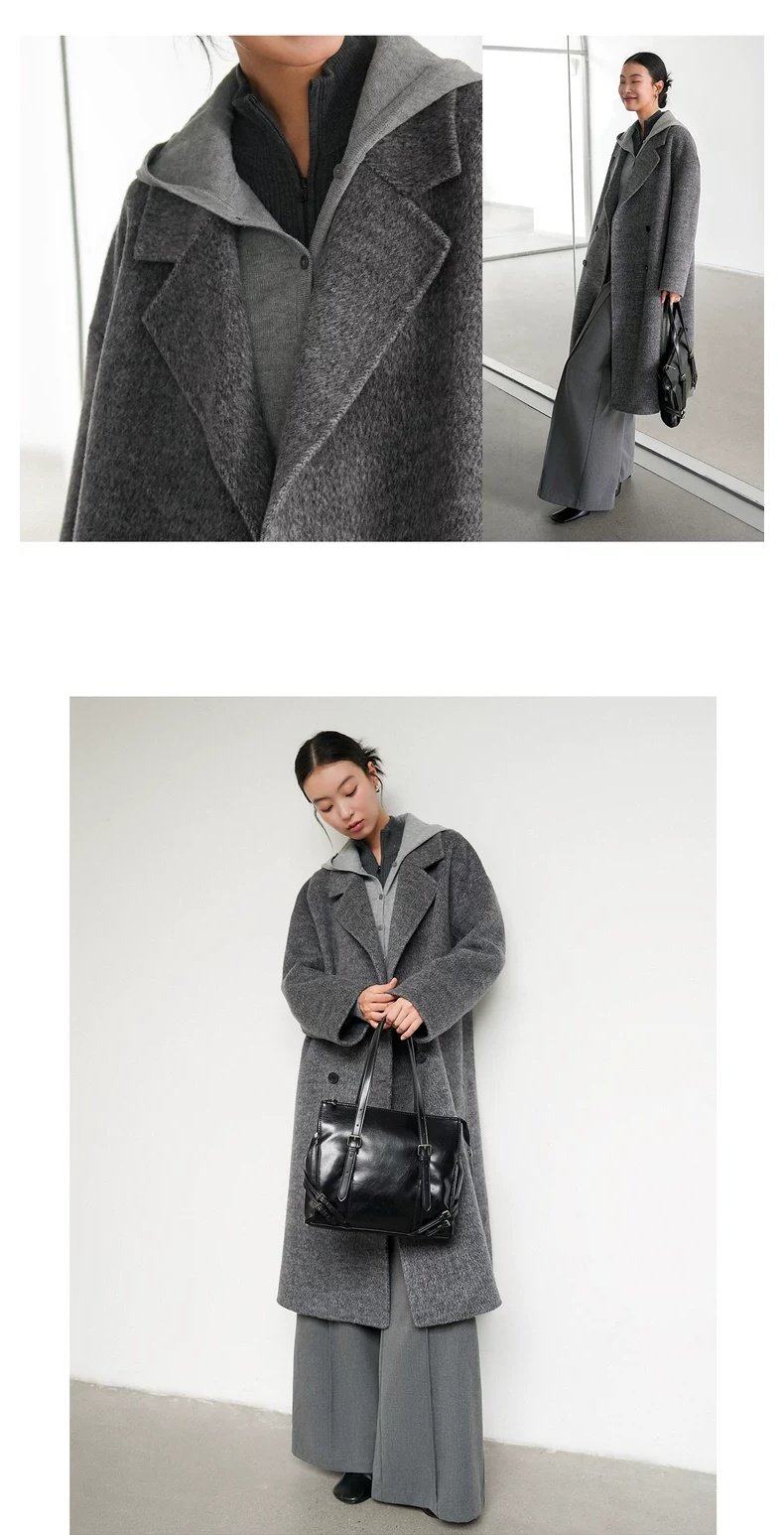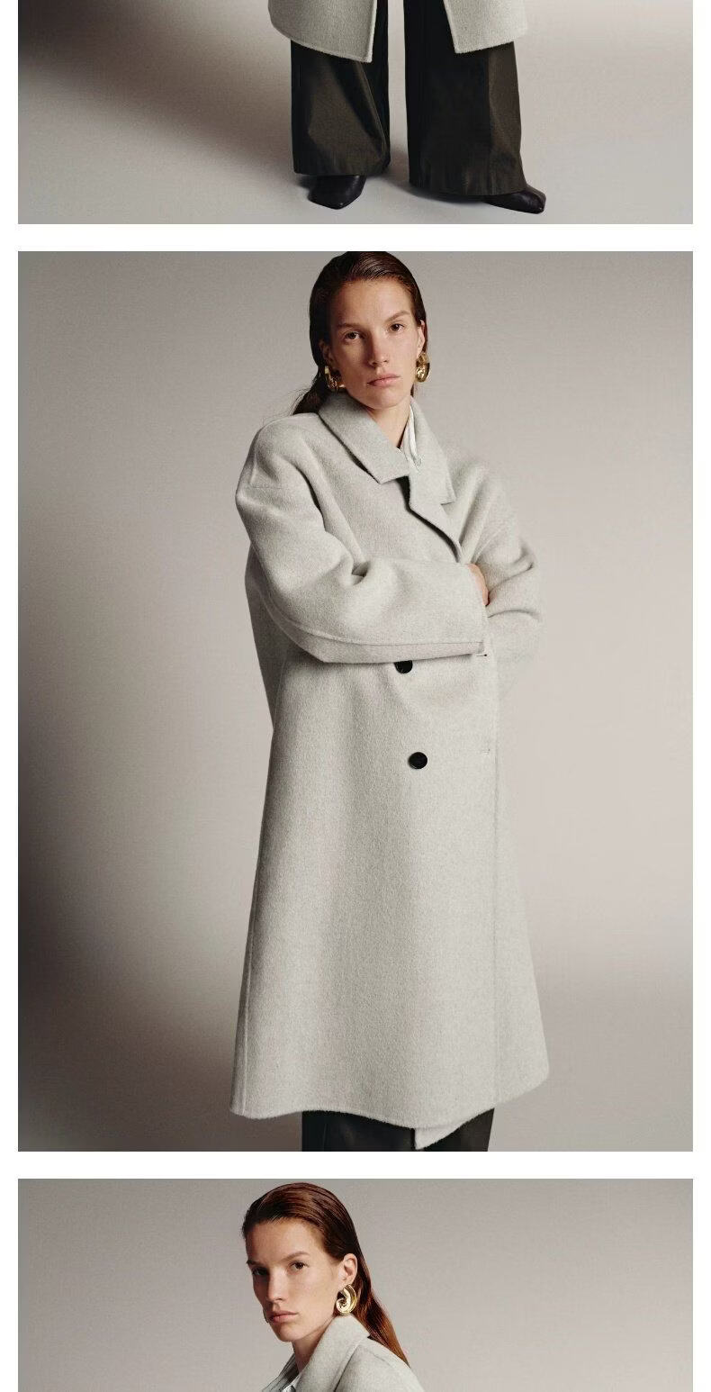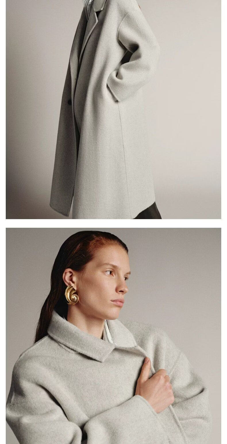 UR2025 new winter women's high-intelligence gray double-breasted coat UWM150069 light khaki S