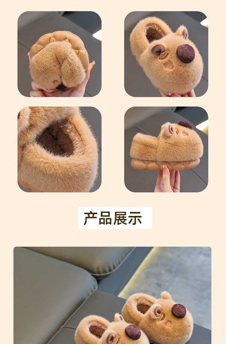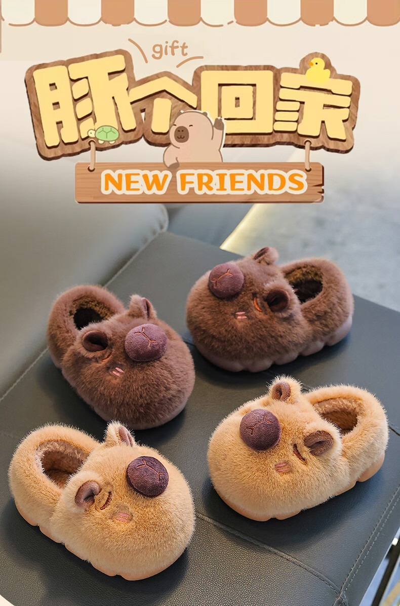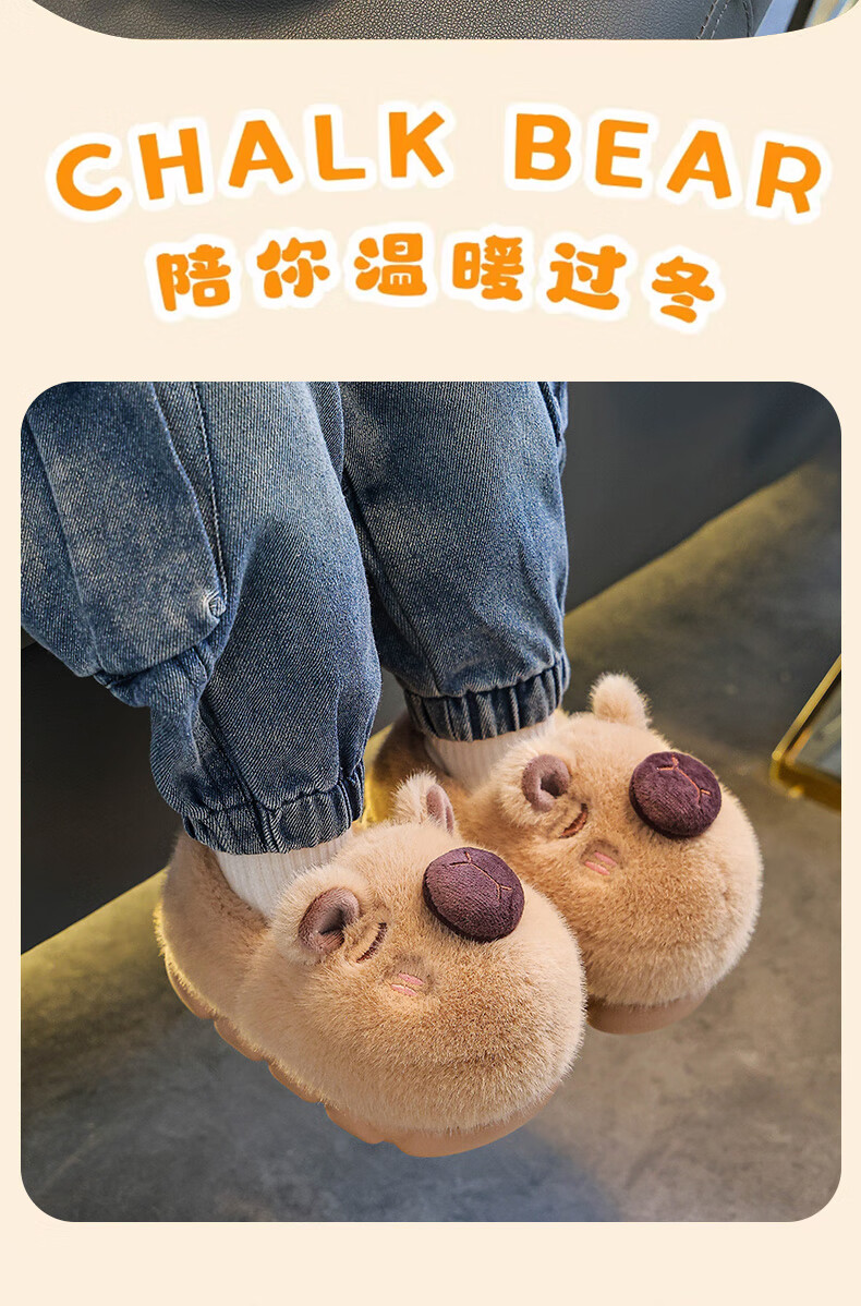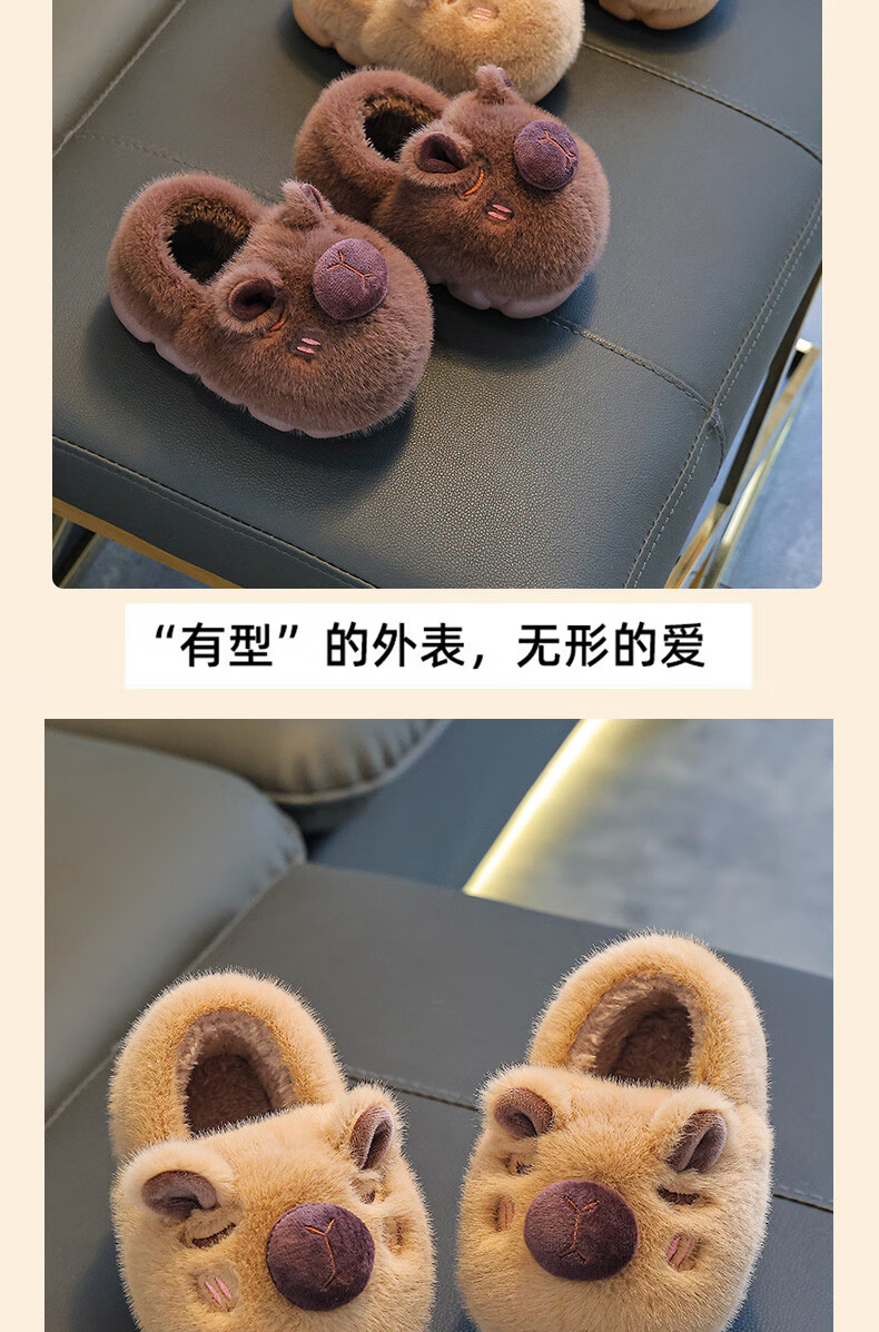 Kapibara children's cotton slippers feel like stepping on shit, boys' winter cartoon cute non-slip indoor baby slippers, dark coffee slippers 12 size 40/41 (suitable for 39/40 feet)