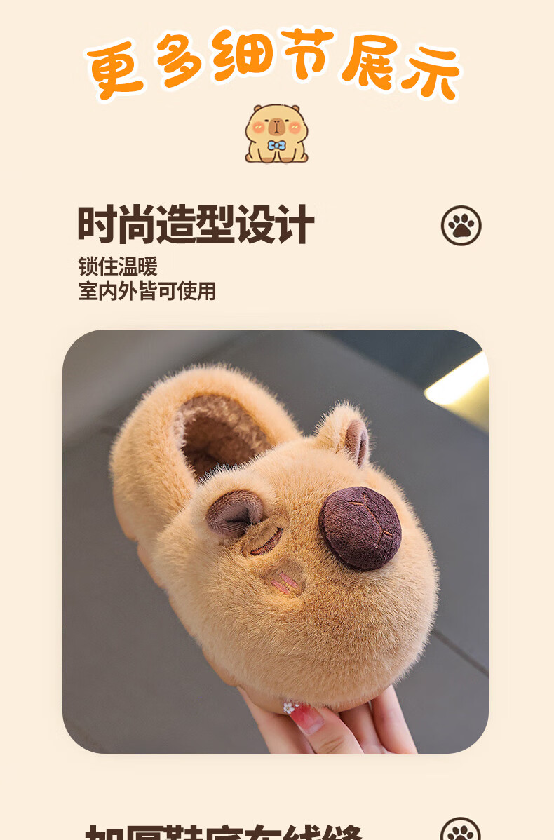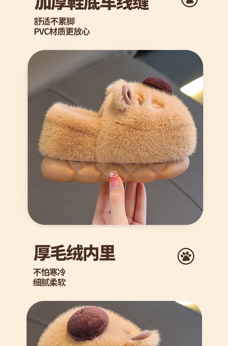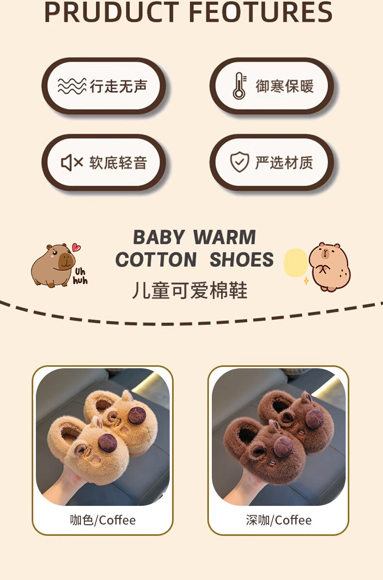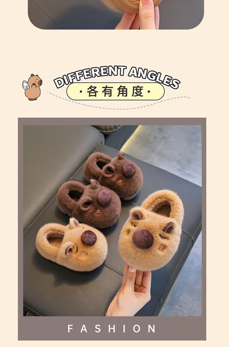 Kapibara children's cotton slippers feel like stepping on shit, boys' winter cartoon cute non-slip indoor baby slippers, dark coffee slippers 12 size 40/41 (suitable for 39/40 feet)