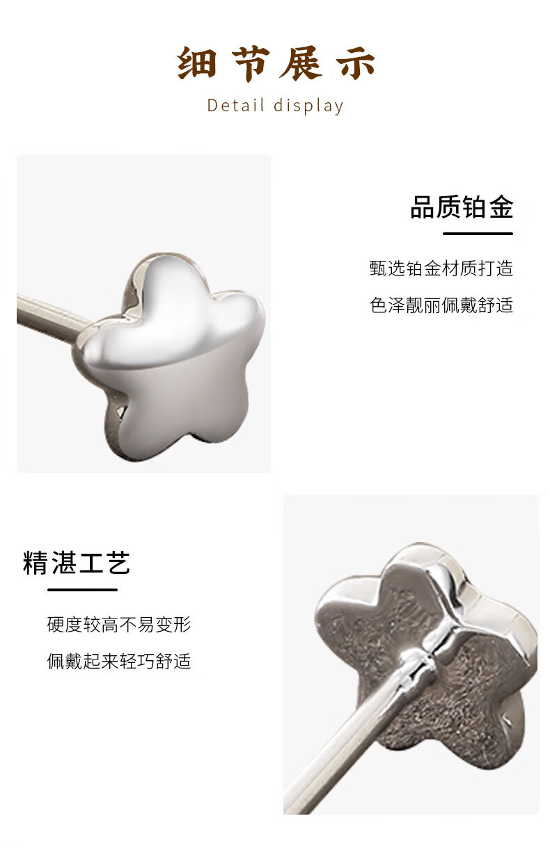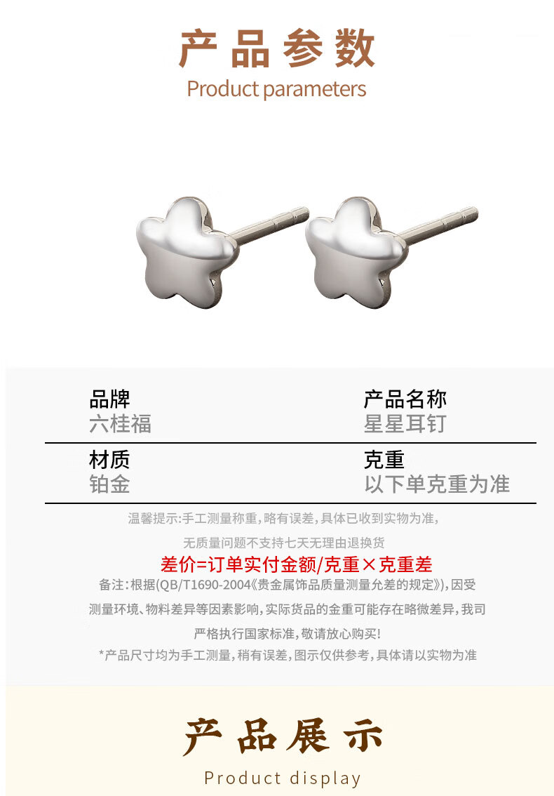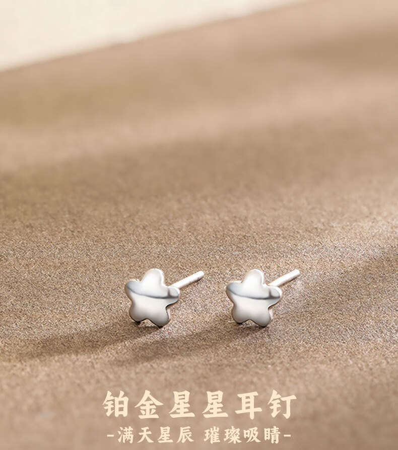 LIU GUI FU JEWELRY Platinum Star Earrings for Women 1g Gold Earrings for Ear Holes Simple and Versatile Anniversary Birthday Gift for Girlfriend and Wife 1.18g Platinum Star Earrings