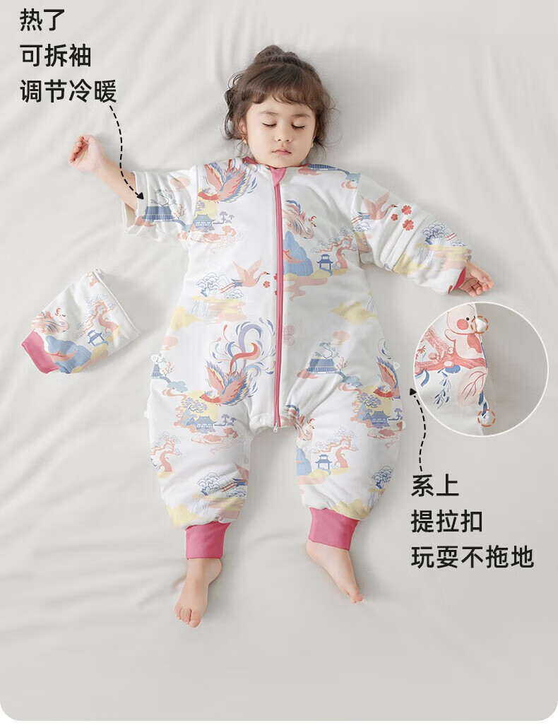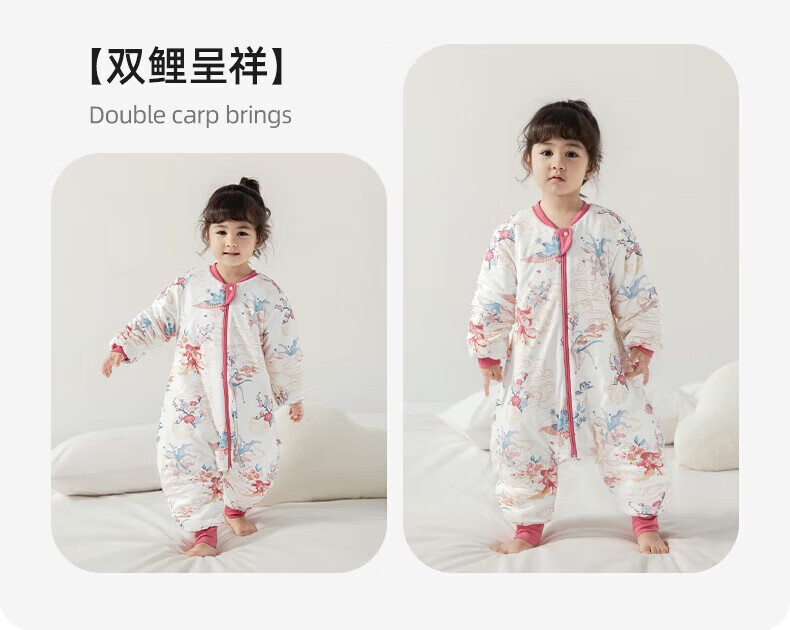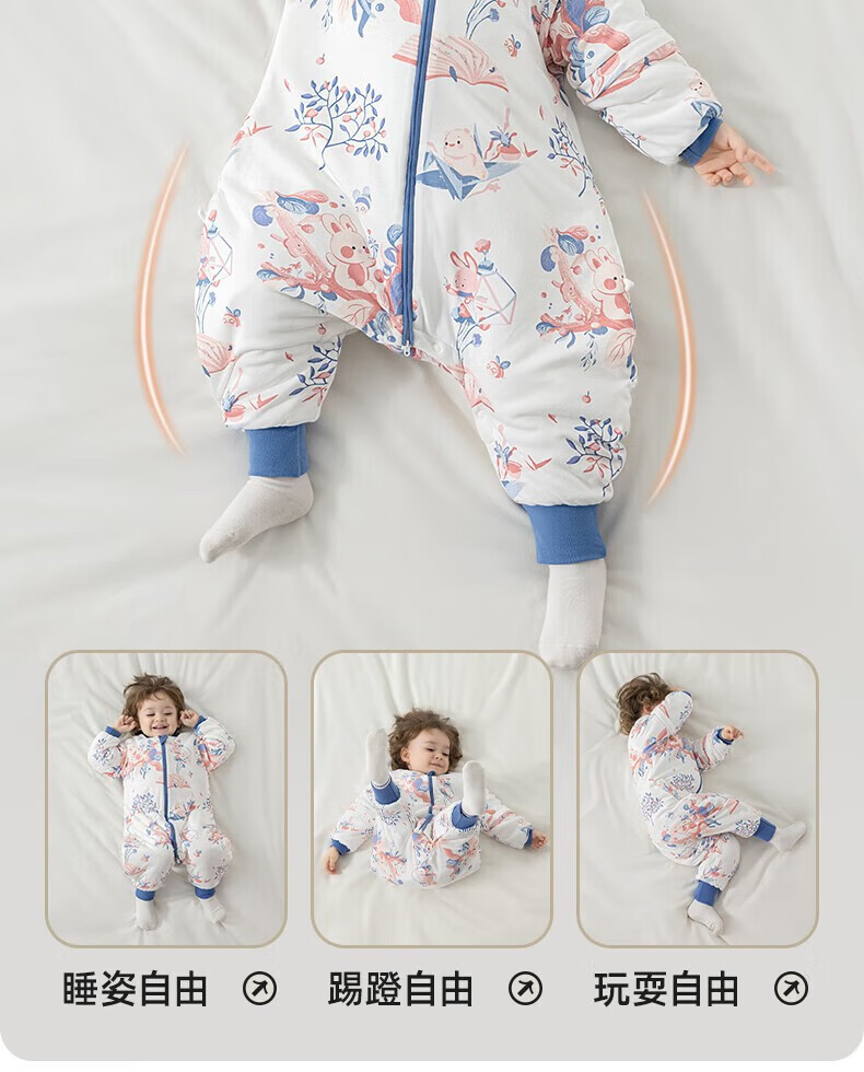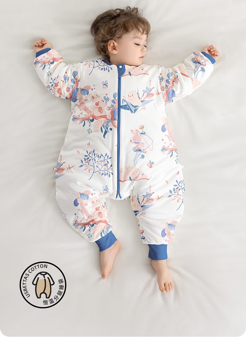 Betis Baby Sleeping Bag Spring, Autumn and Winter Newborn Anti-Kicking and Splitting Temperature Standard Children's Large Size Anti-jump Spring and Autumn Double Layer - Temperature Sensing (20-26) Futu M Size 80-95cm (recommended for 1.5-2.5 years old)