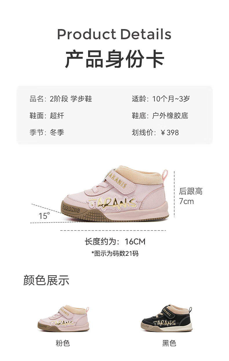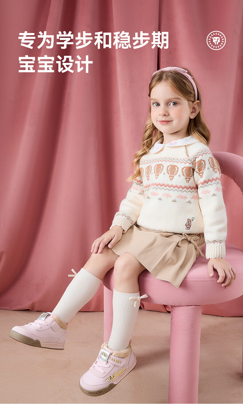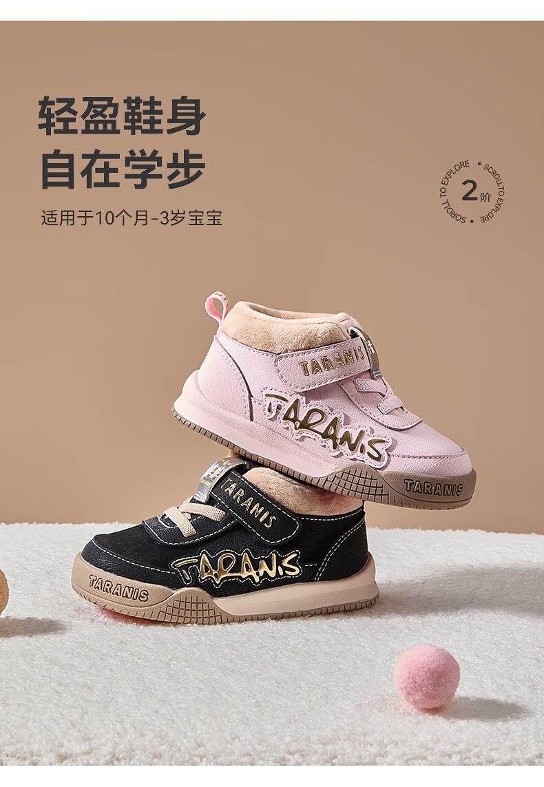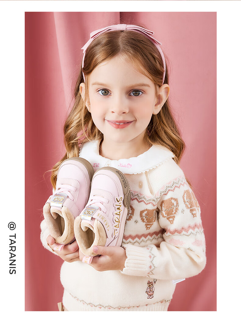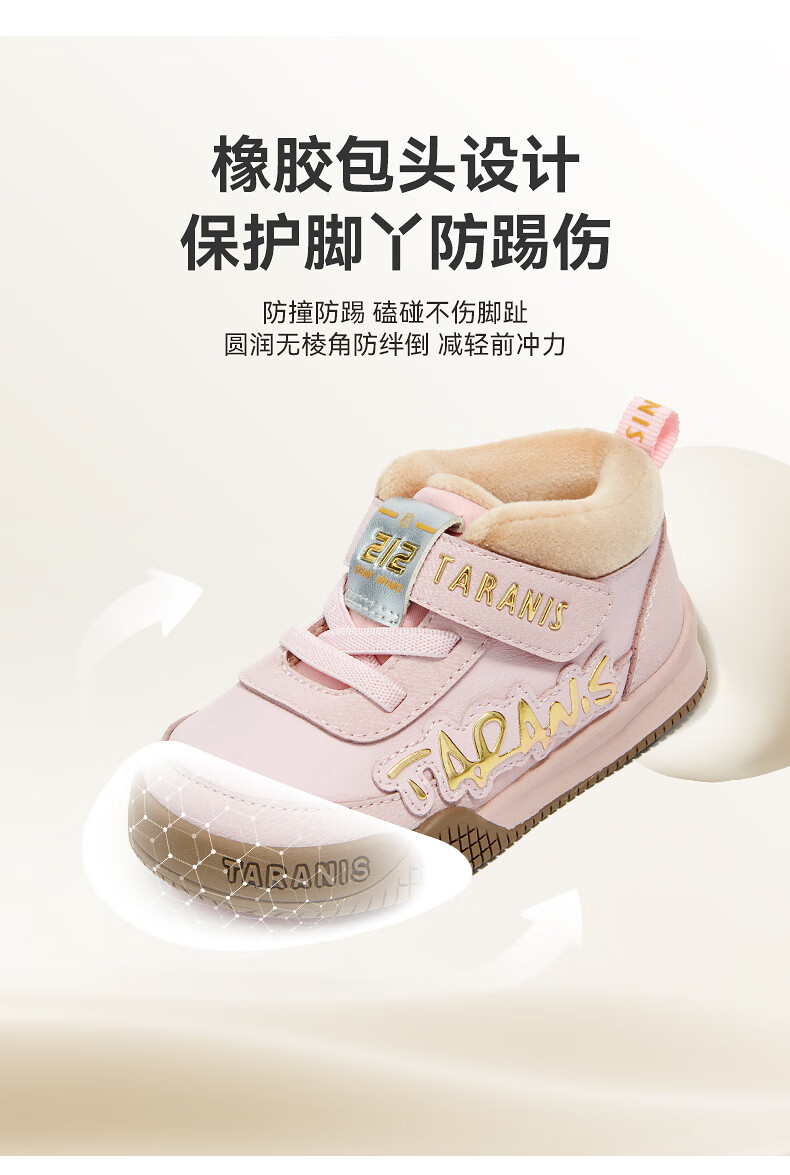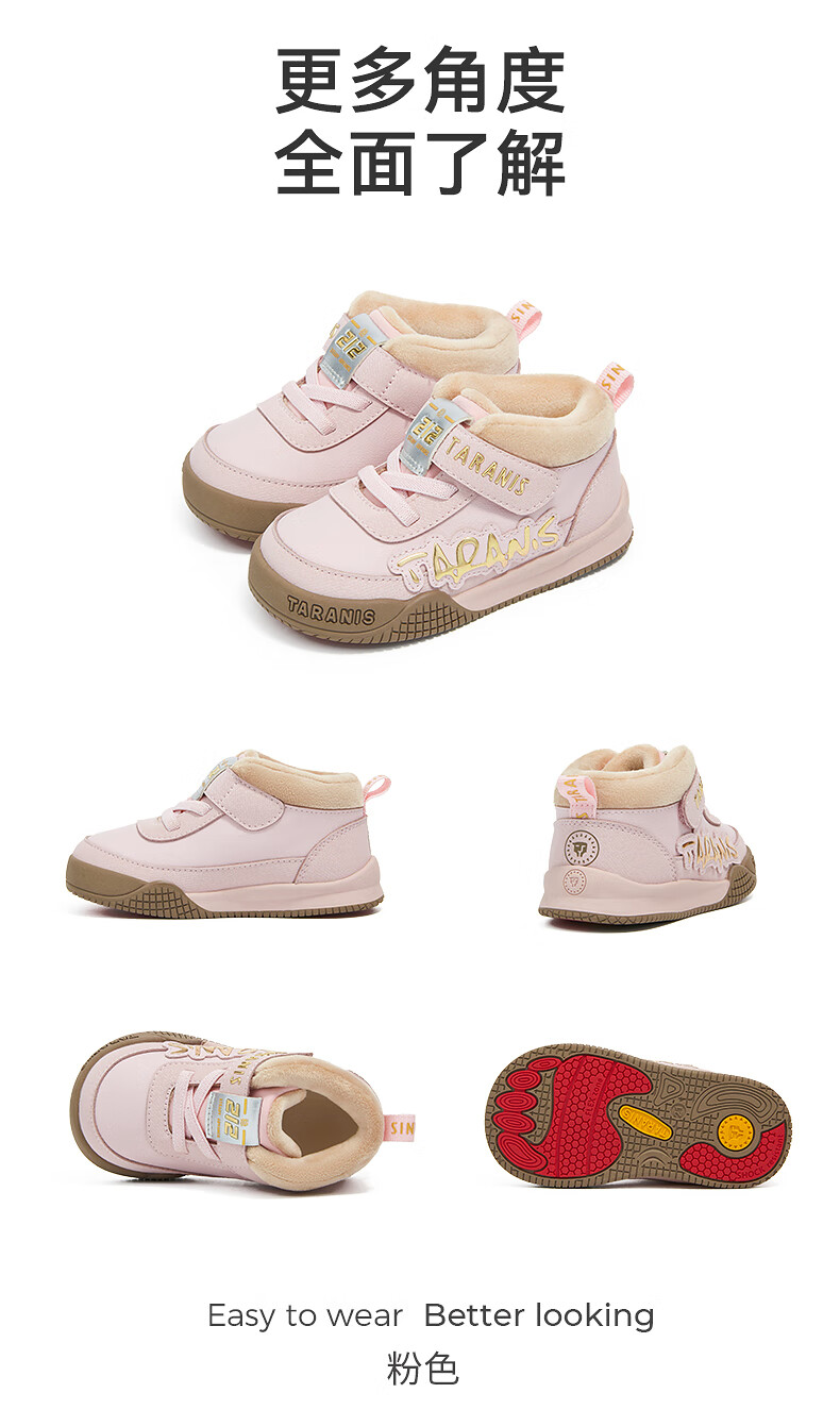Terranis toddler shoes for boys and girls in winter, new children's shoes, non-slip functional shoes, velvet warm bread shoes, pink 24, inner length 15.5, suitable for feet 13.8~14.2