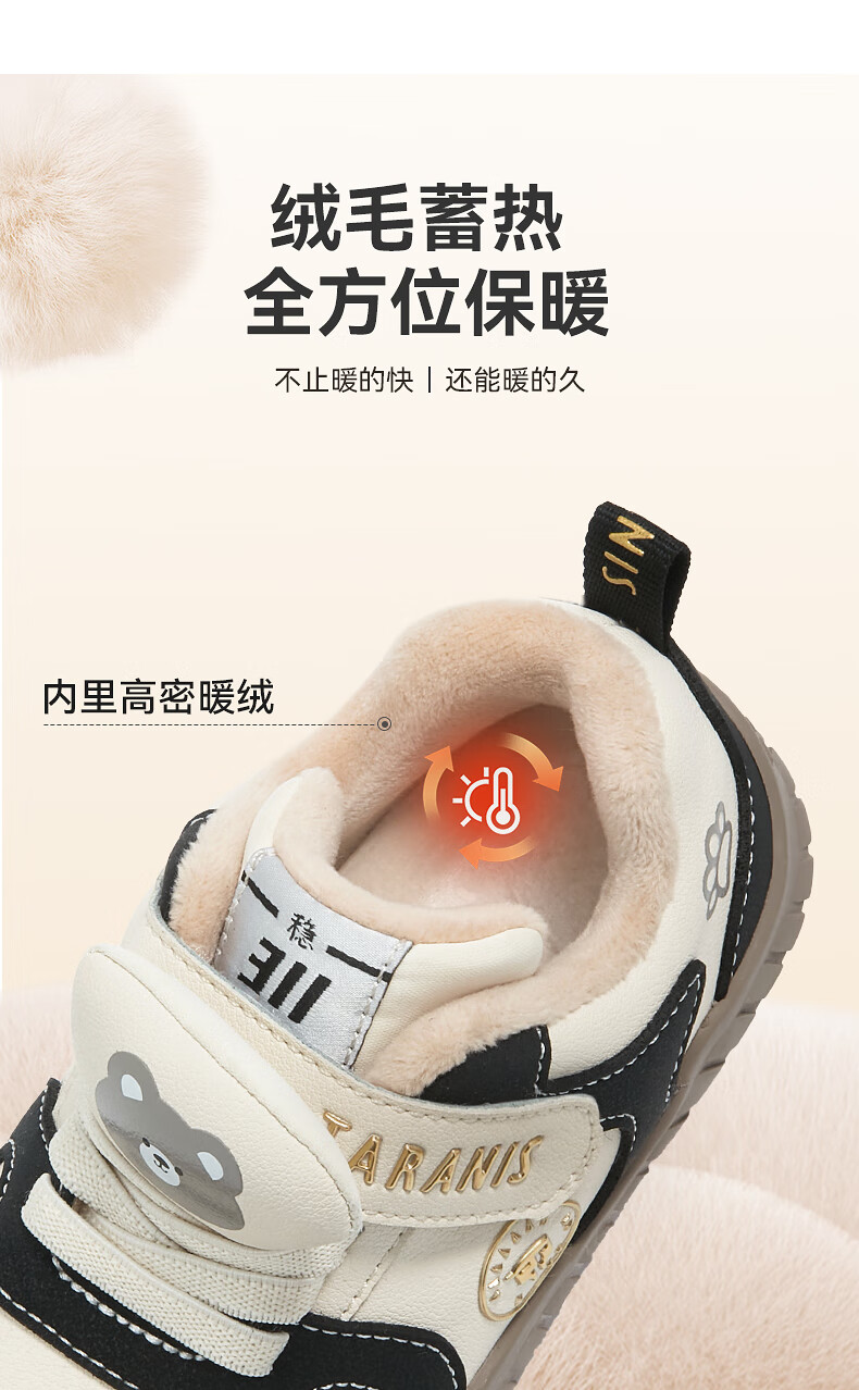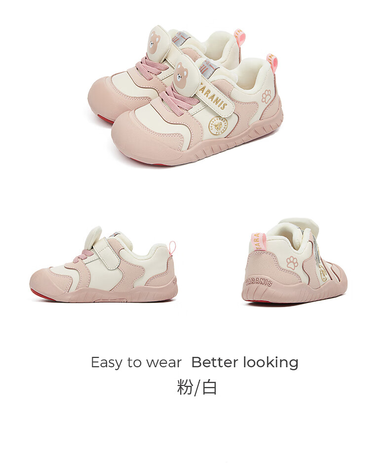 Tyranis winter new 311 kindergarten indoor shoes girls soft sole plus velvet warm casual shoes boys anti-skid shoes pink/white 29 inner length 19.0cm suitable for feet 17.5cm long