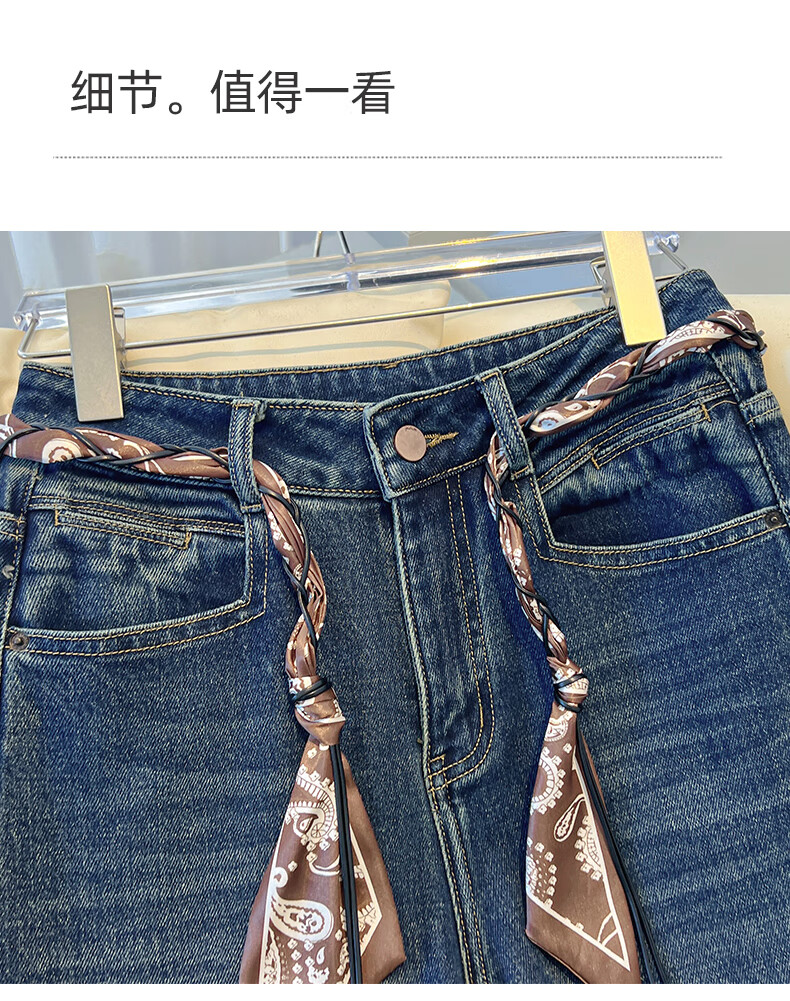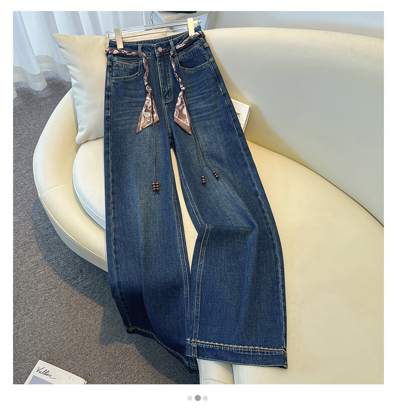 Denim blue wide leg jeans for women autumn and winter 2025 new style this year's popular narrow straight velvet trousers for women Denim blue - trousers velvet with free belt XL 29/recommended 116-125Jin Jin is equal to 0.5 kg
